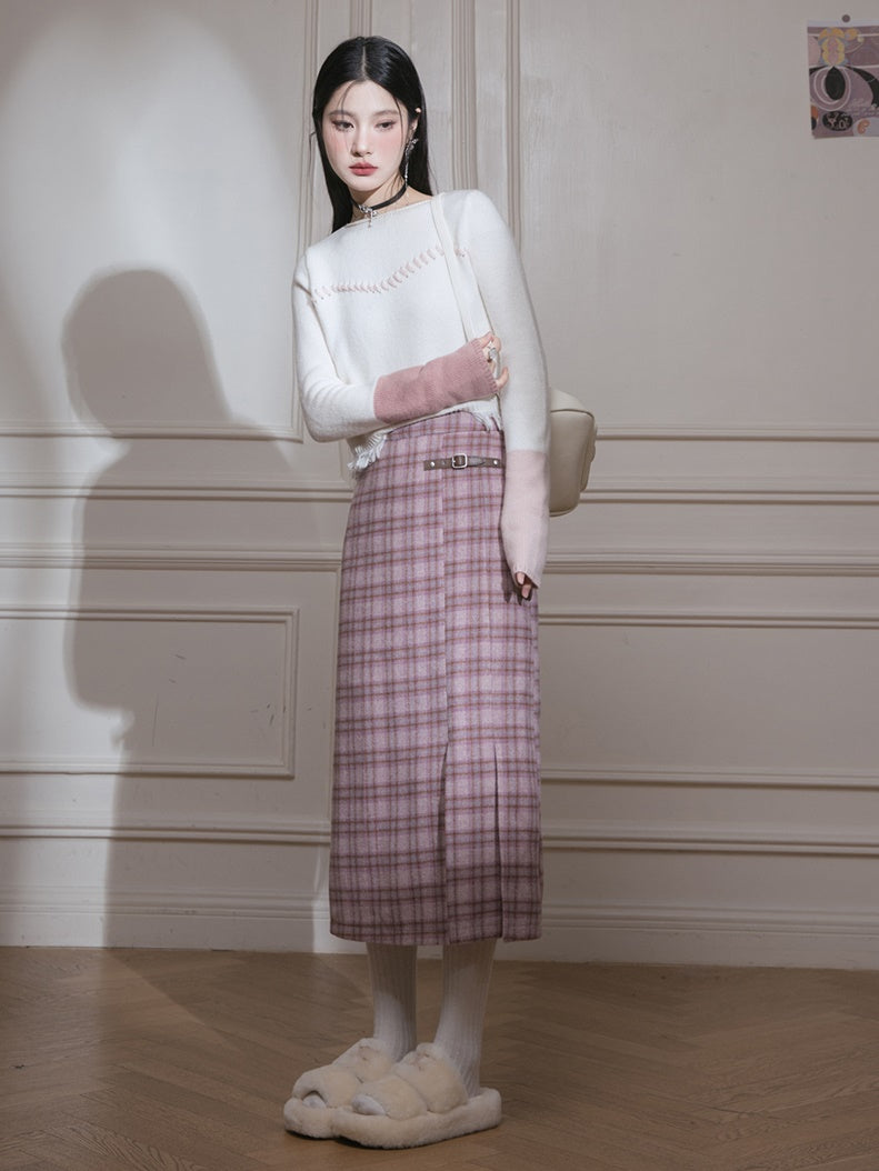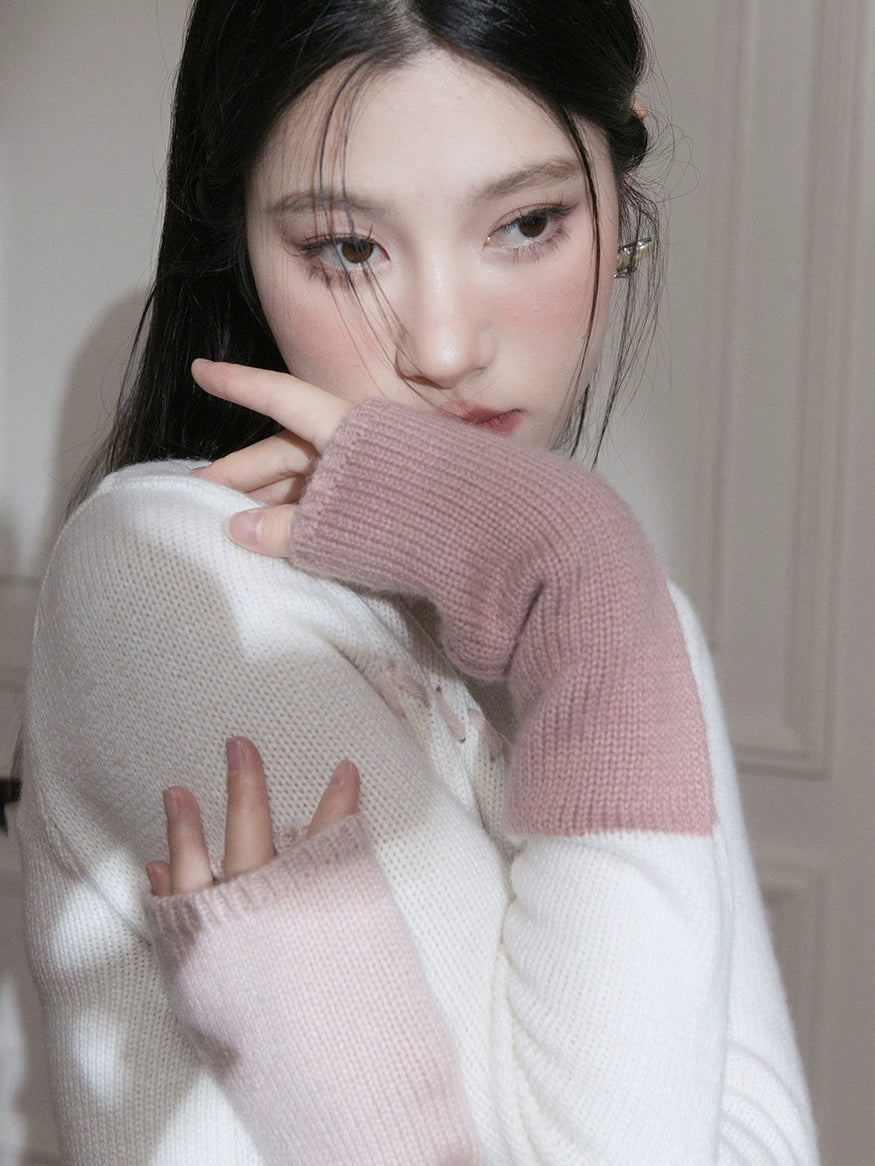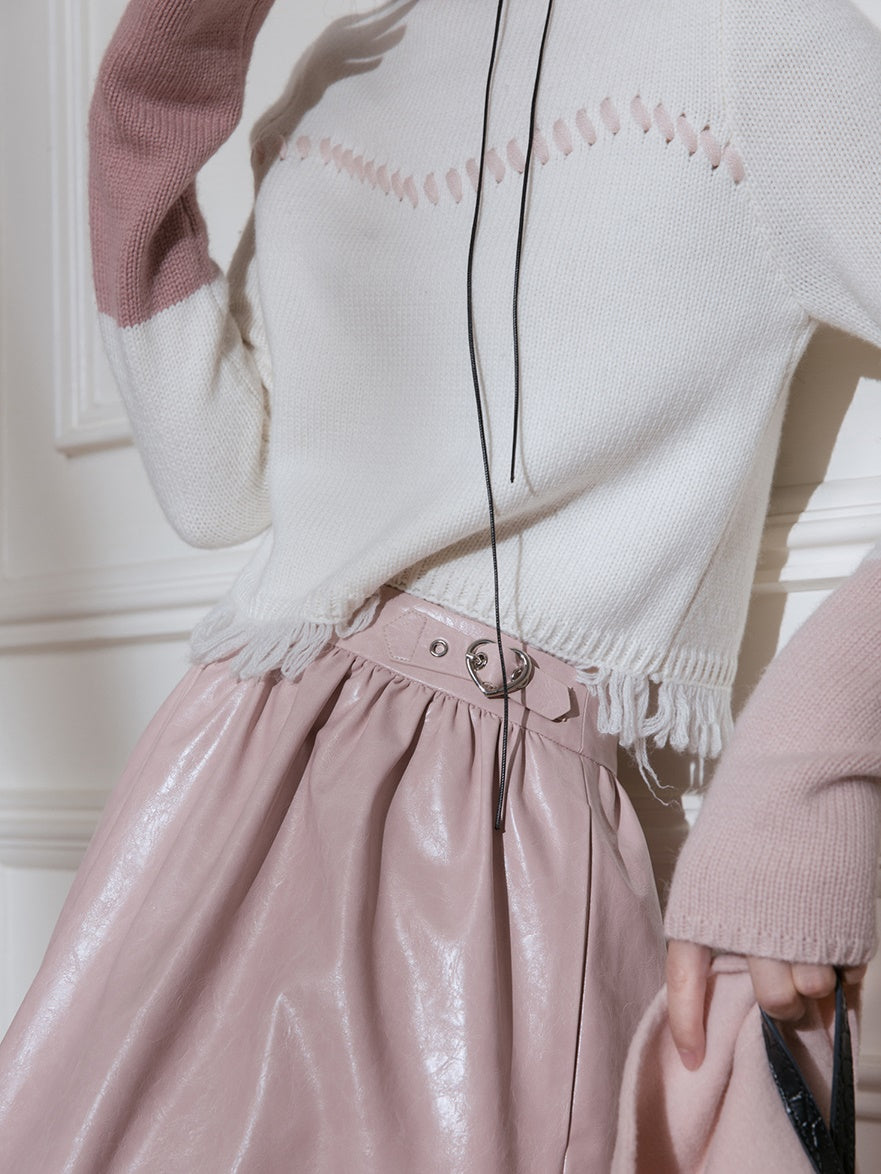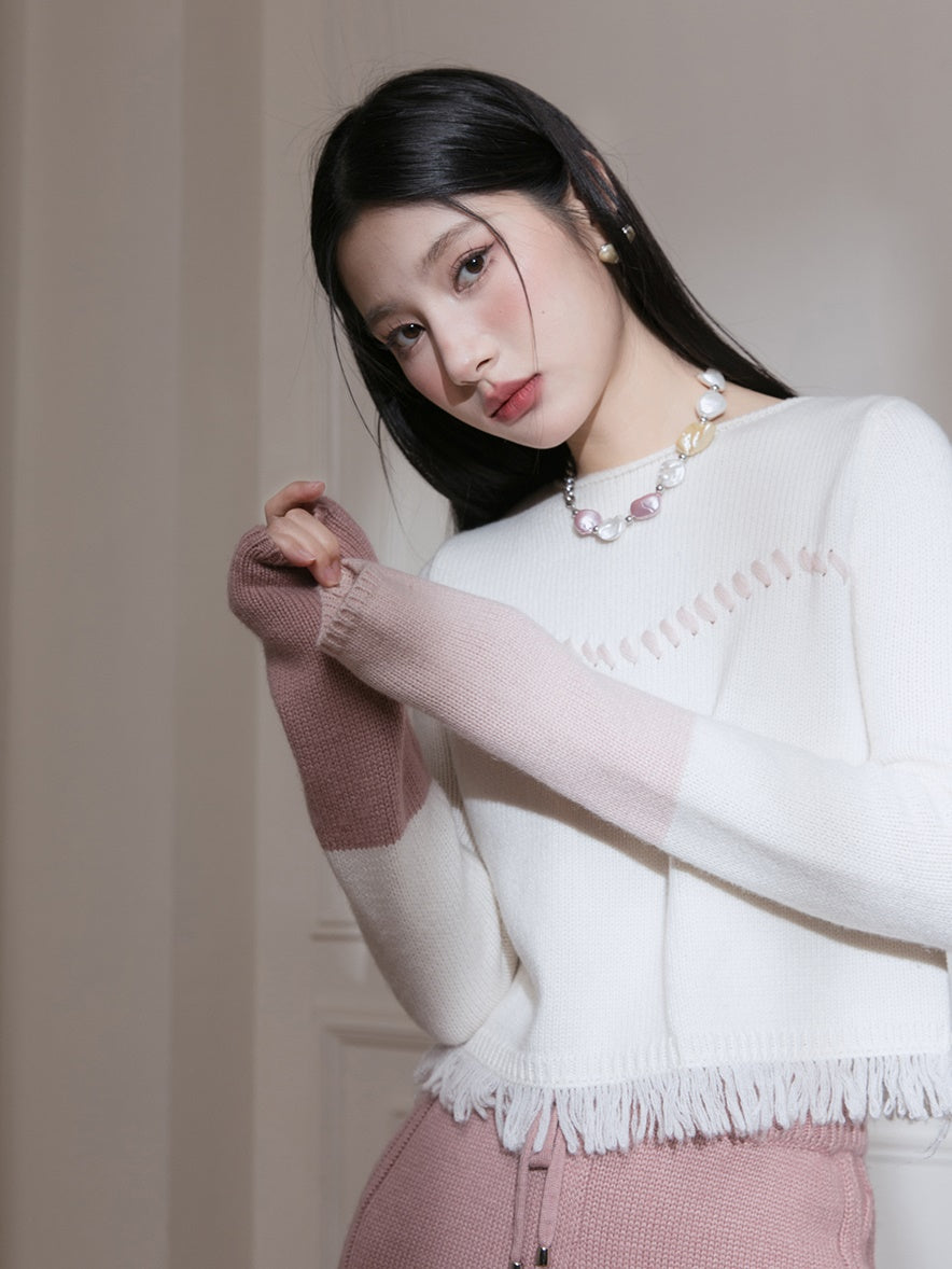 Zweifarbiger Blush Hook Quaste-Strick-Top