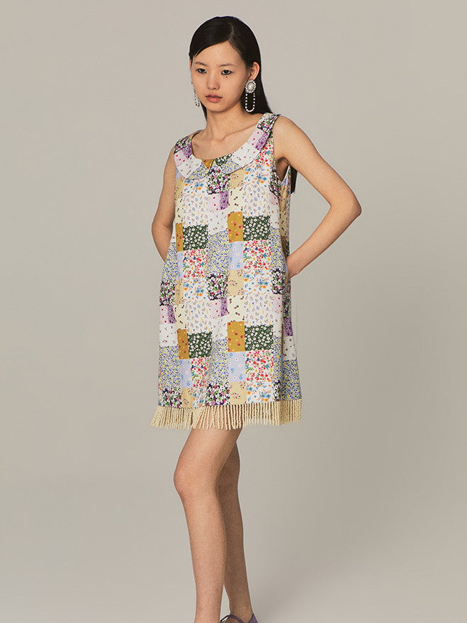 Patchwork Gaudy No-Sleeve Tassel Flower Colorful One-Piece