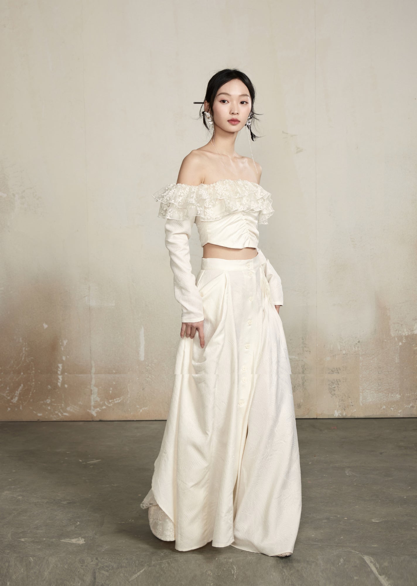 Blume Spitze edelische Asymmetrie Maxi süßer eleganter Langstachel