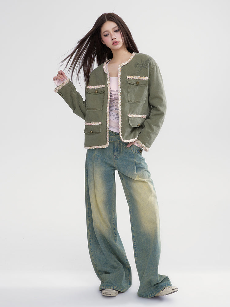Casual Boa No-Collar Retro Oversize Jacke