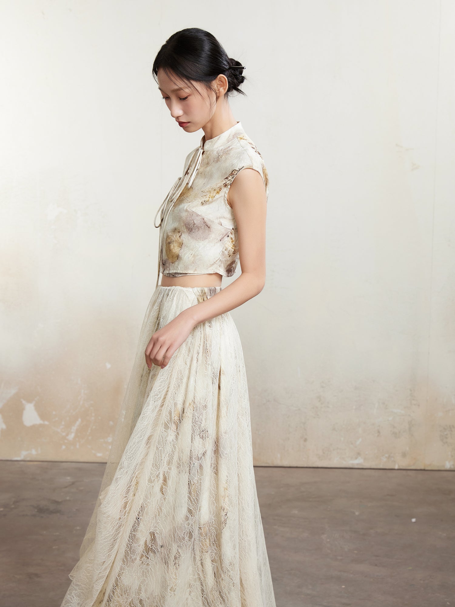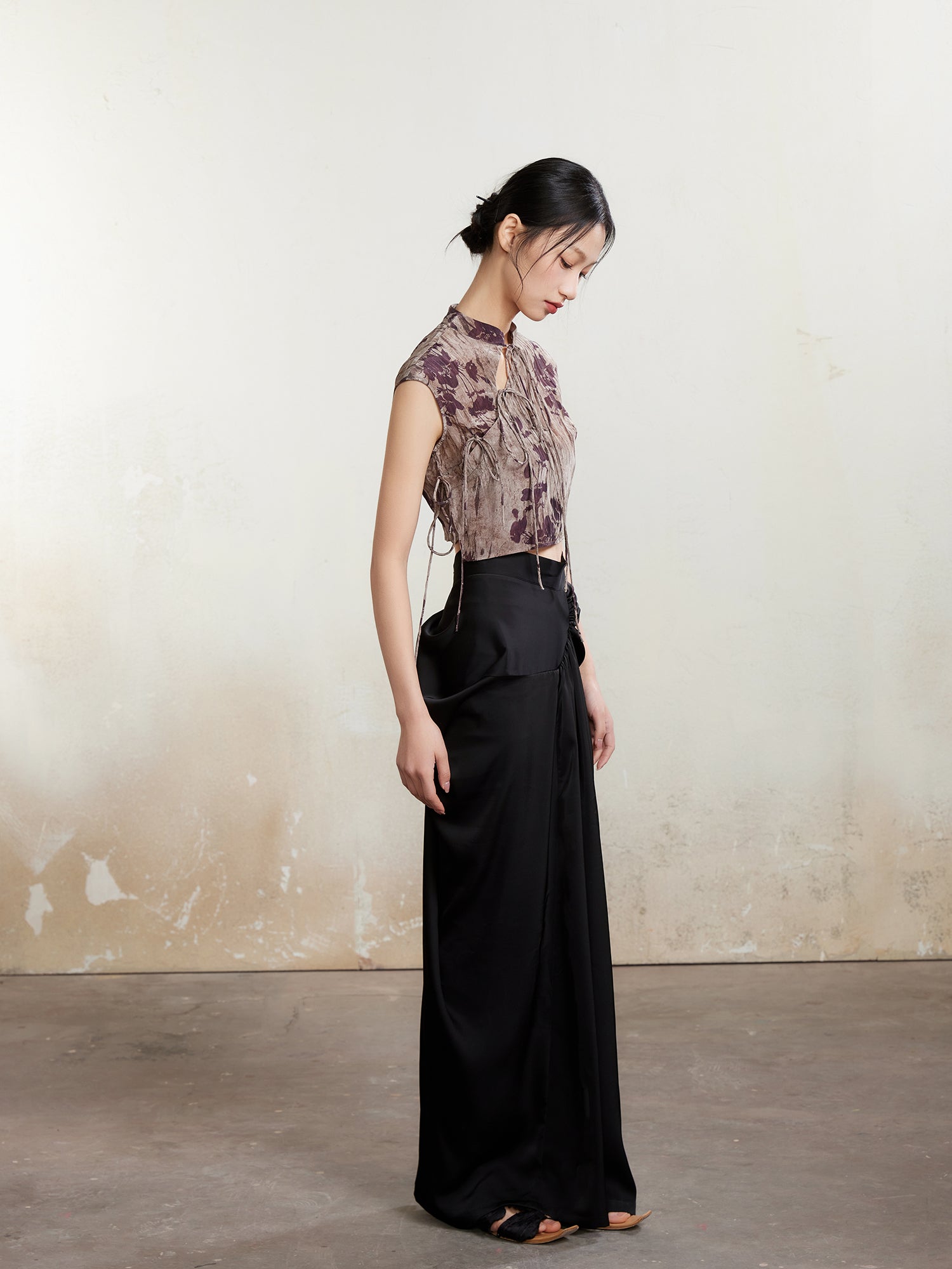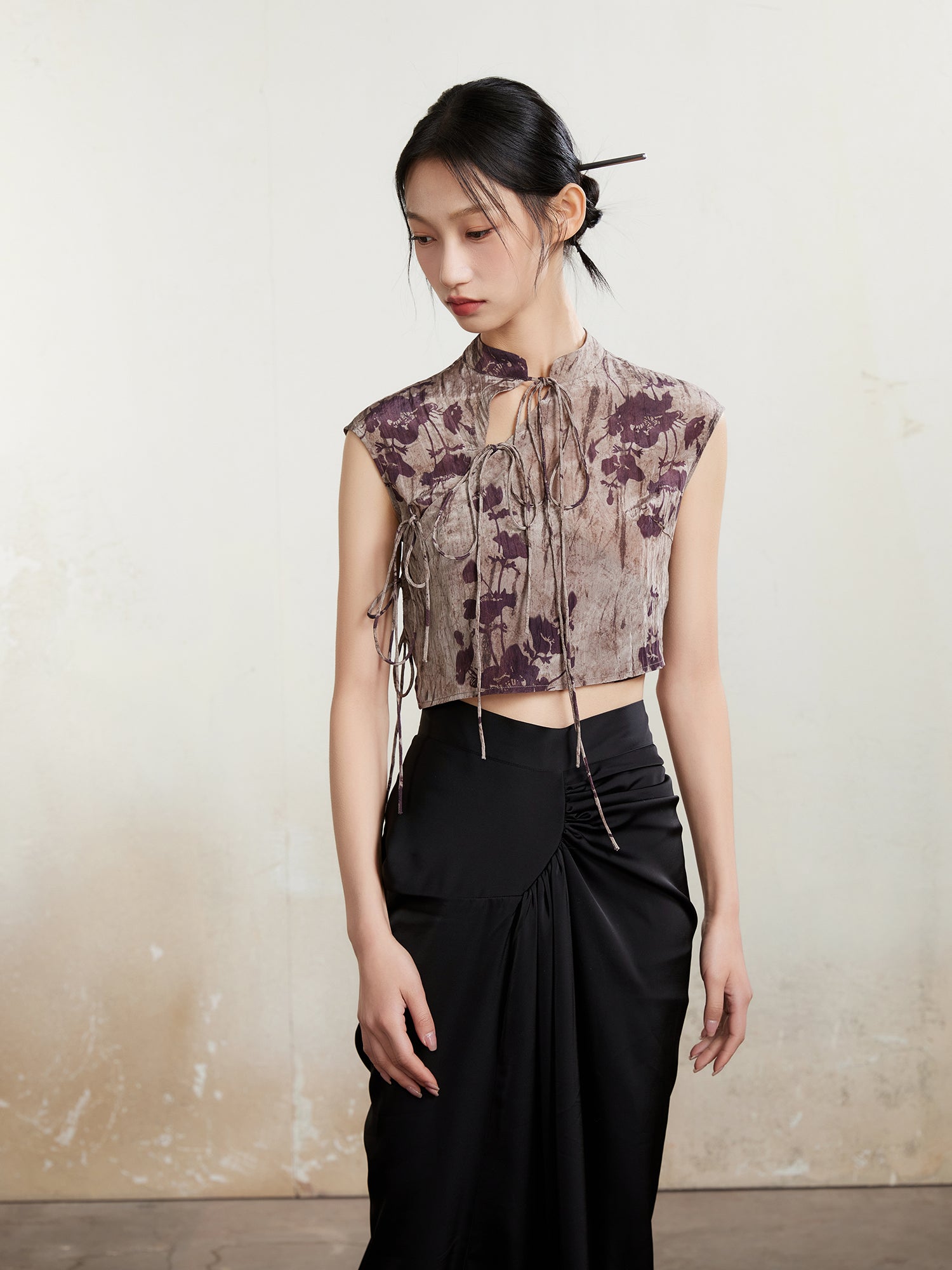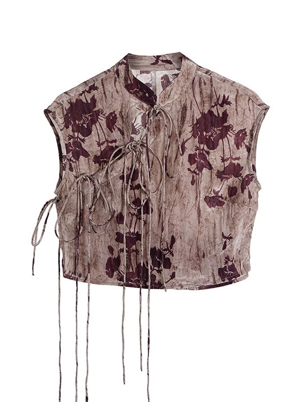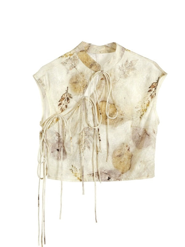 Chinesische gedruckte Ärmeltätigkeit Schnüre-up Short Top