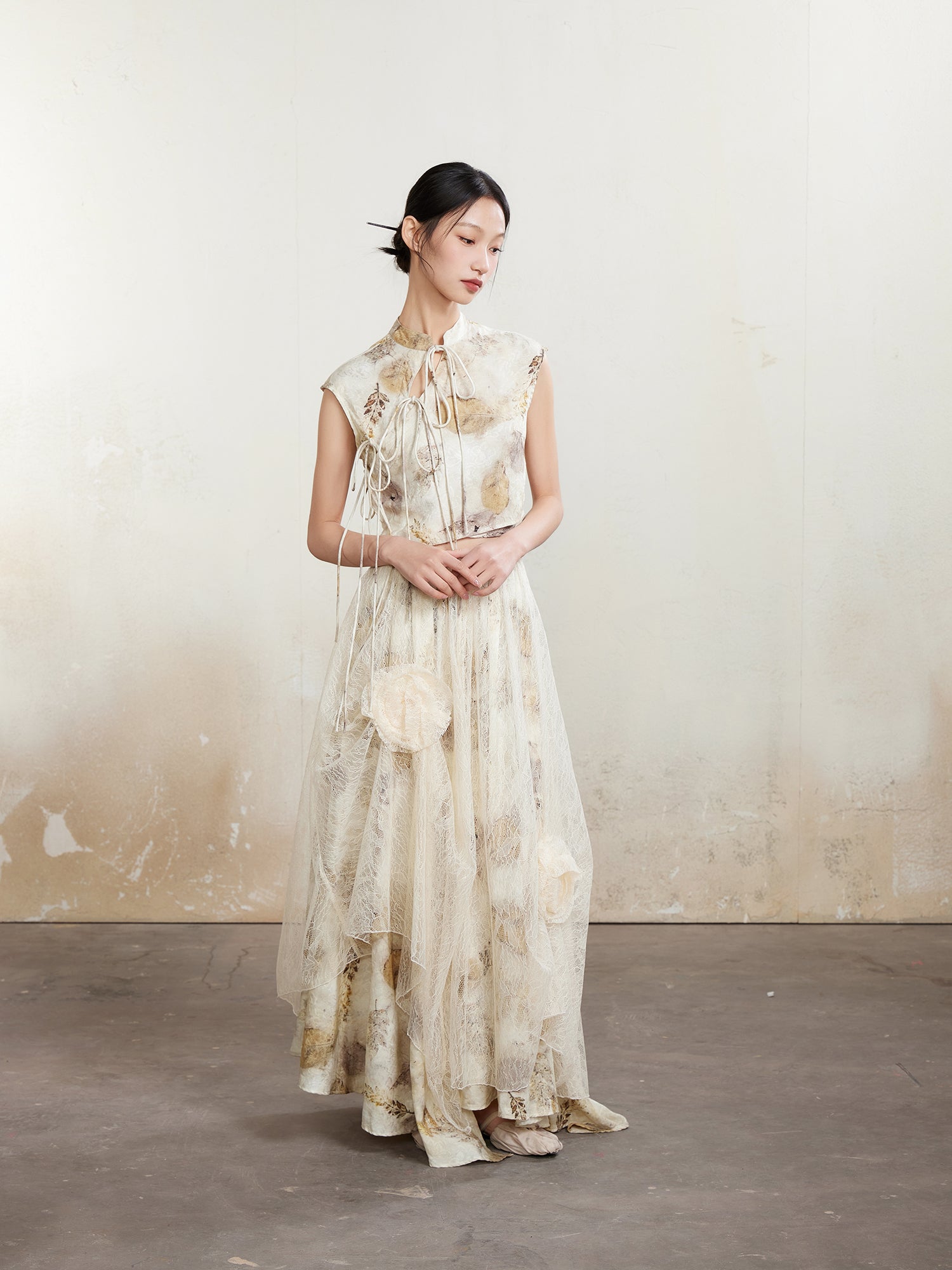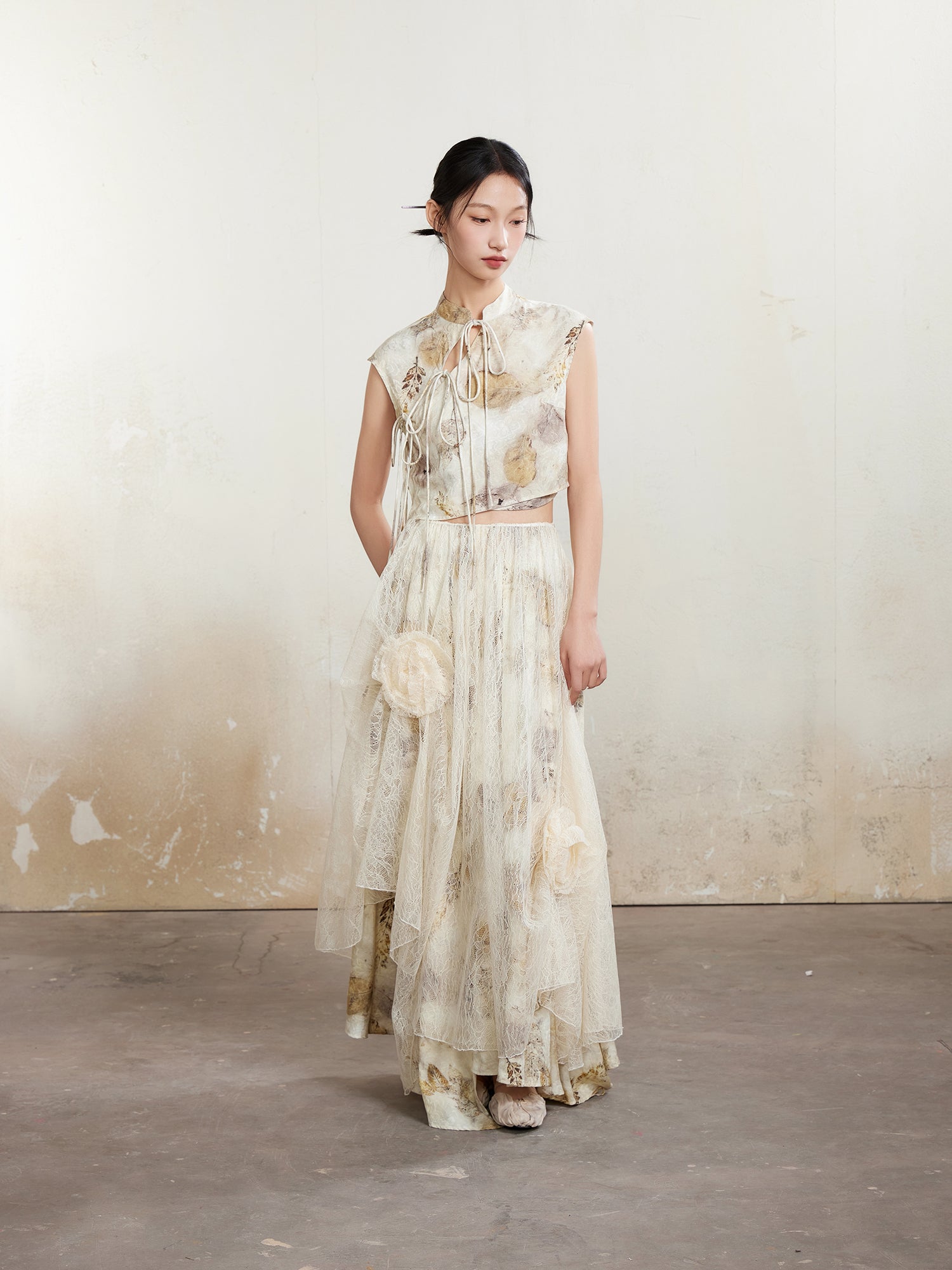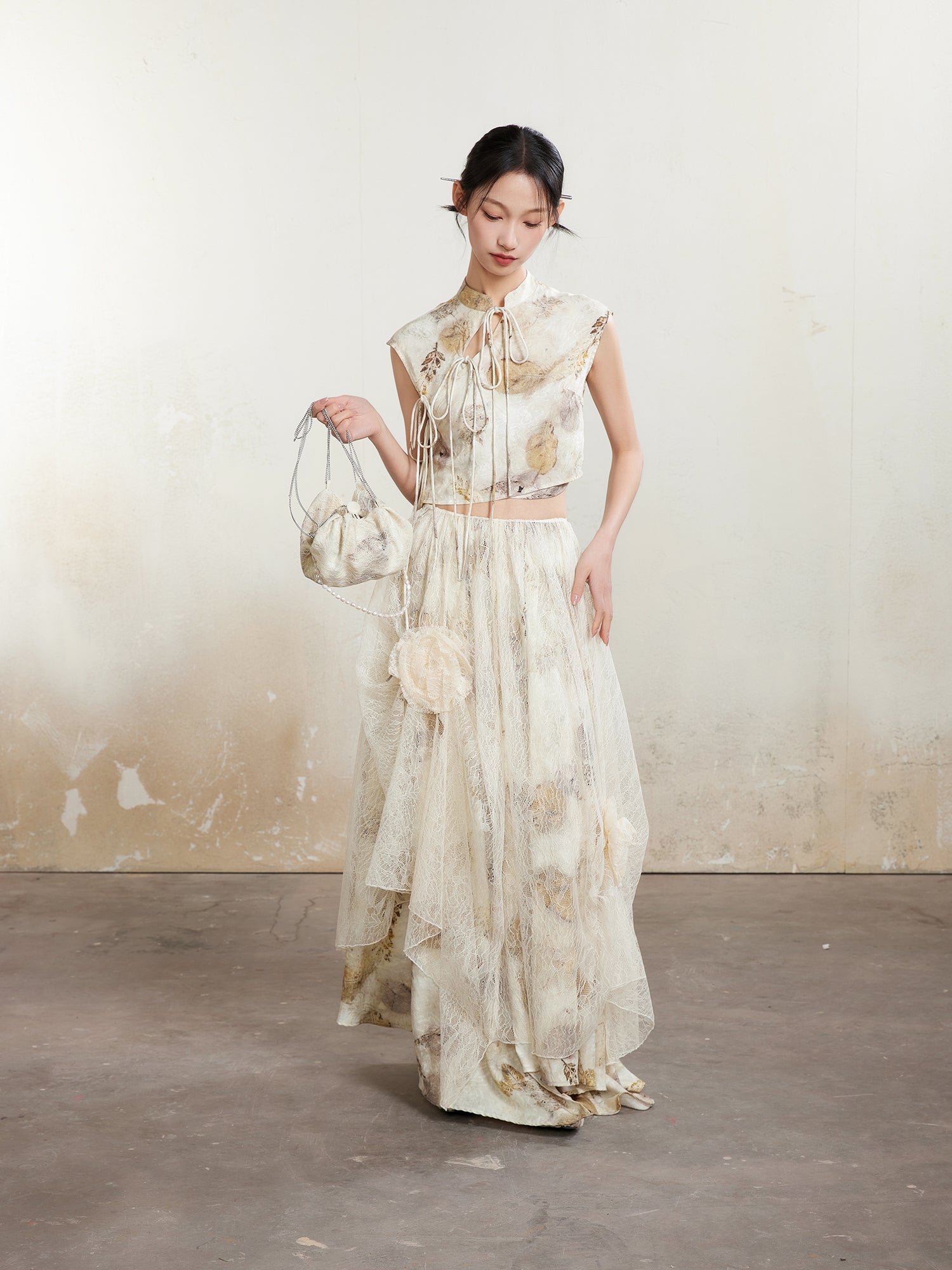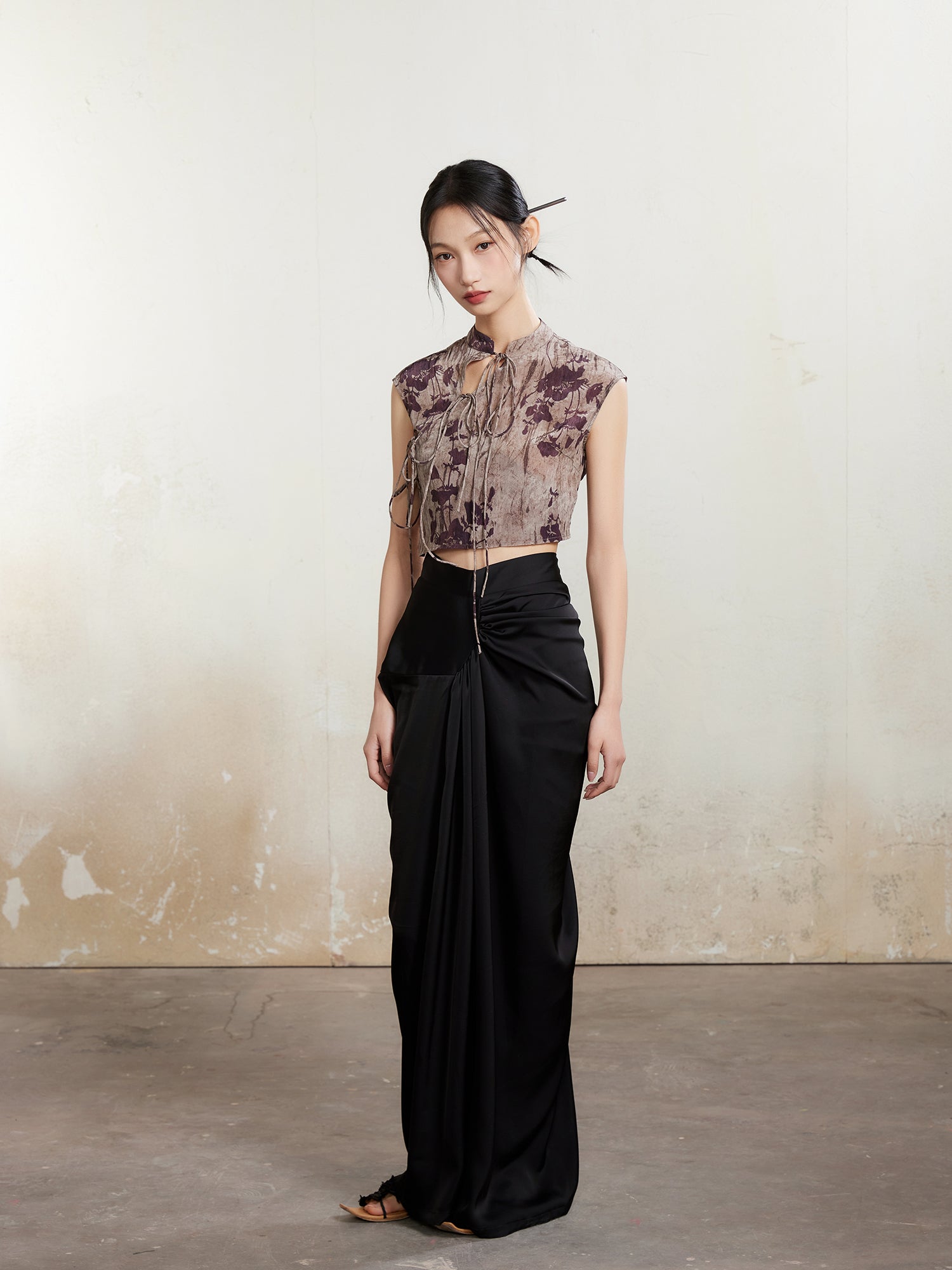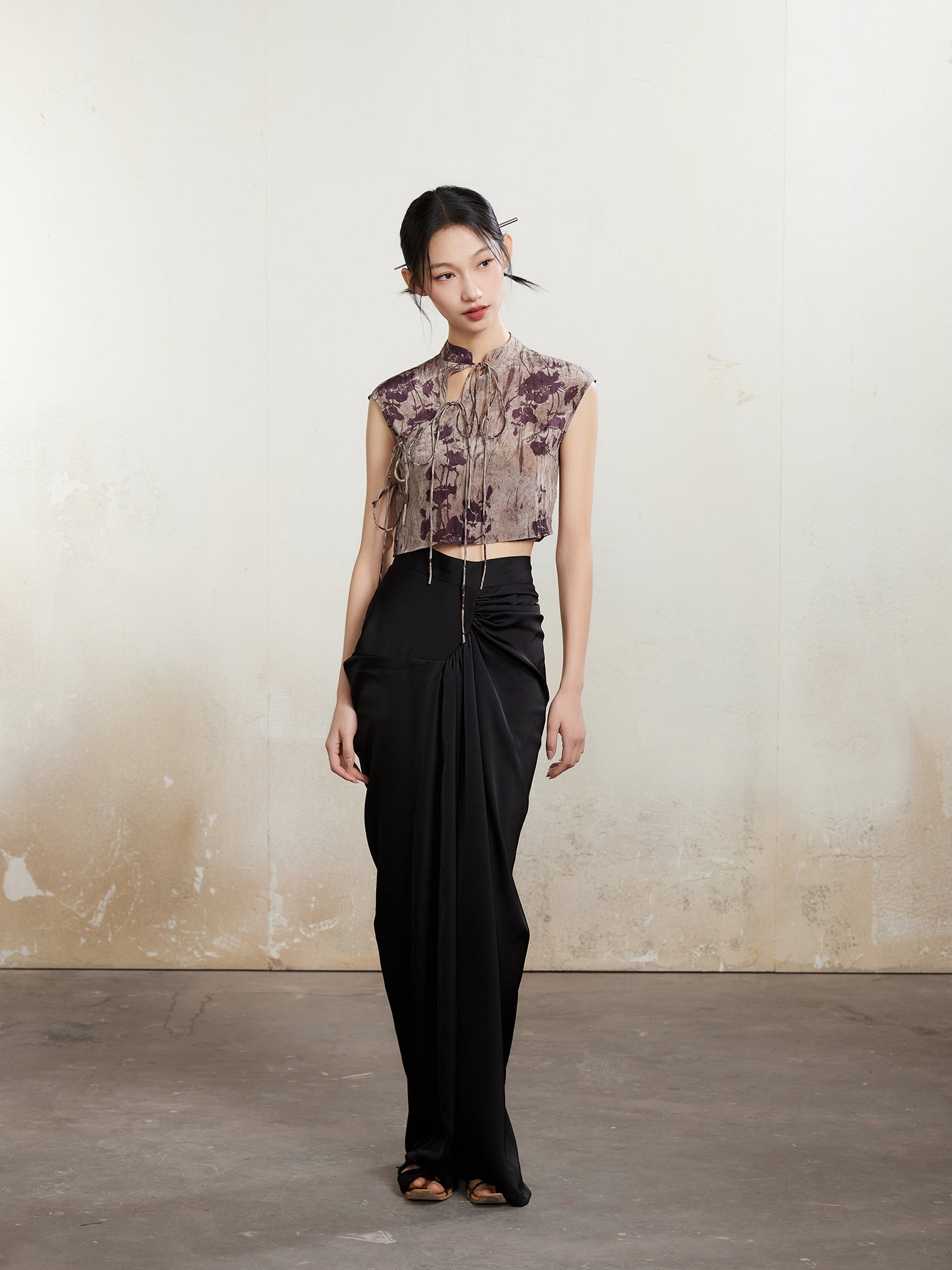 Chinesische gedruckte Ärmeltätigkeit Schnüre-up Short Top