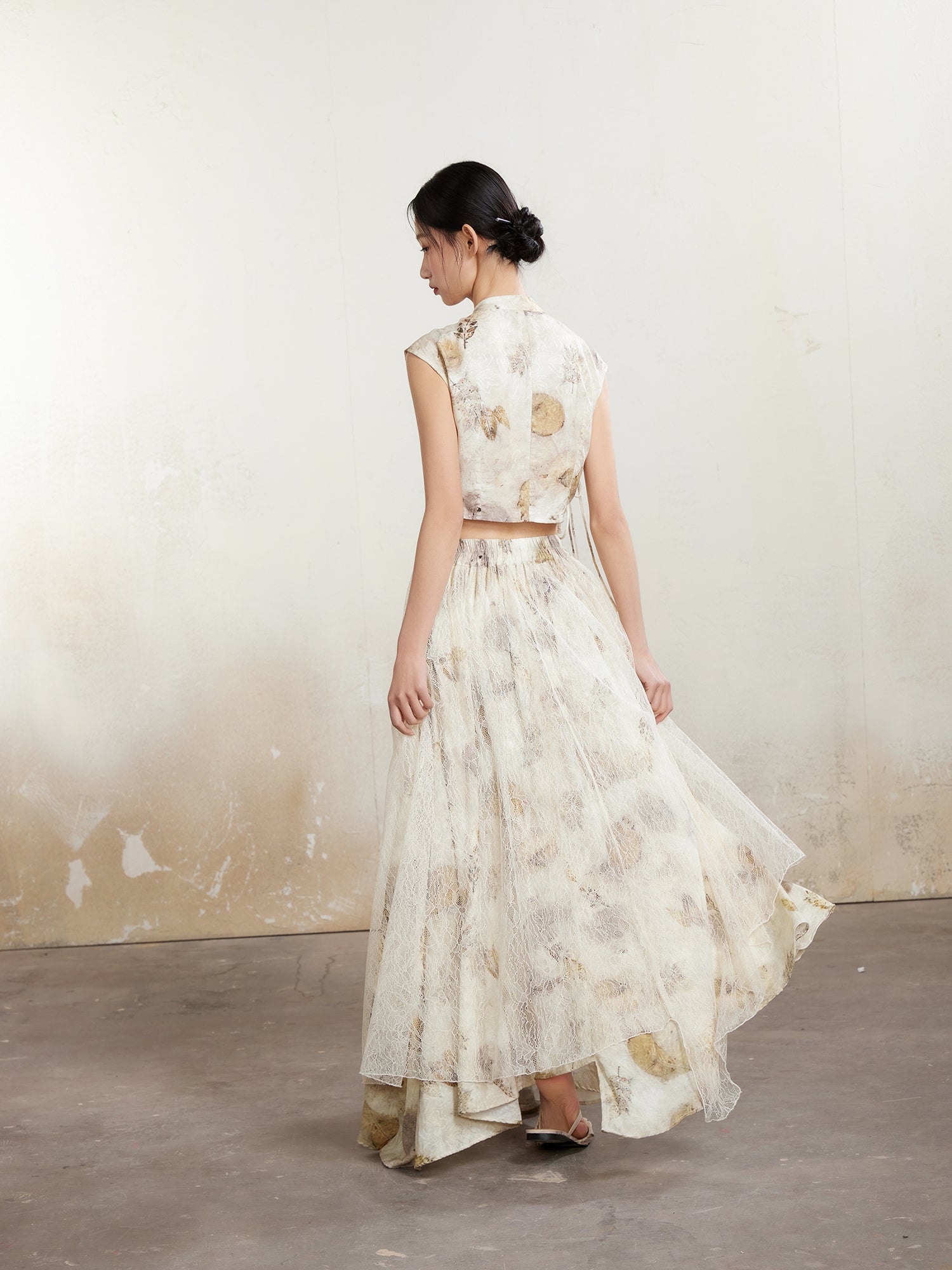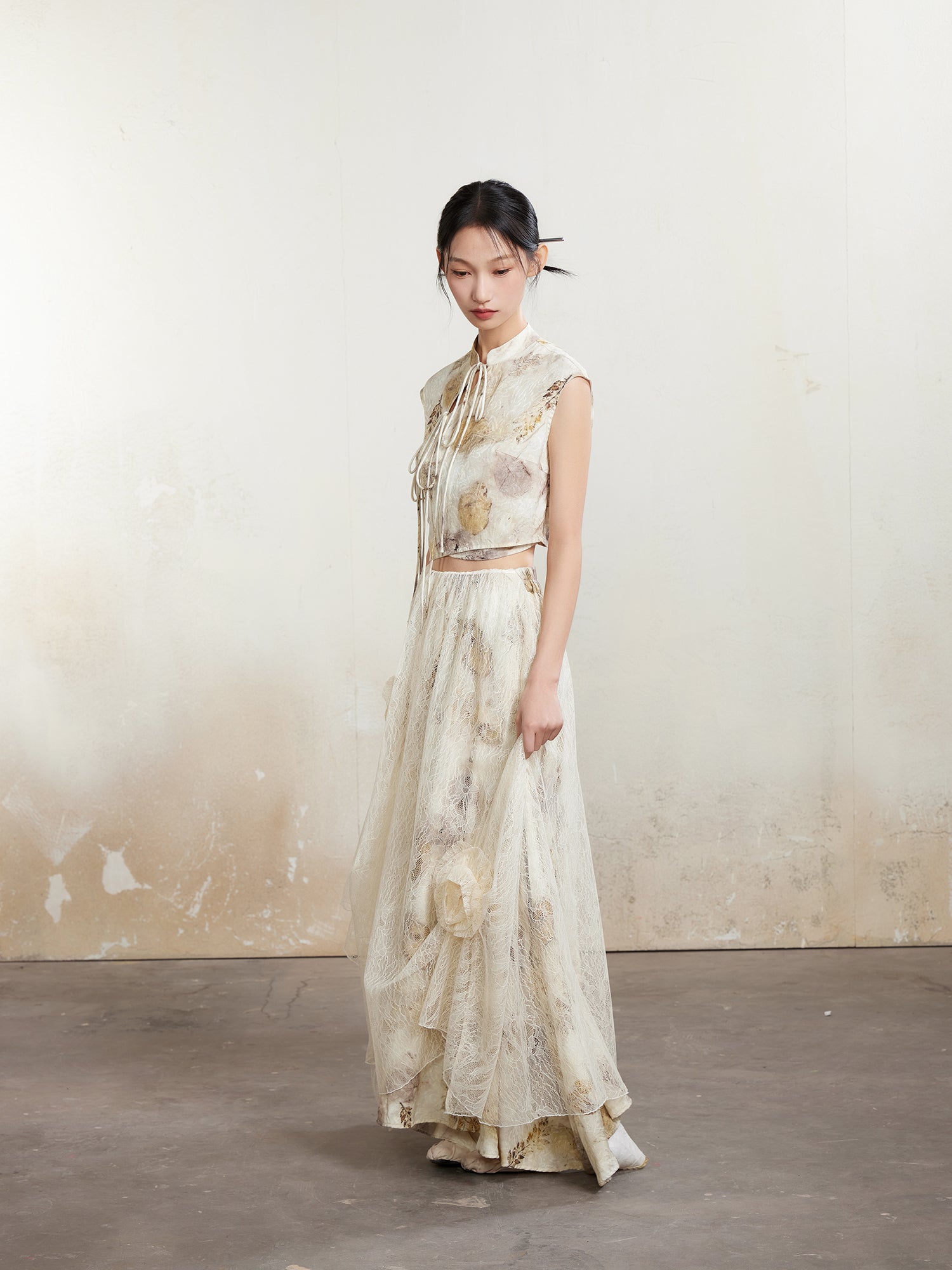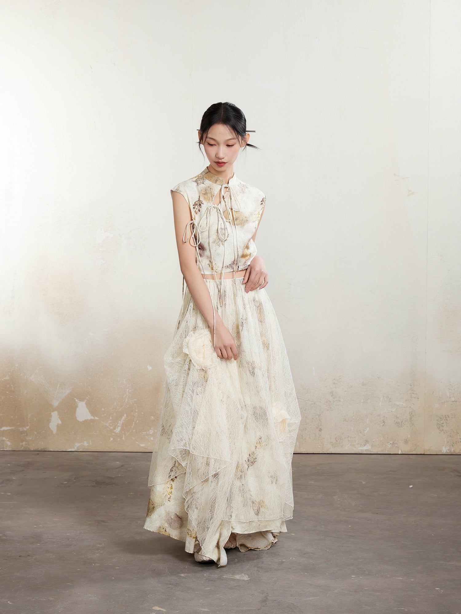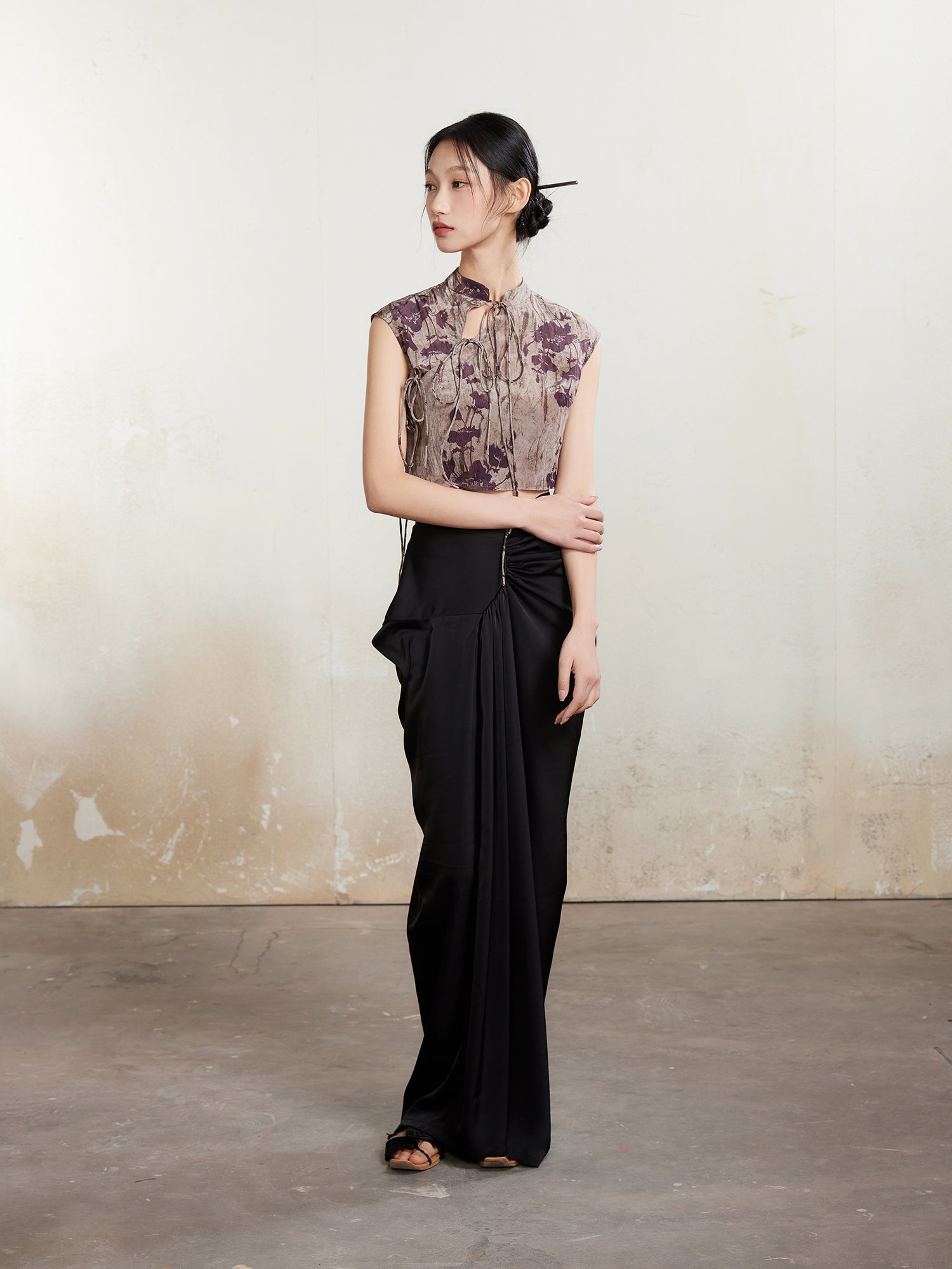 Chinesische gedruckte Ärmeltätigkeit Schnüre-up Short Top