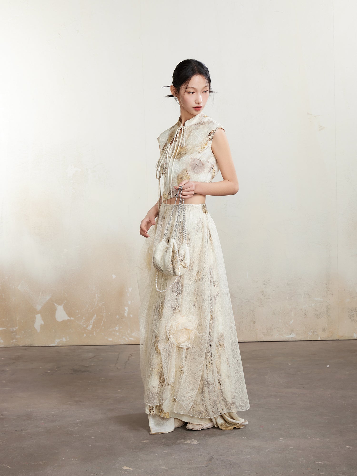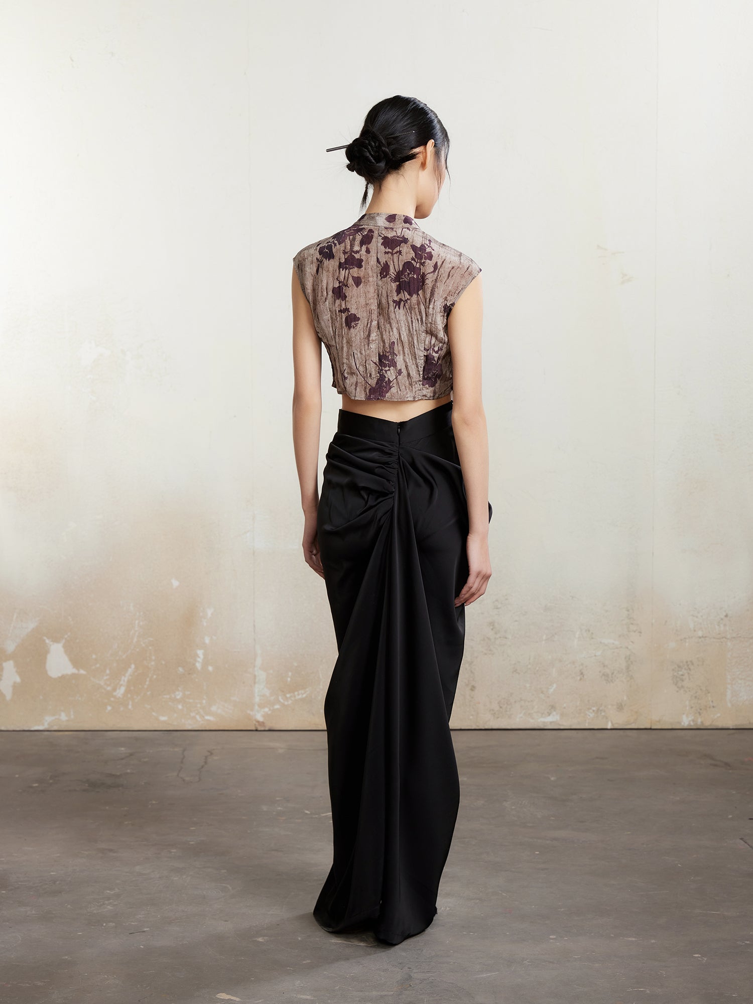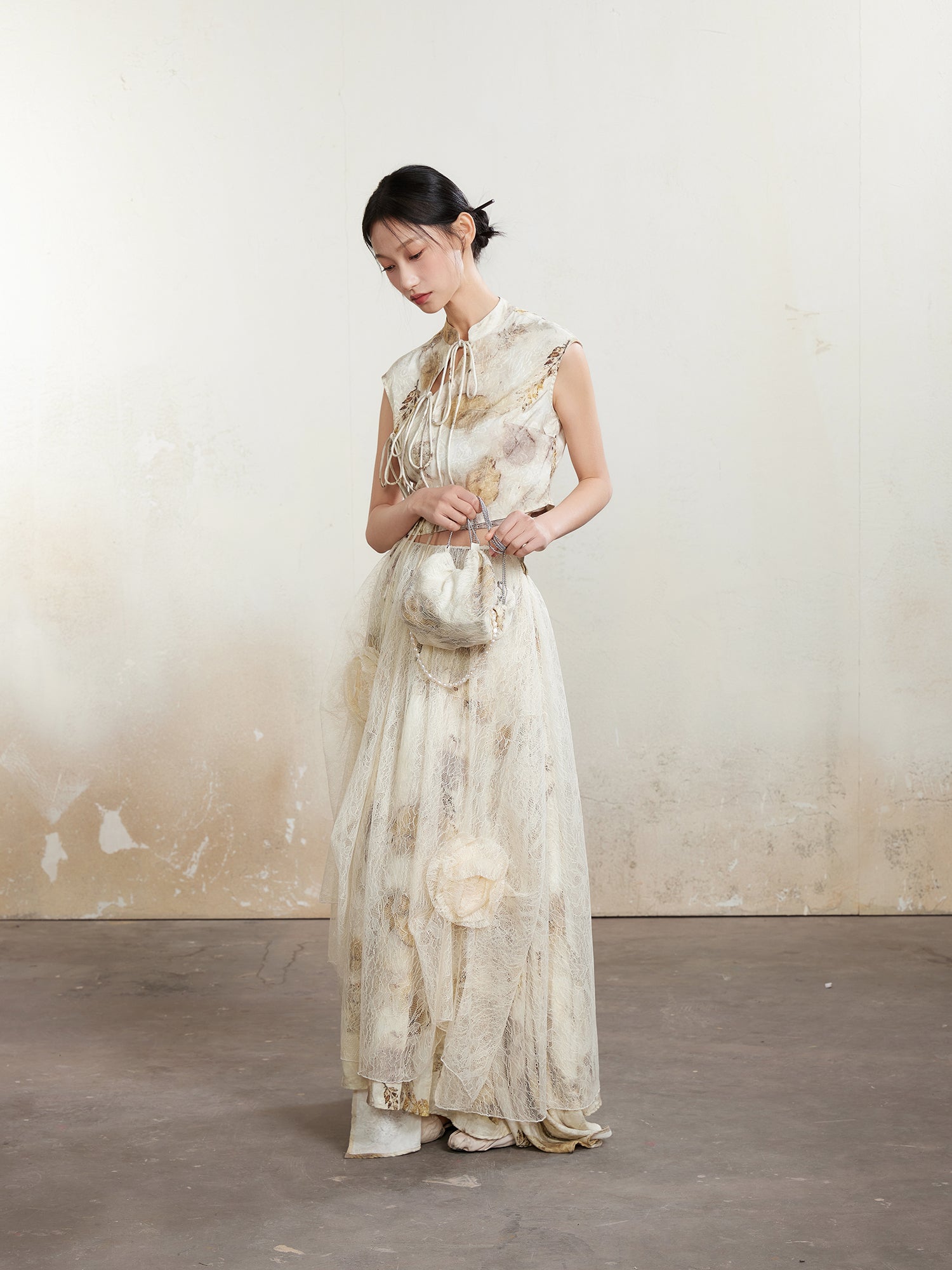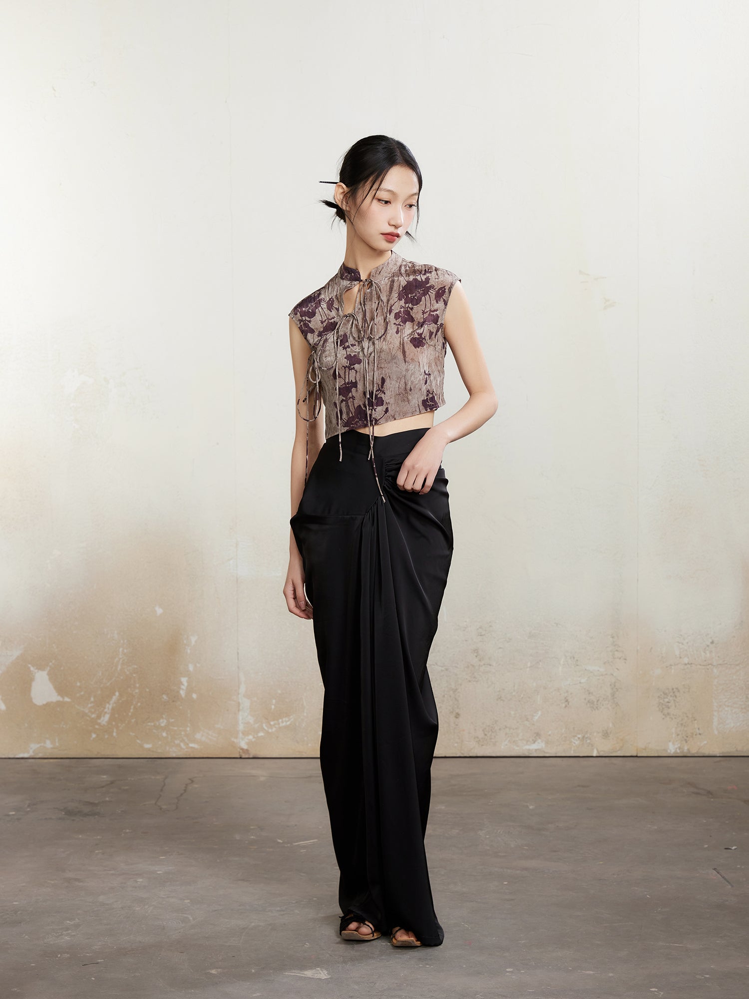 Chinesische gedruckte Ärmeltätigkeit Schnüre-up Short Top
