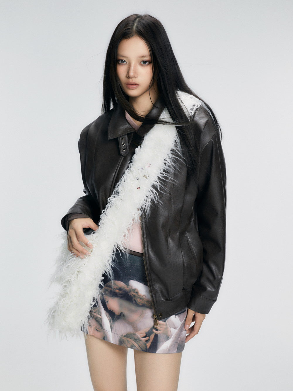 Fur-Heck glatte Ovesize High-End-Lederjacke