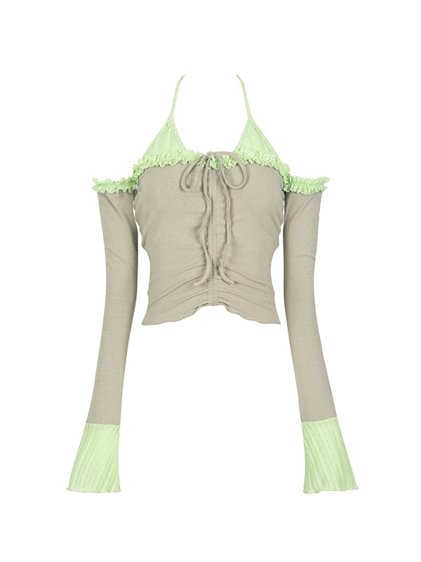 Halfhalter BIO-Farbfleisch sexy Band Open-Shoulder Tops
