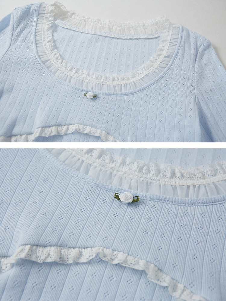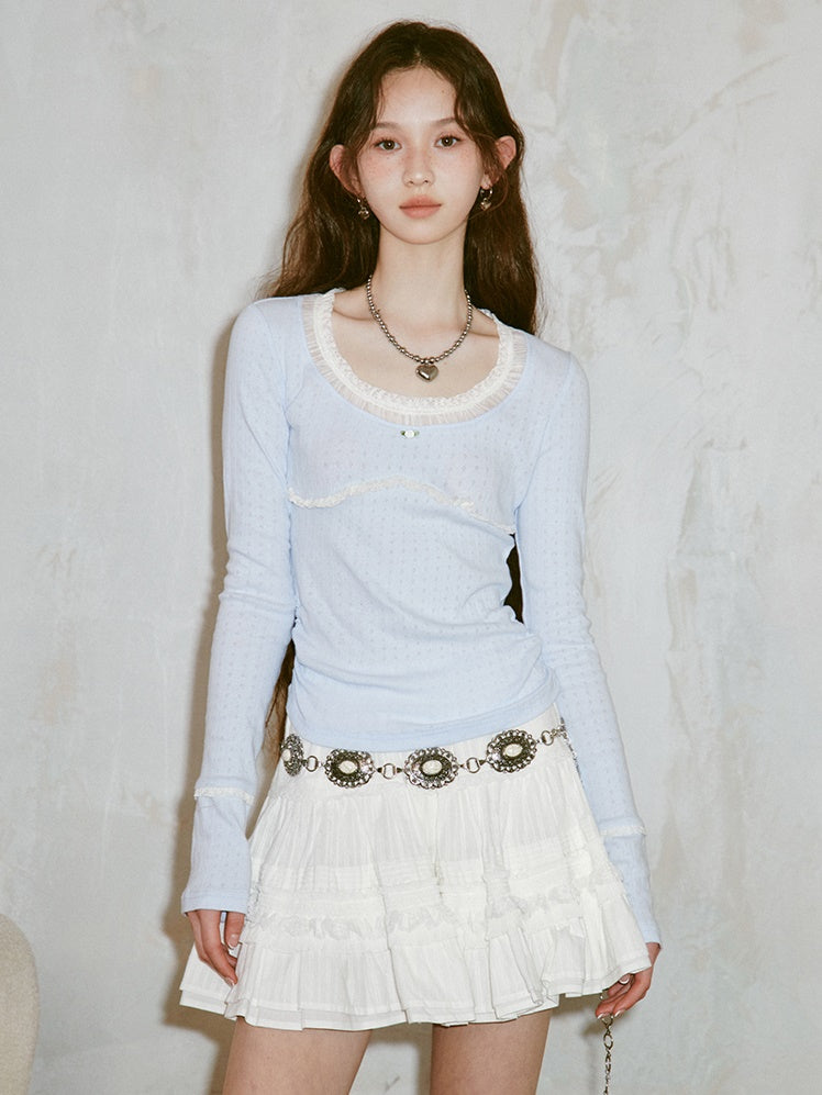 Lace Splicing Fake Two-piece Bottoming Shirt