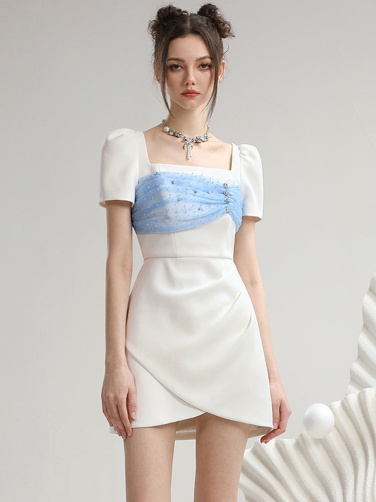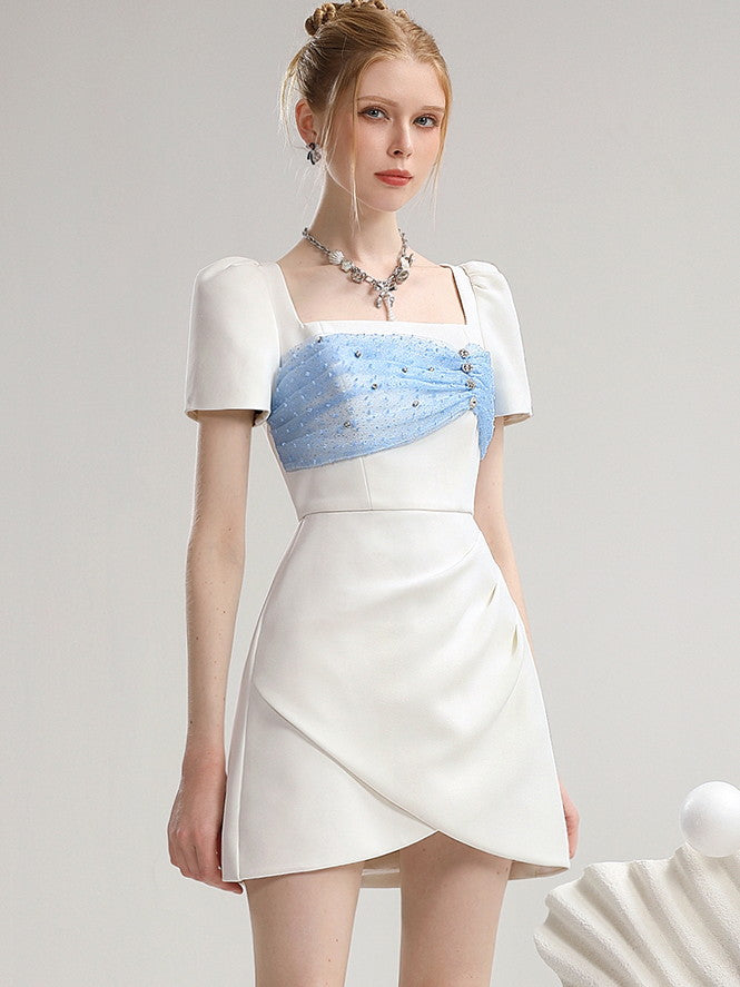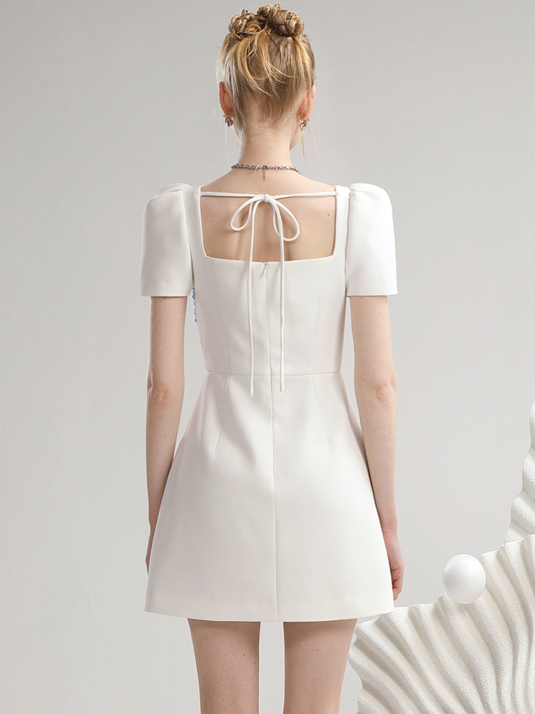Lace Wrap Square-Neck Half-Sleeve Gather Sweet One-Piece