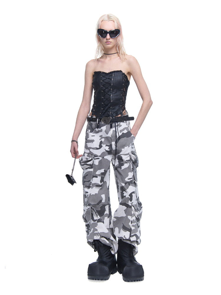 Leather Lace-Up Tight Punk Heavy Bustier&Skirt