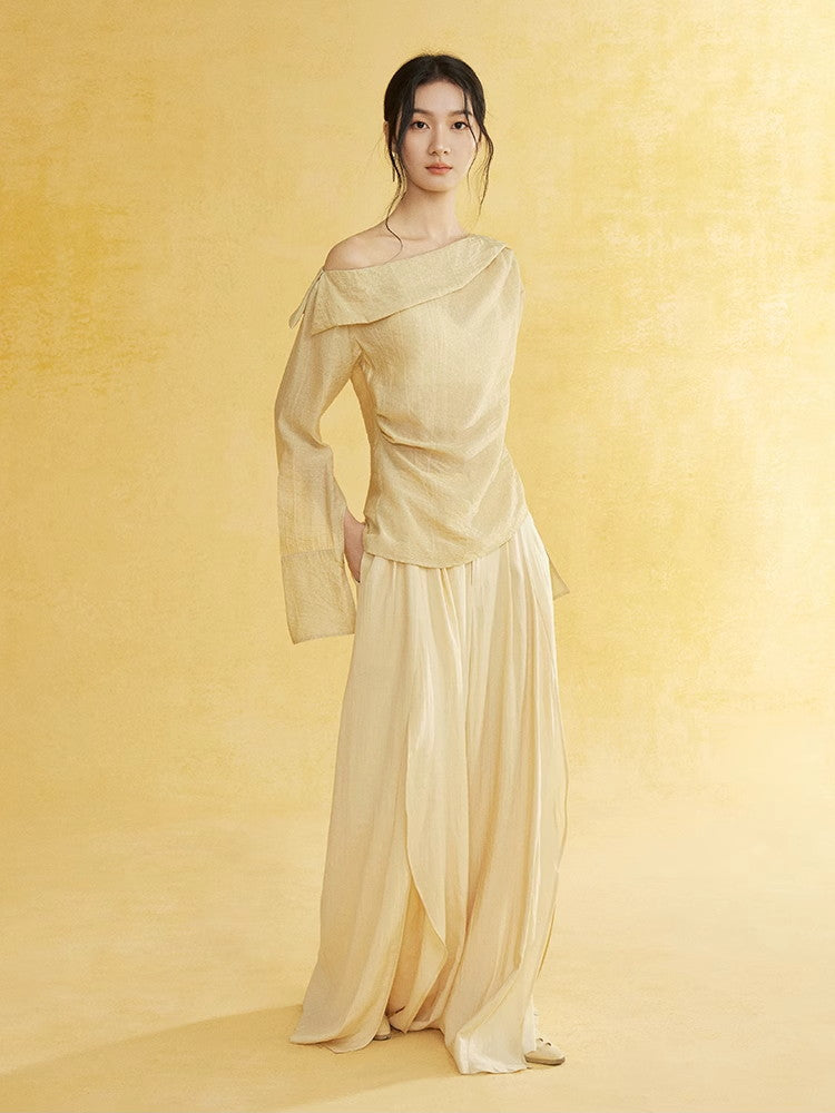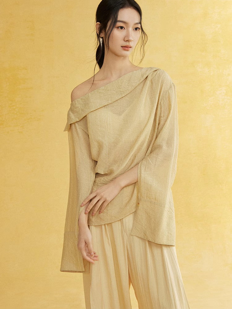 One-Shoulder Natural Slit-Sleeve Cover schicke Bluse