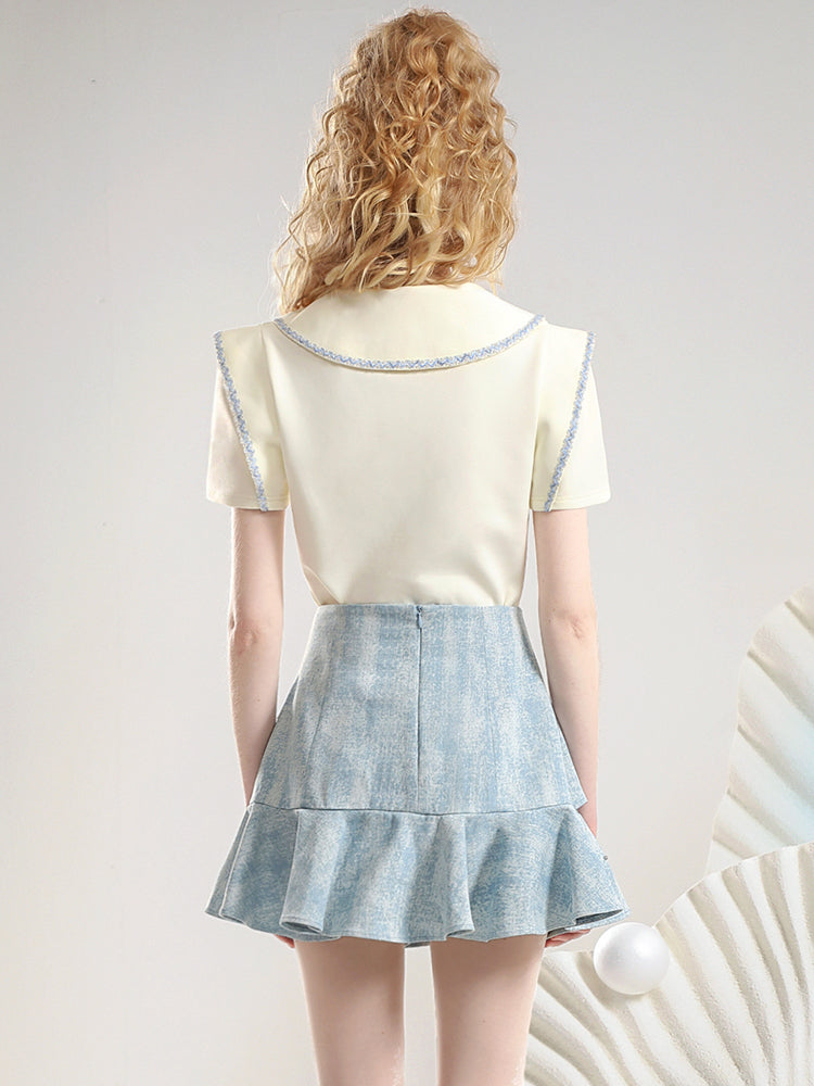 Set-Up Flower Drawstring Tiered Bijou Feminine Blouse&Mini-Skirt