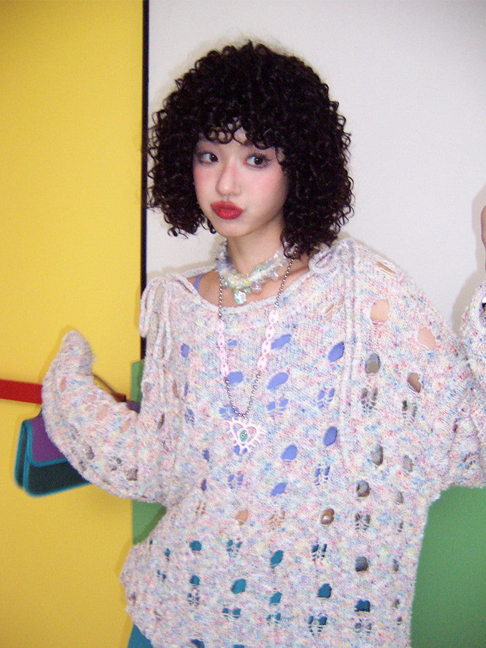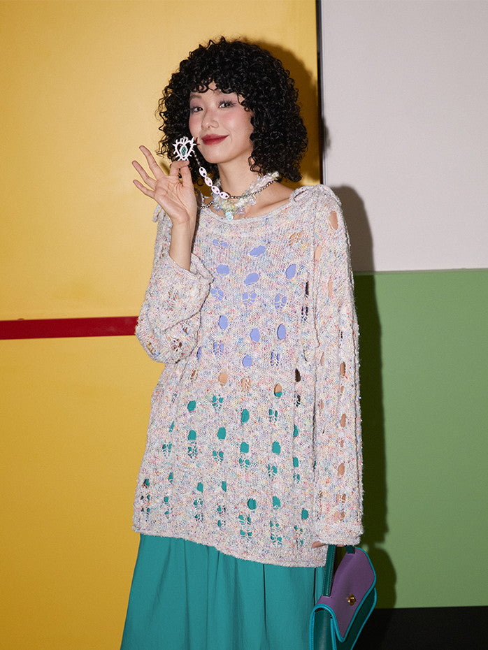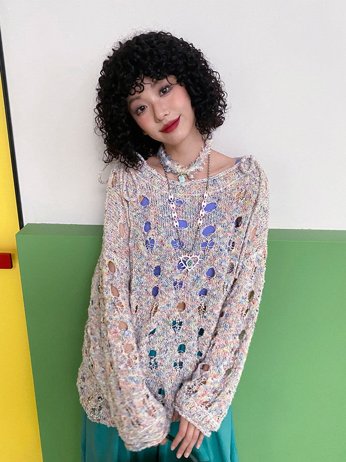 Set-Up Mesh Hole Nichi Loose Overzie Knit