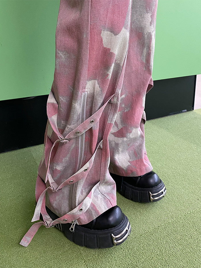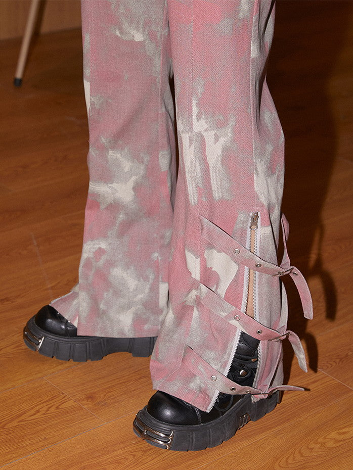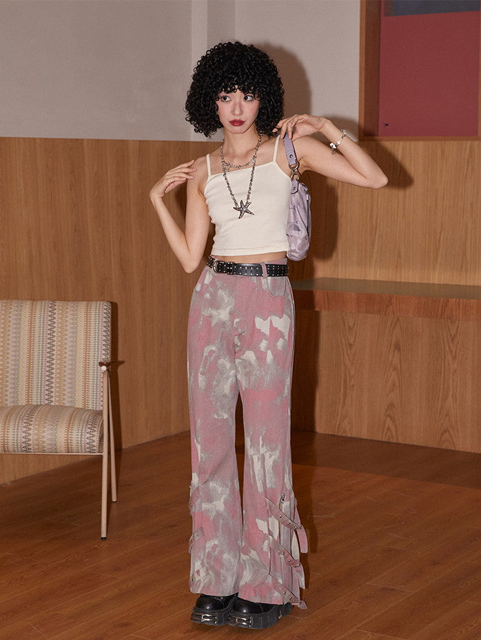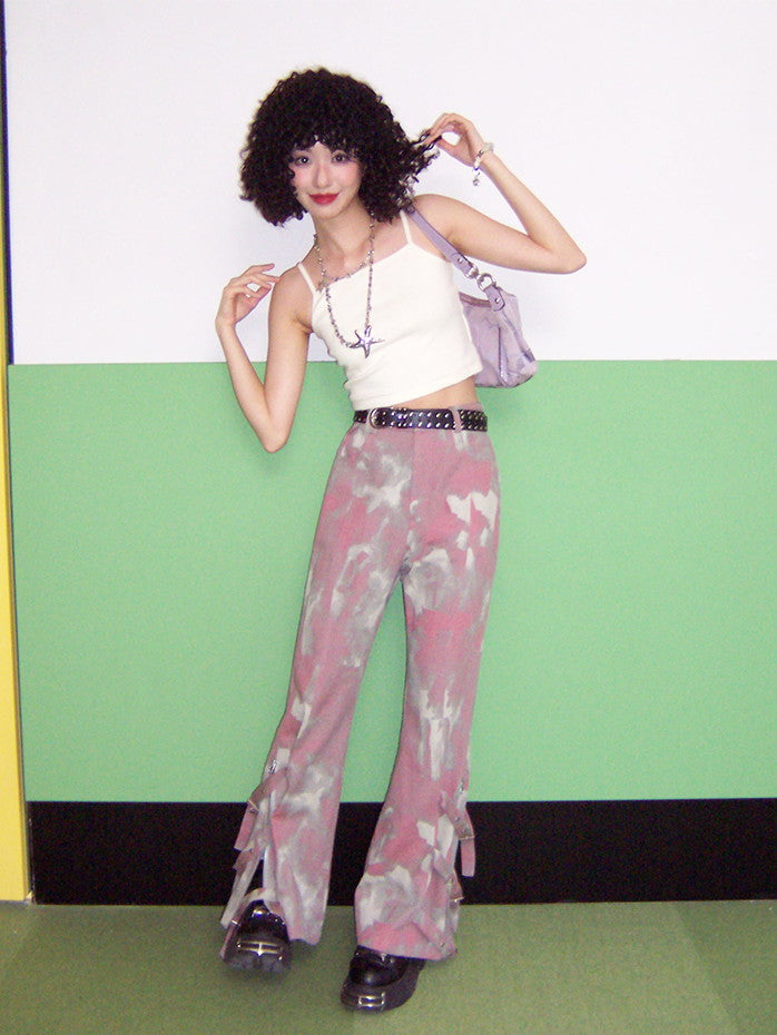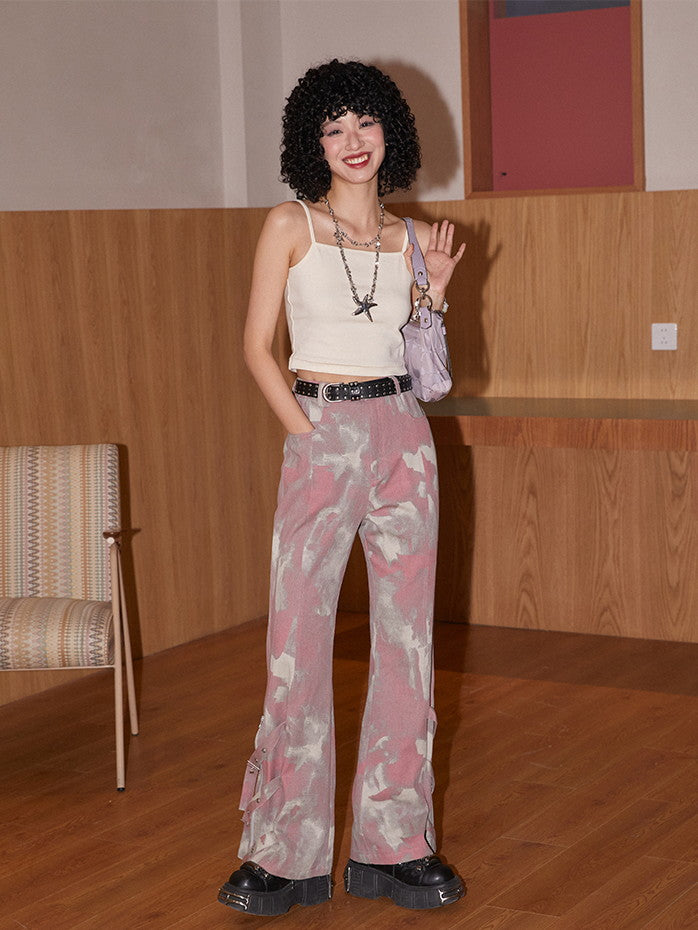 Speckled Belt Nichi Casual Loose Flare-Pants