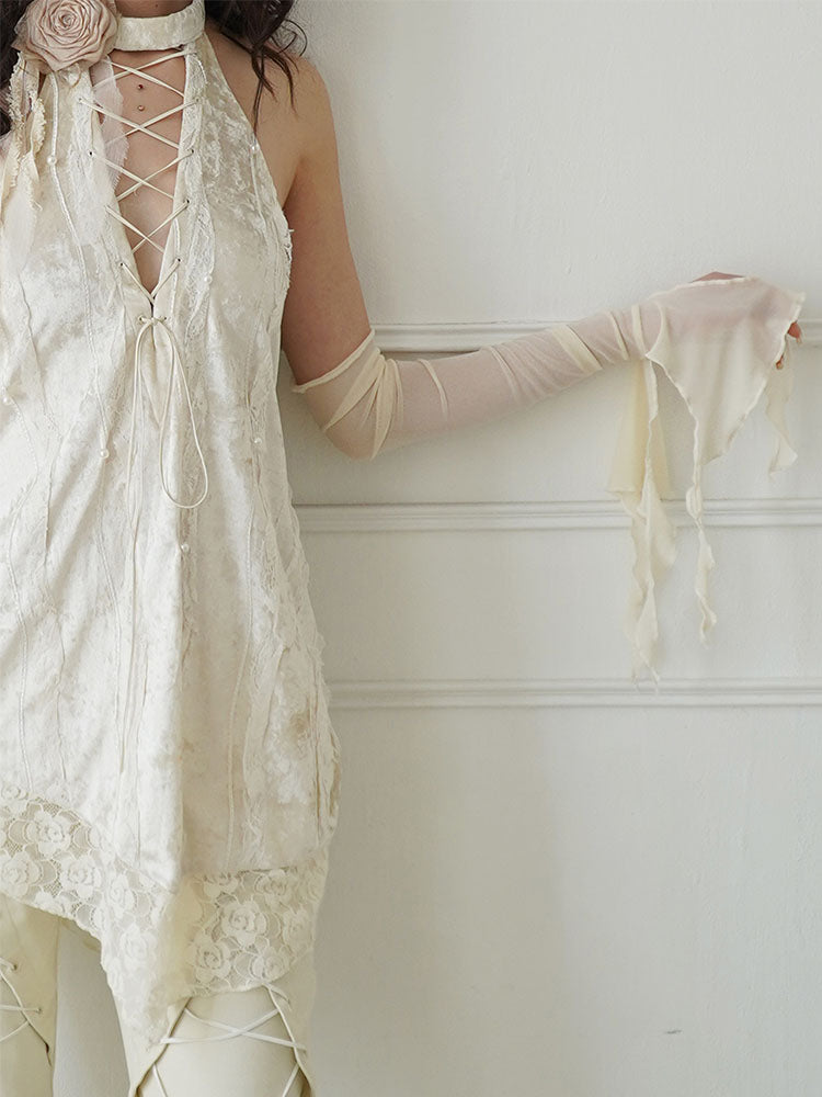 Sheer Ruffle Thin Long Asymmetry Arm-Cover