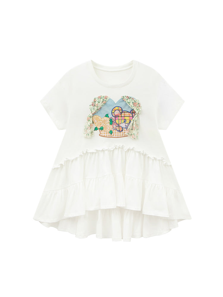 Tiered Frill Lace Window Bear Cute Fancy Flare-T-Shirt