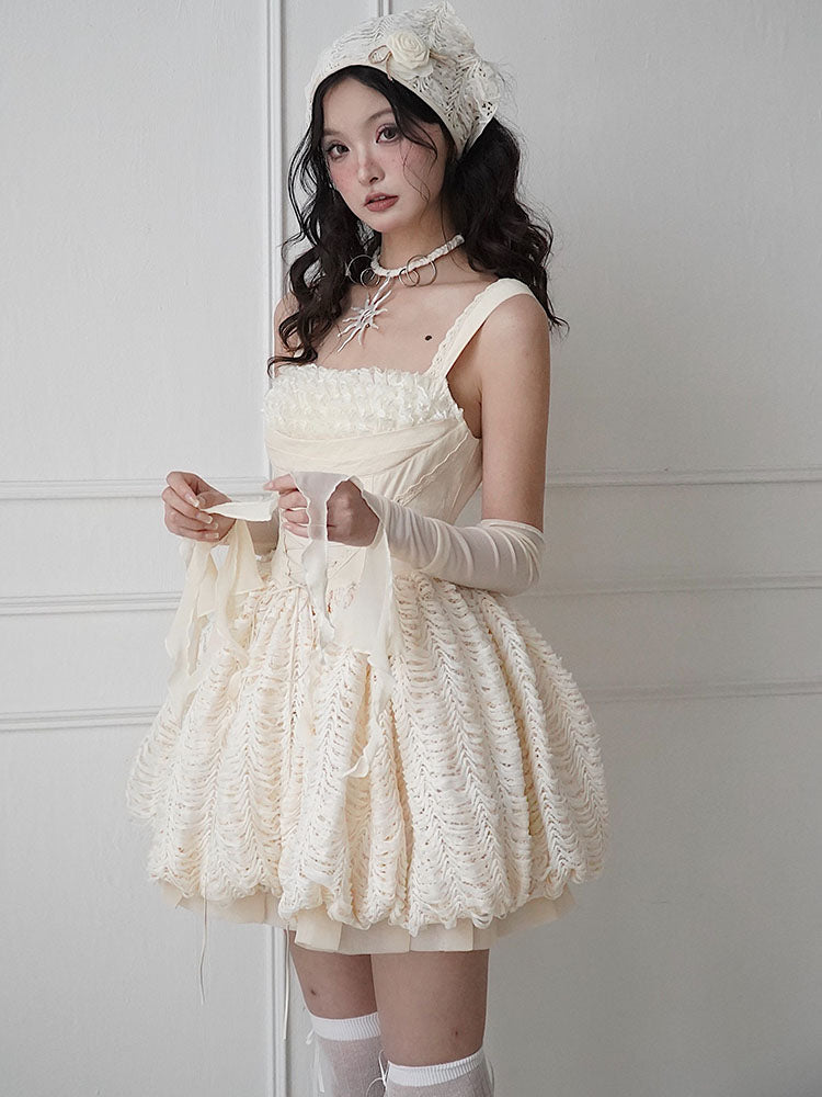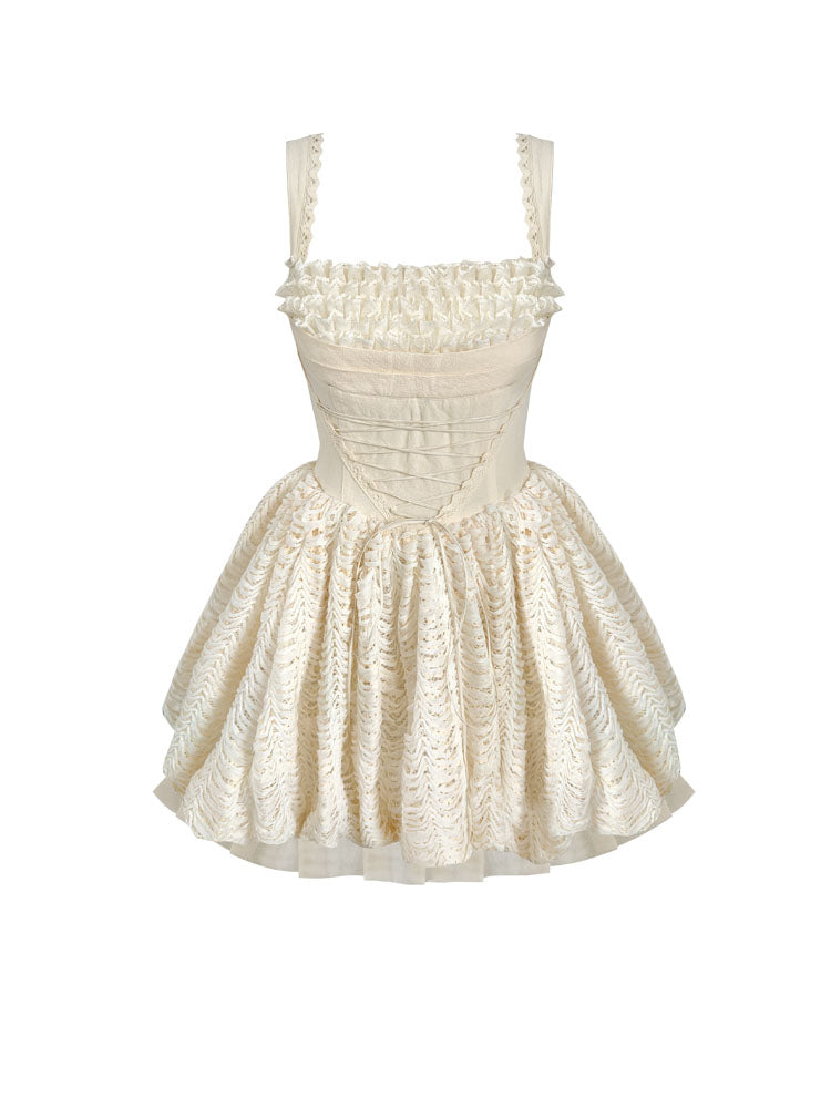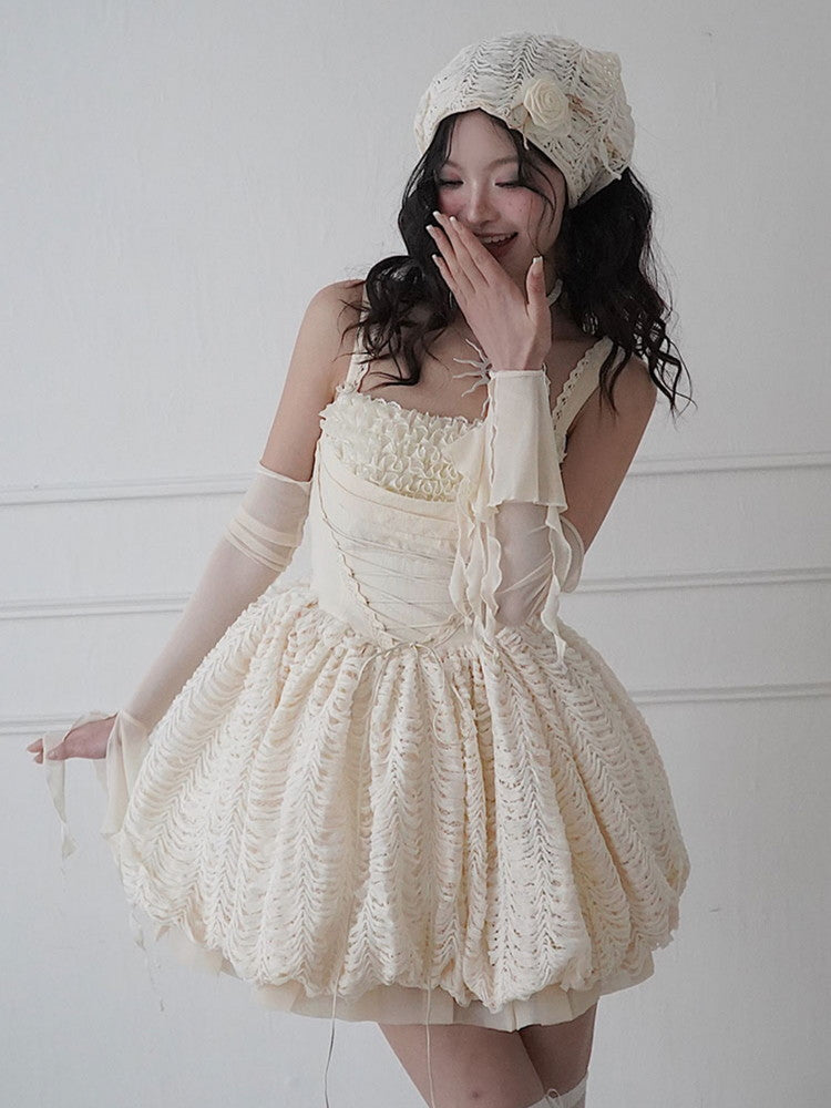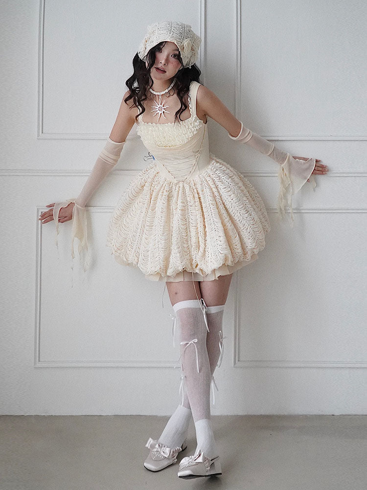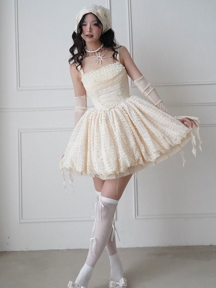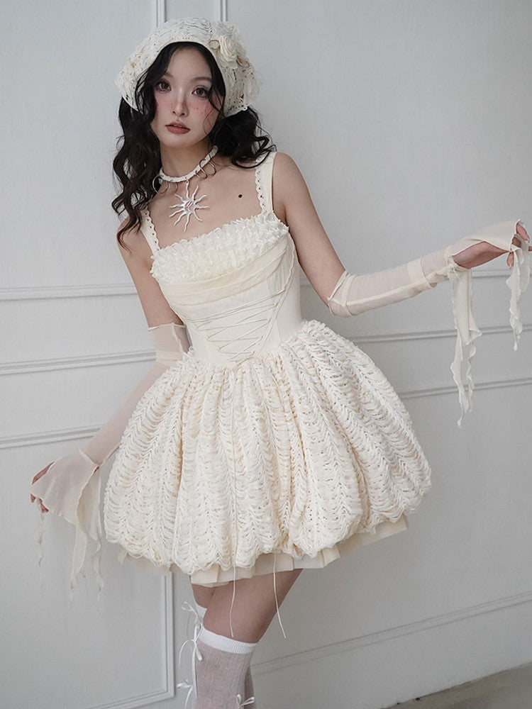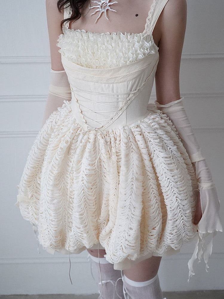 Unique Princess Lace-Up Fluffily Balloon Puff Dress