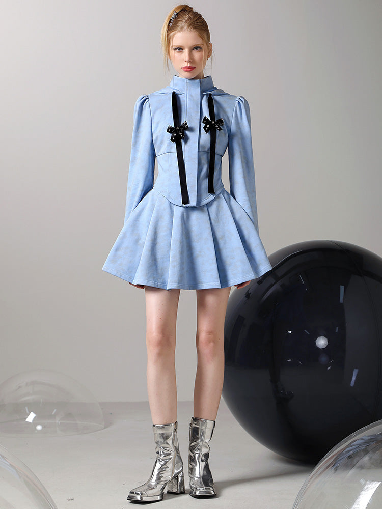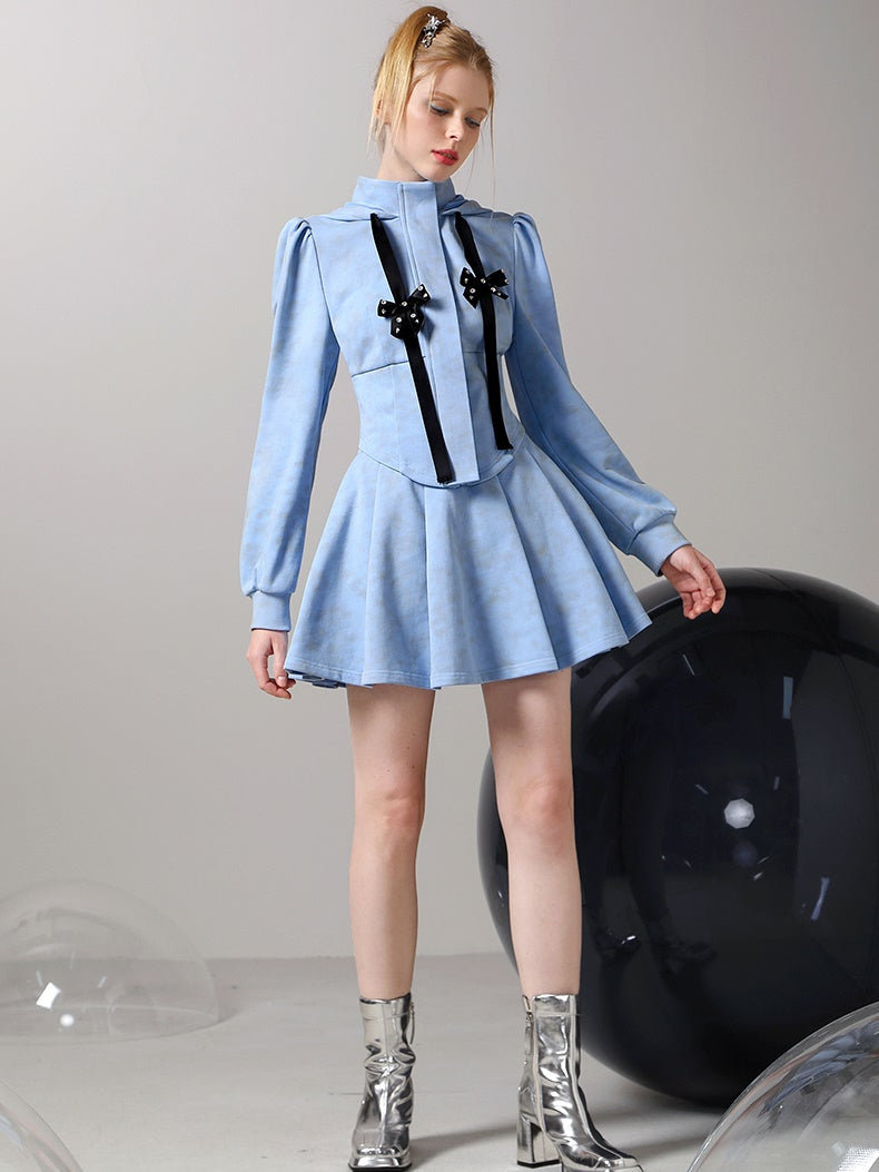Blouse&Mini-Skirt Ribbon Nichi Stand-Collar Set-Up