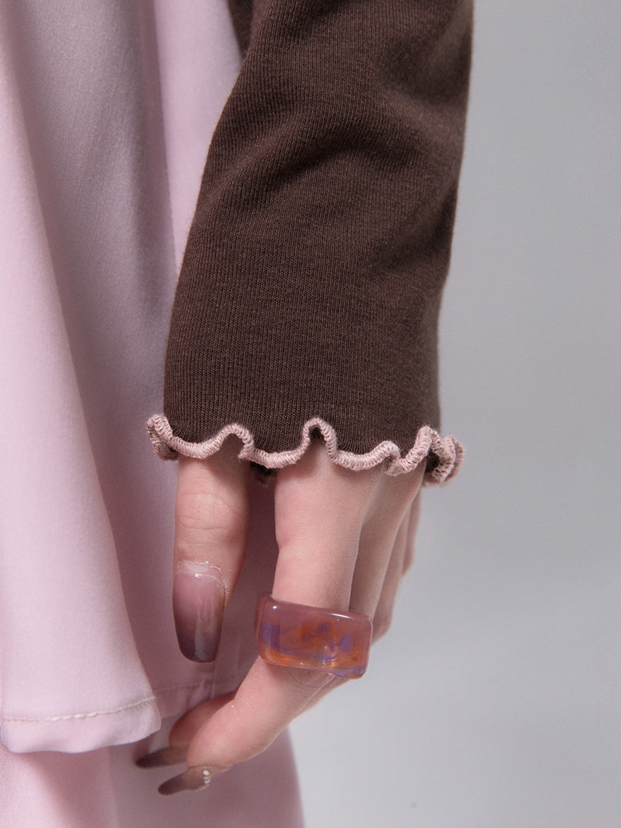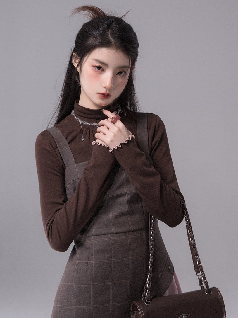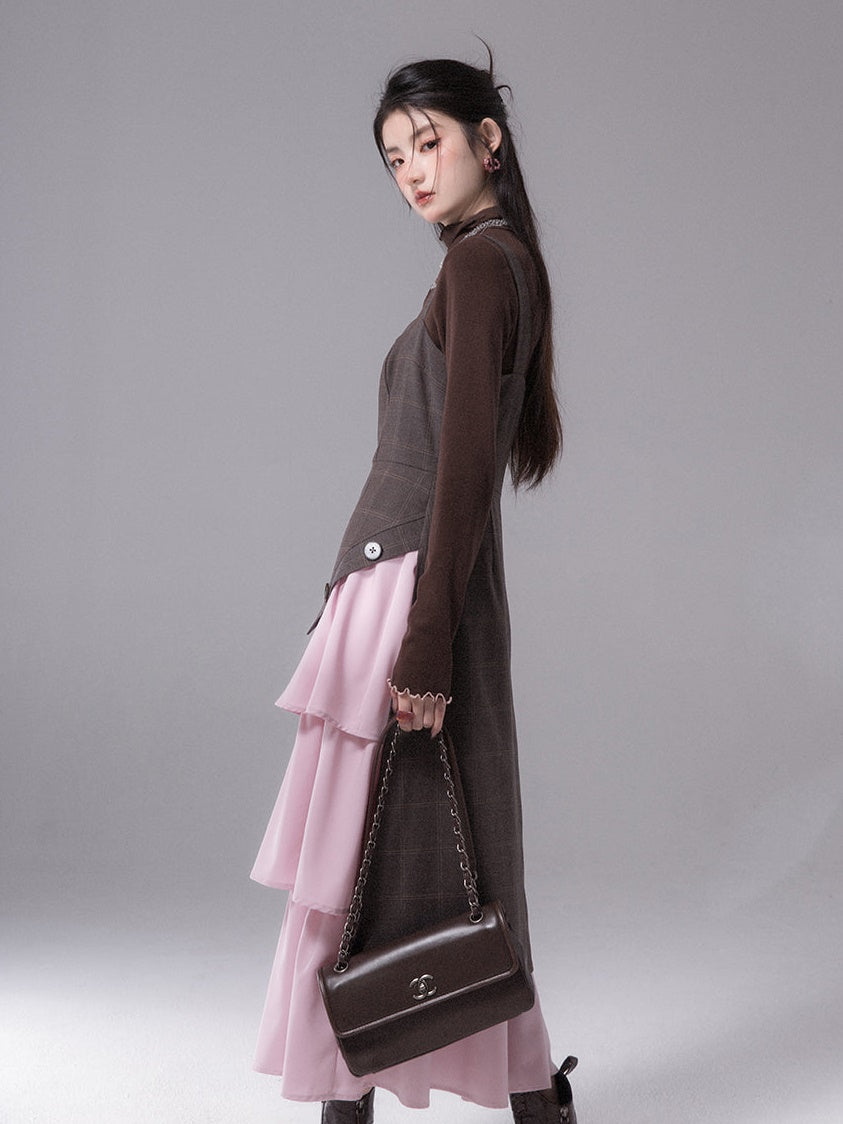 Contrast Color Suspender Dress & Neckline Shirting Bottom Shirt Set-up