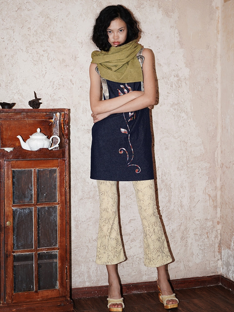Corduroy Cropped Western Flare Studs Embroidery Pants