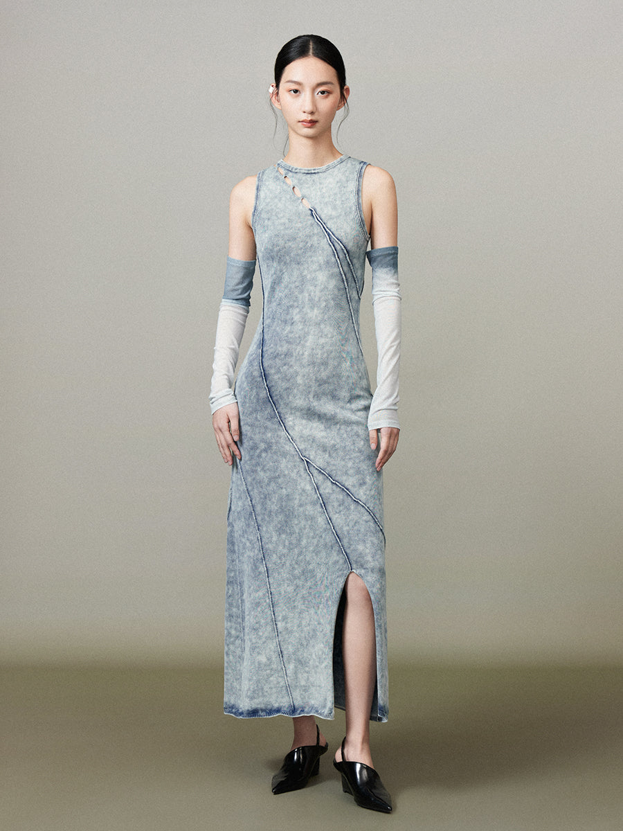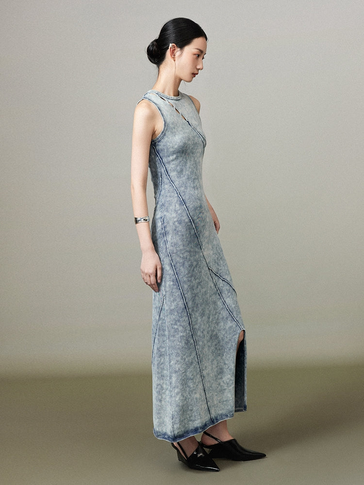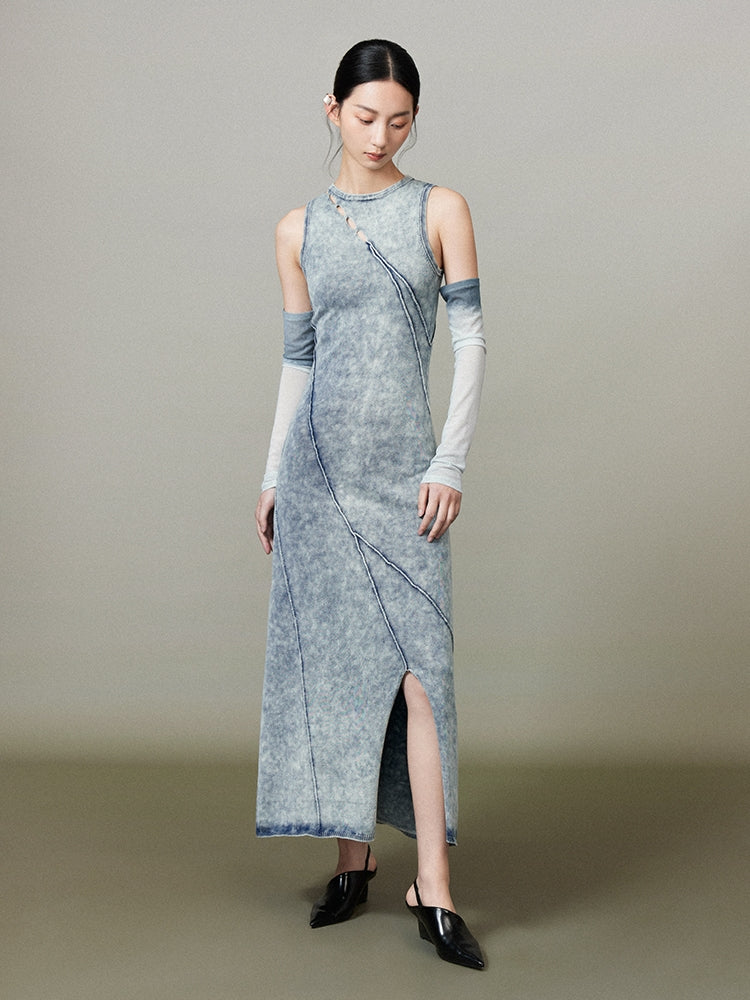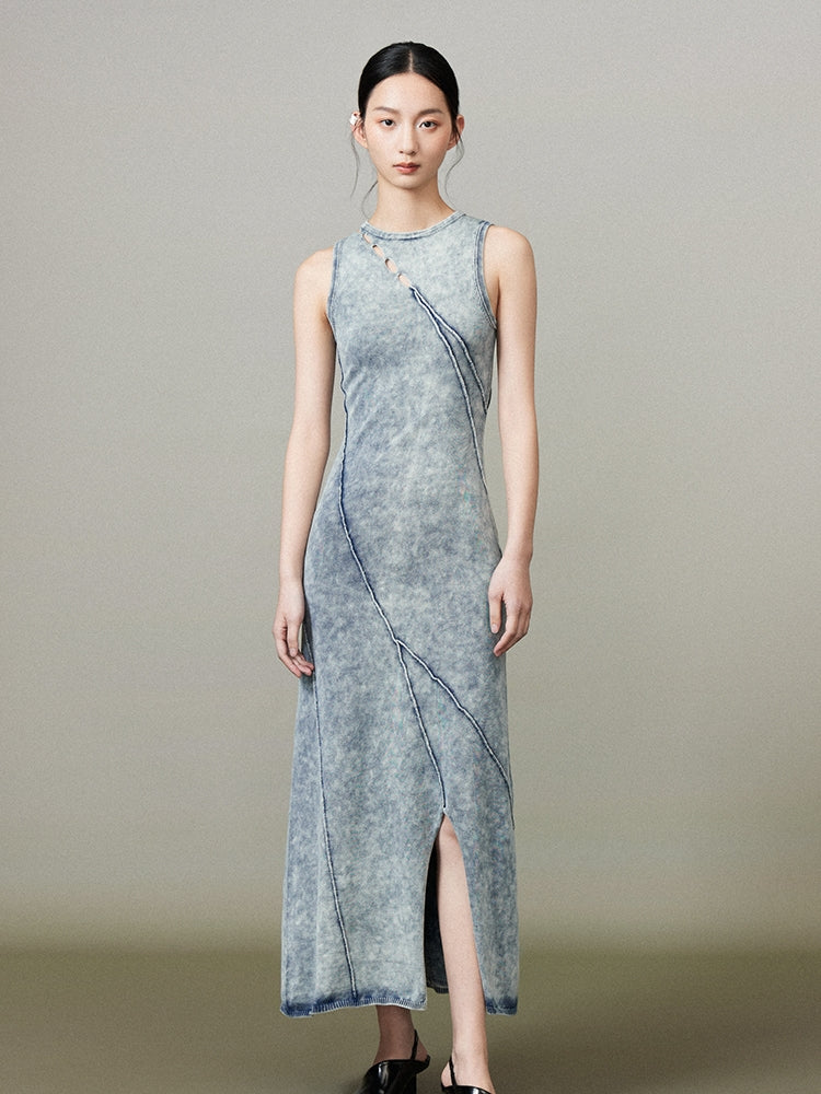 Denim Slit Long Faded Casual One-Piece