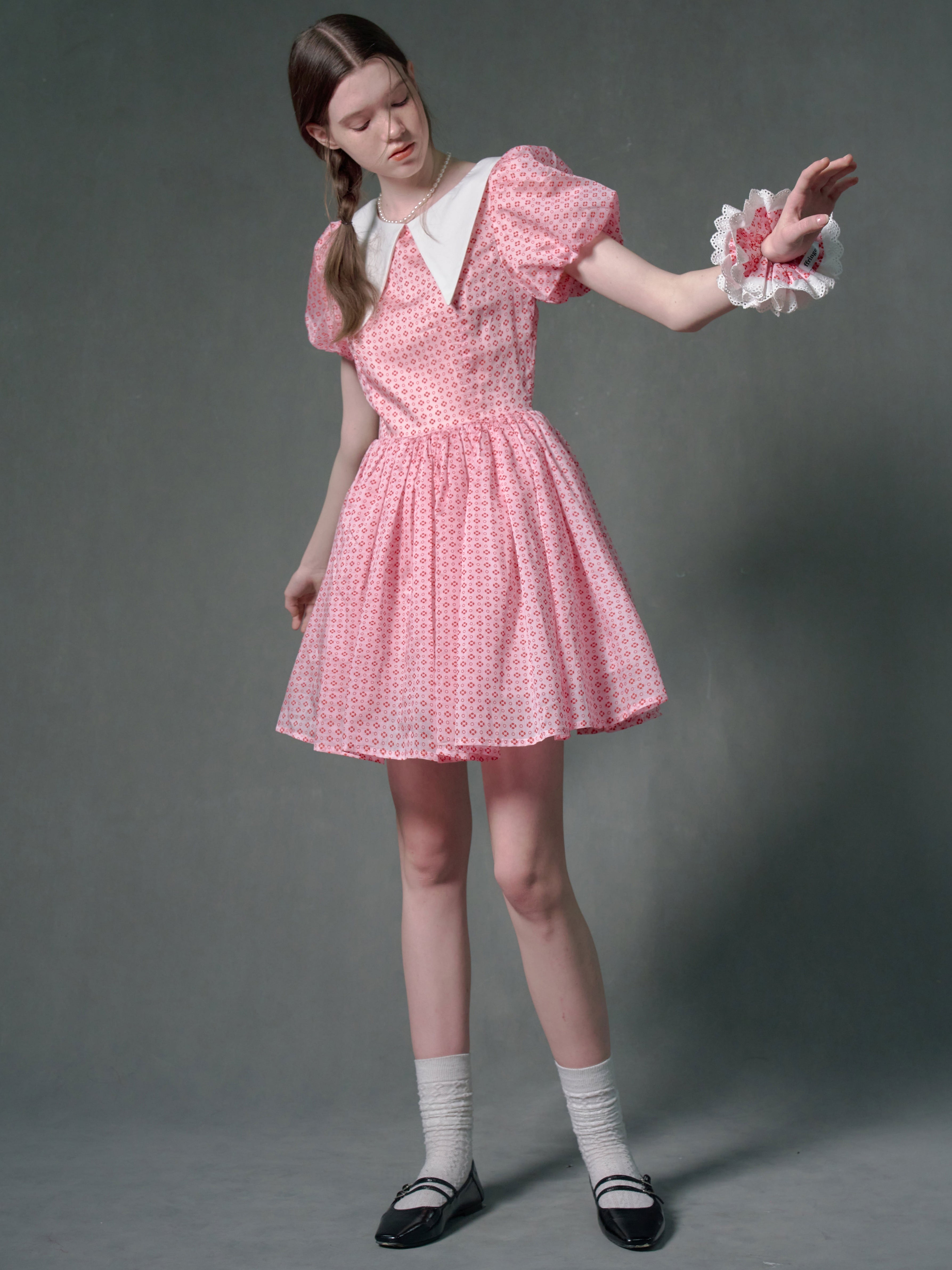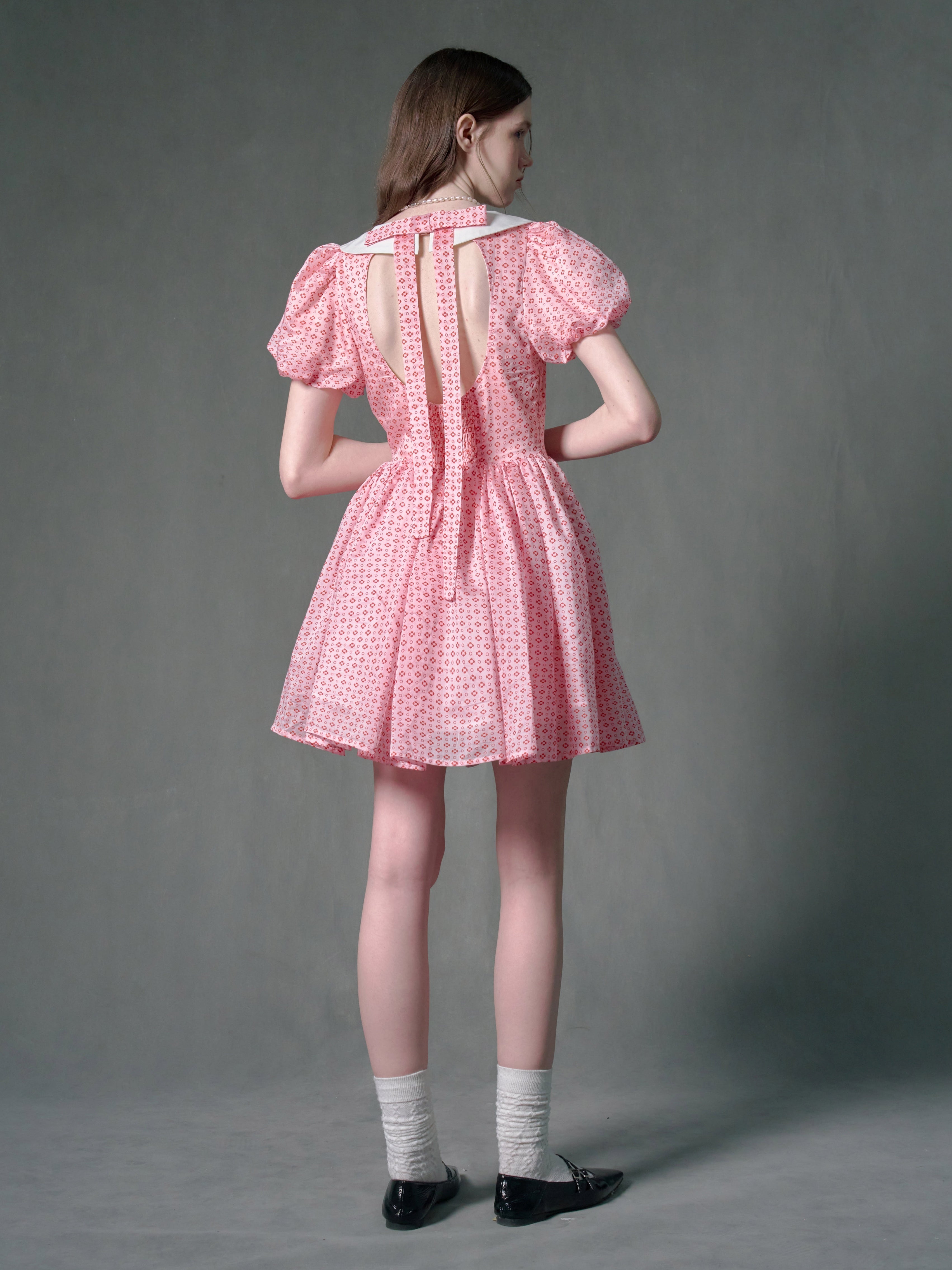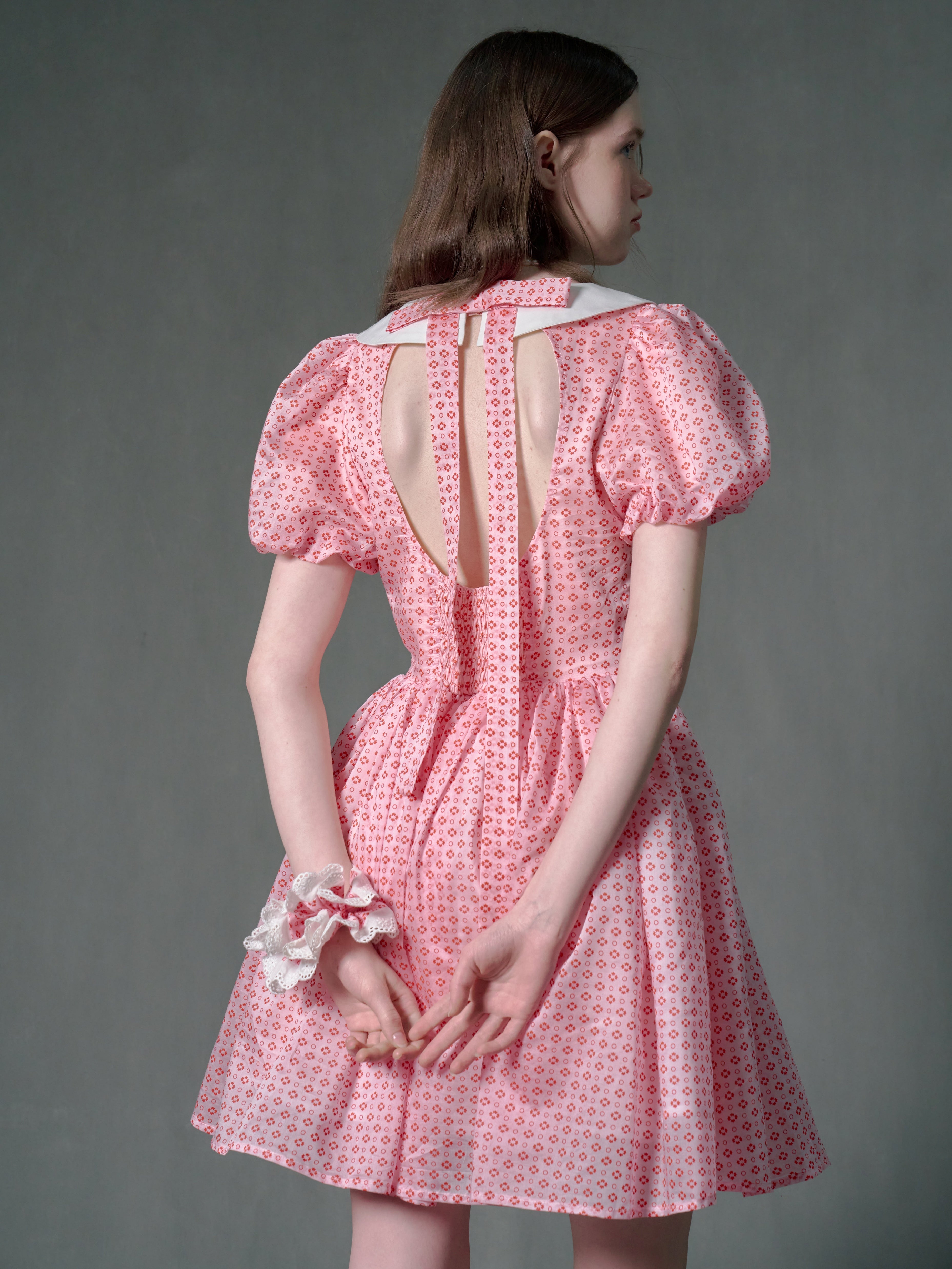 Doll Collar Retro Court Style Puff Sleeve One-piece