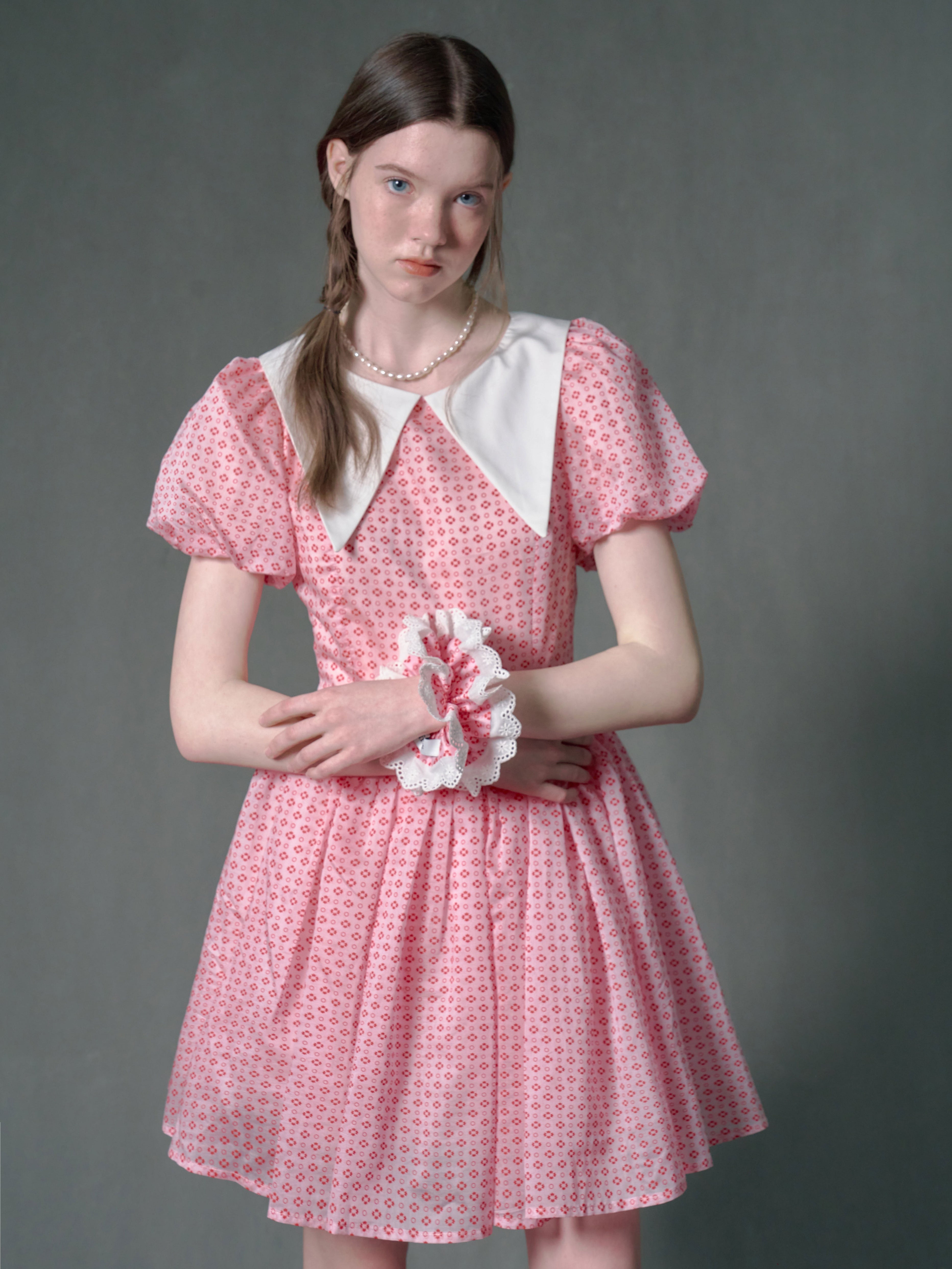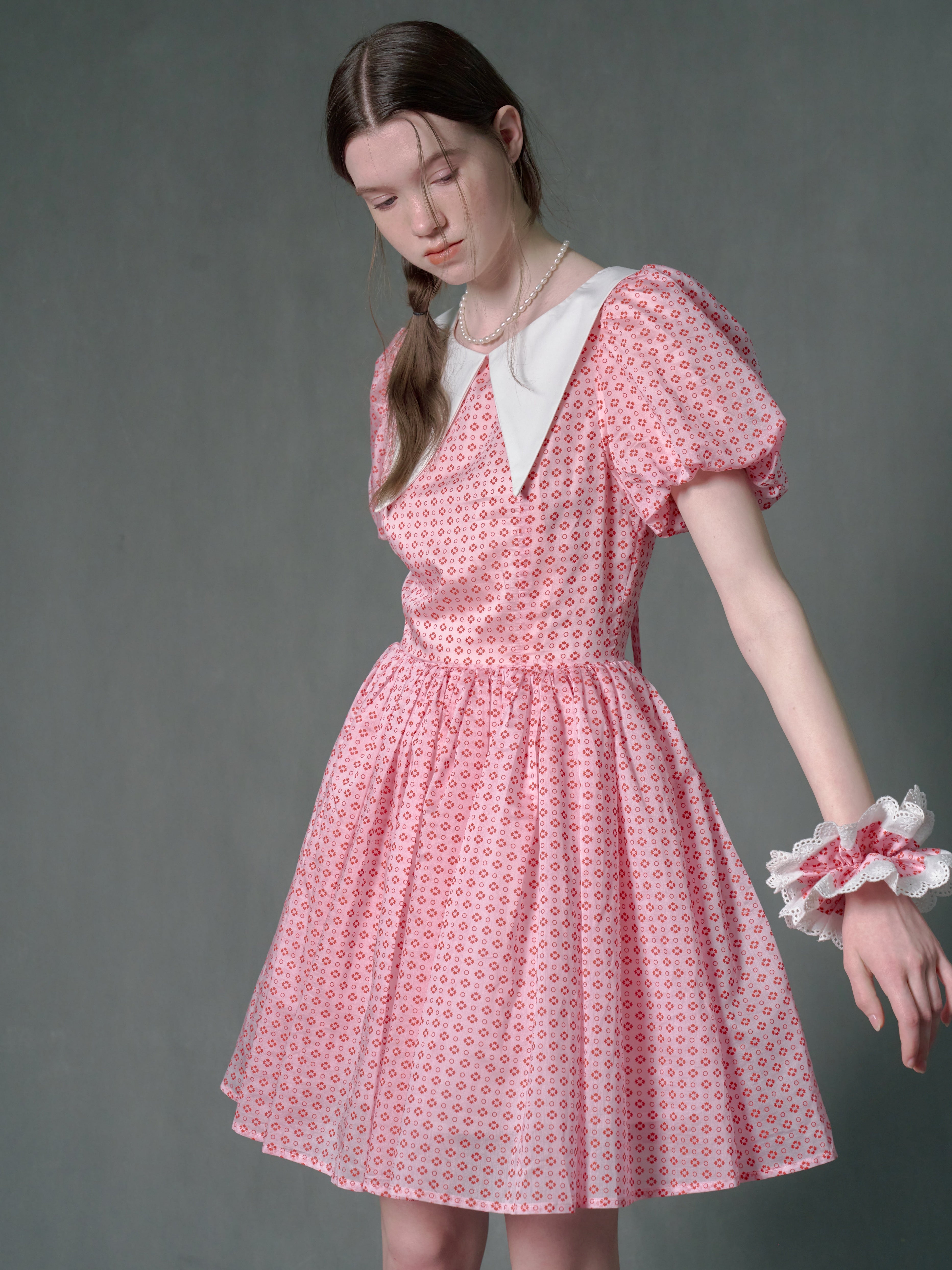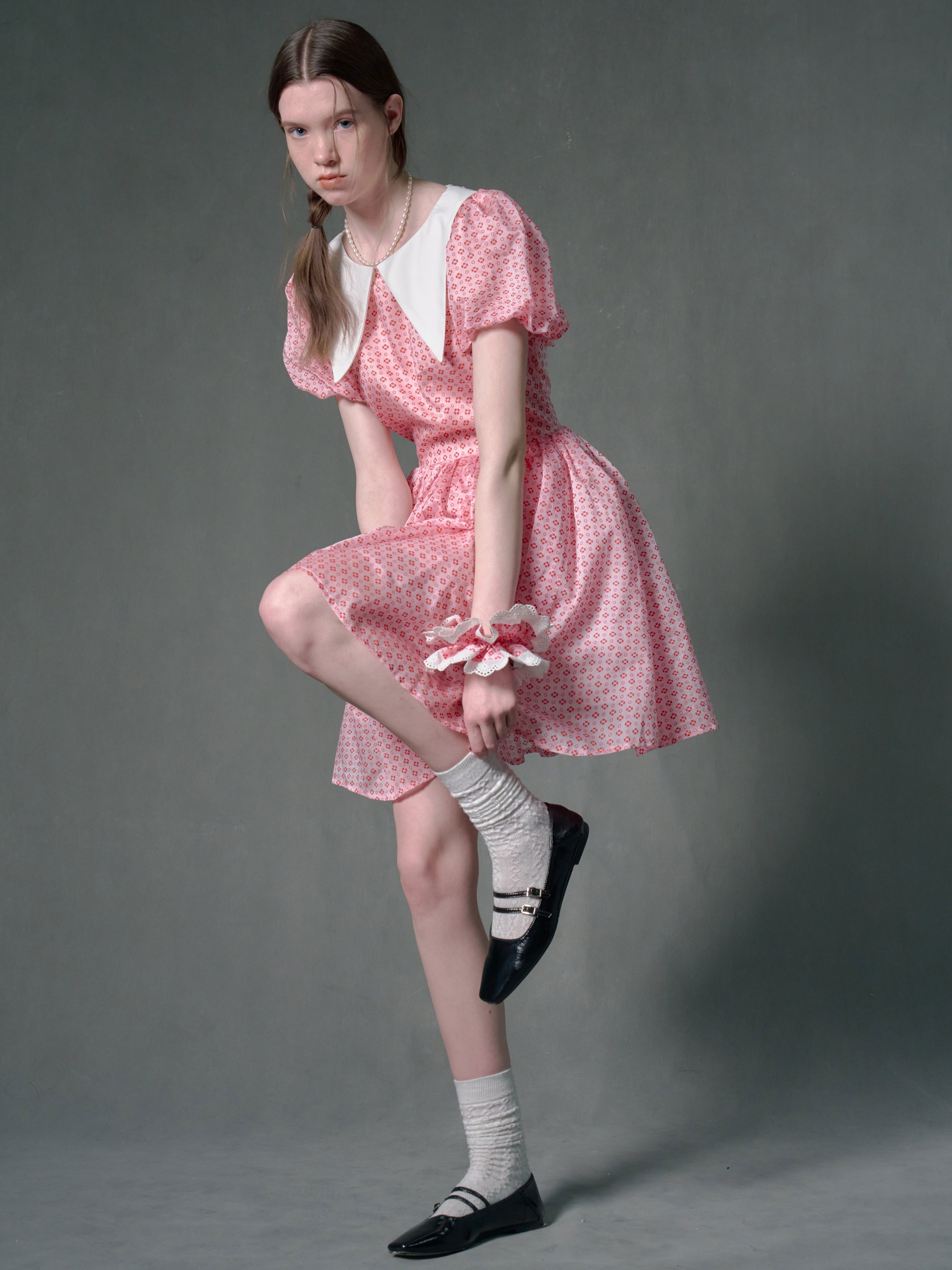 Doll Collar Retro Court Style Puff Sleeve One-piece