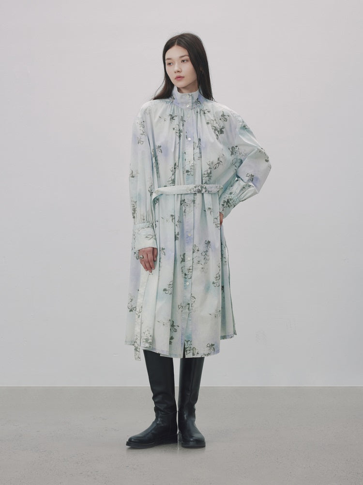Flower Pale Retro Water-Color Shirt-One-Piece