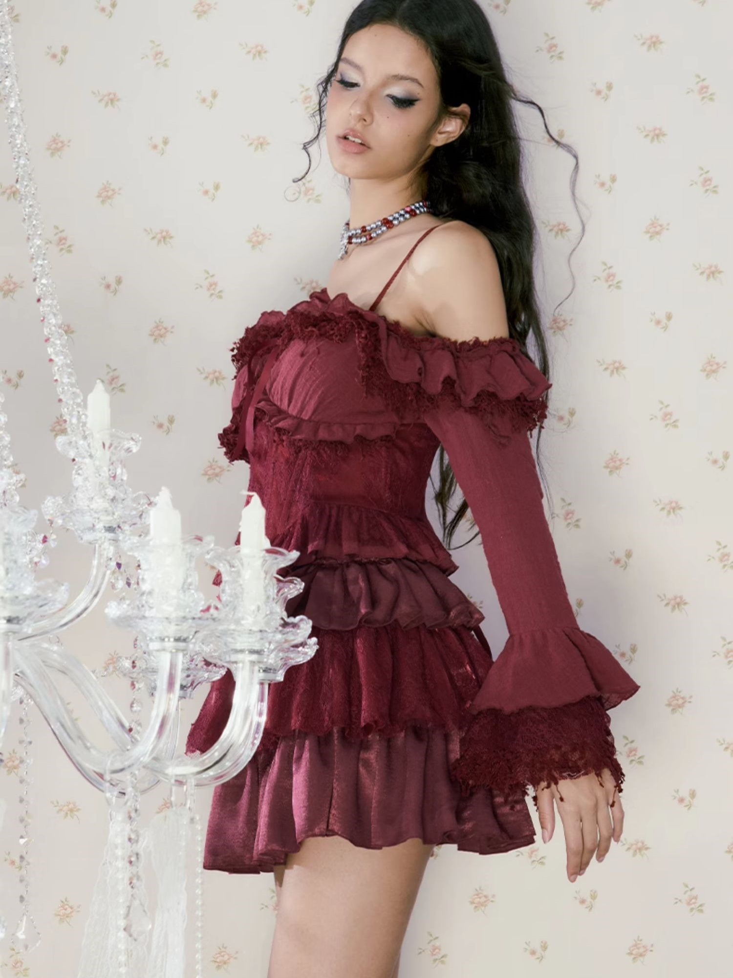 Frill Off-Shoulder Tiered Retro Blouse&Mini-Skirt