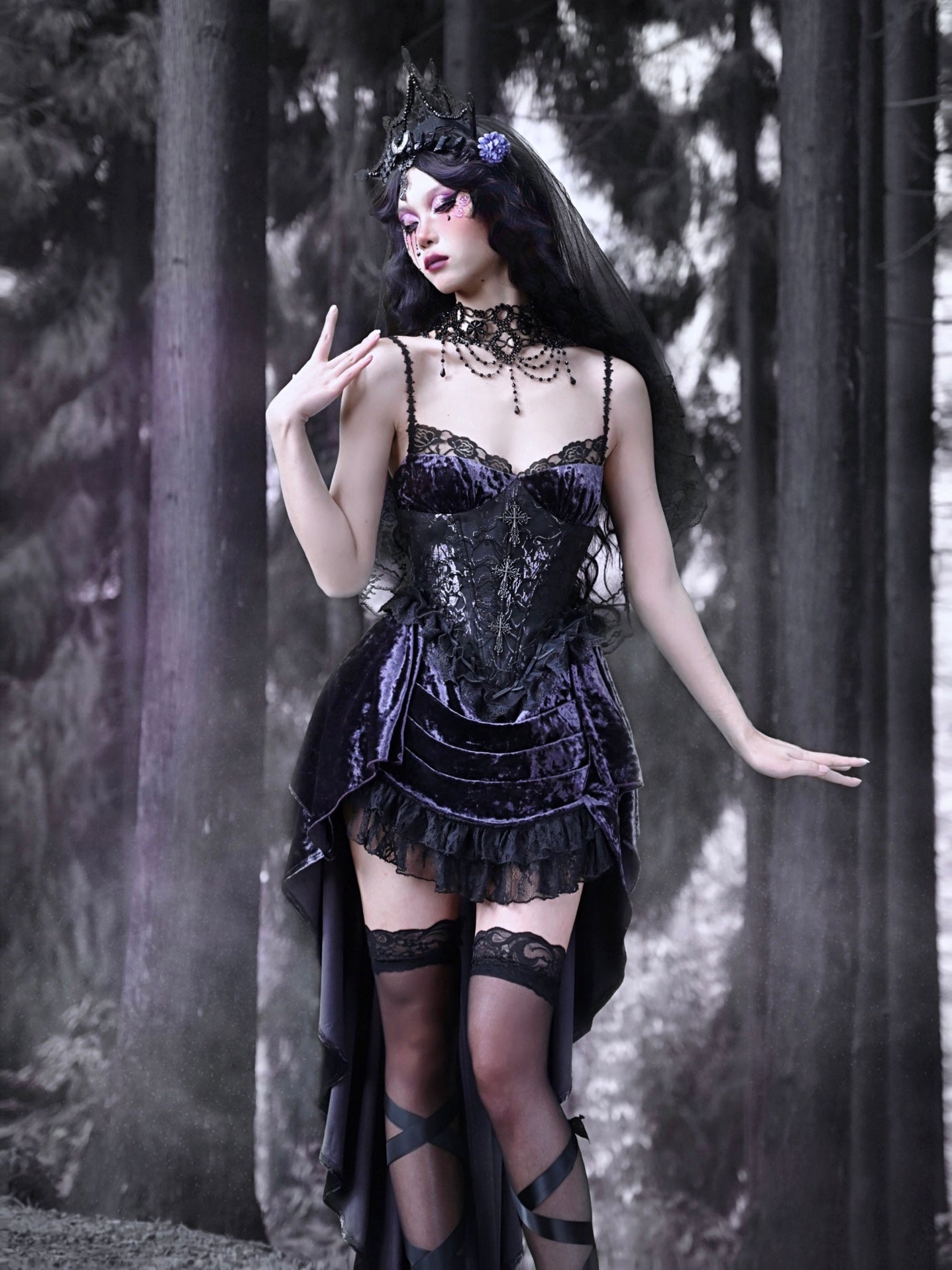 Gothic Velvet Fish-Tail Princess Lace Cross One-Piece