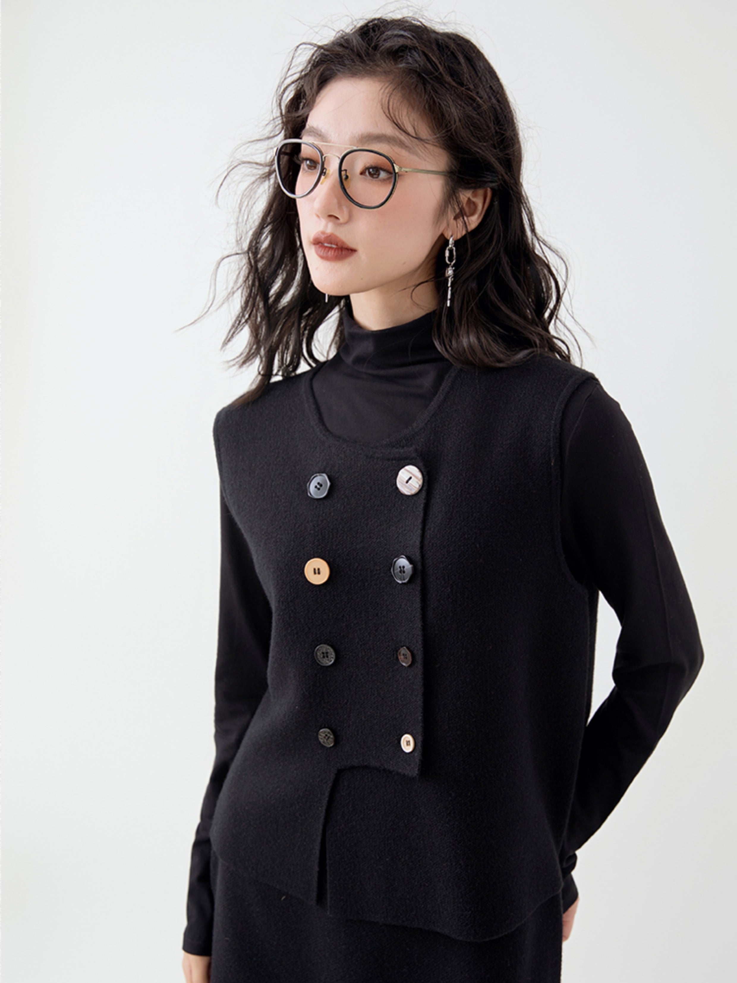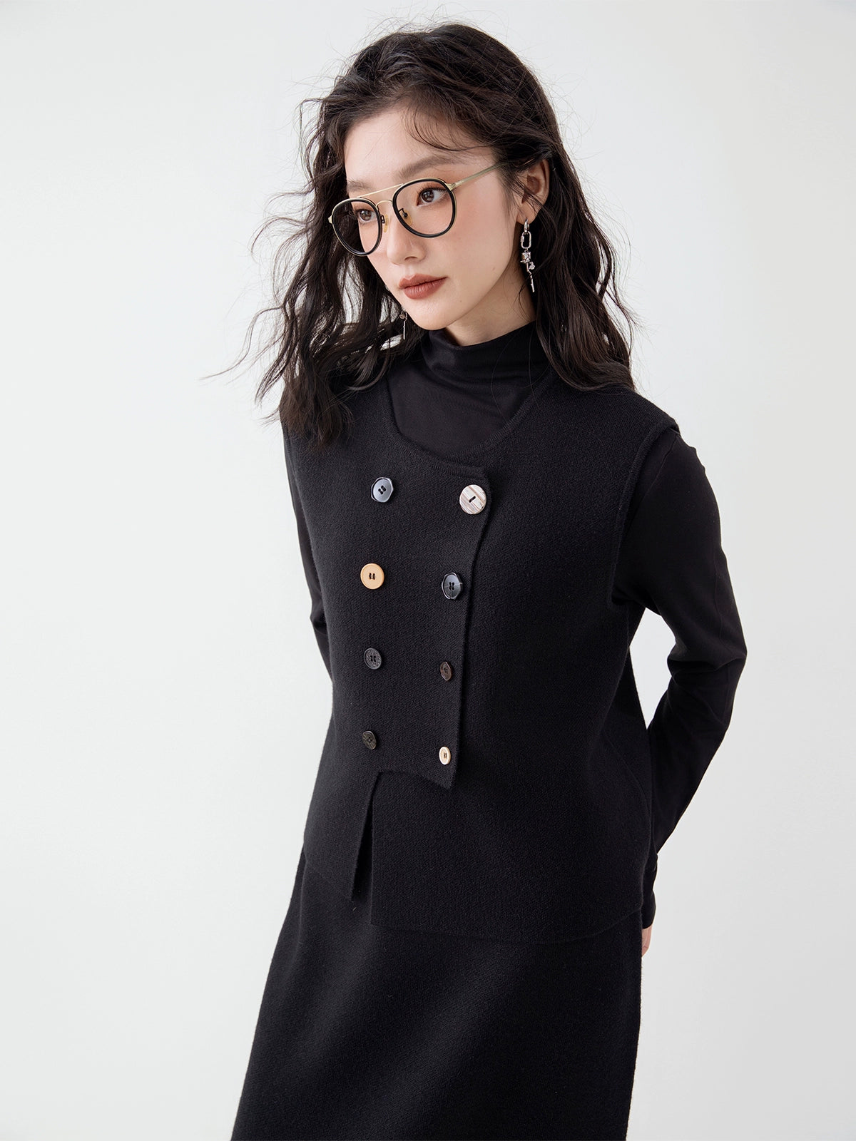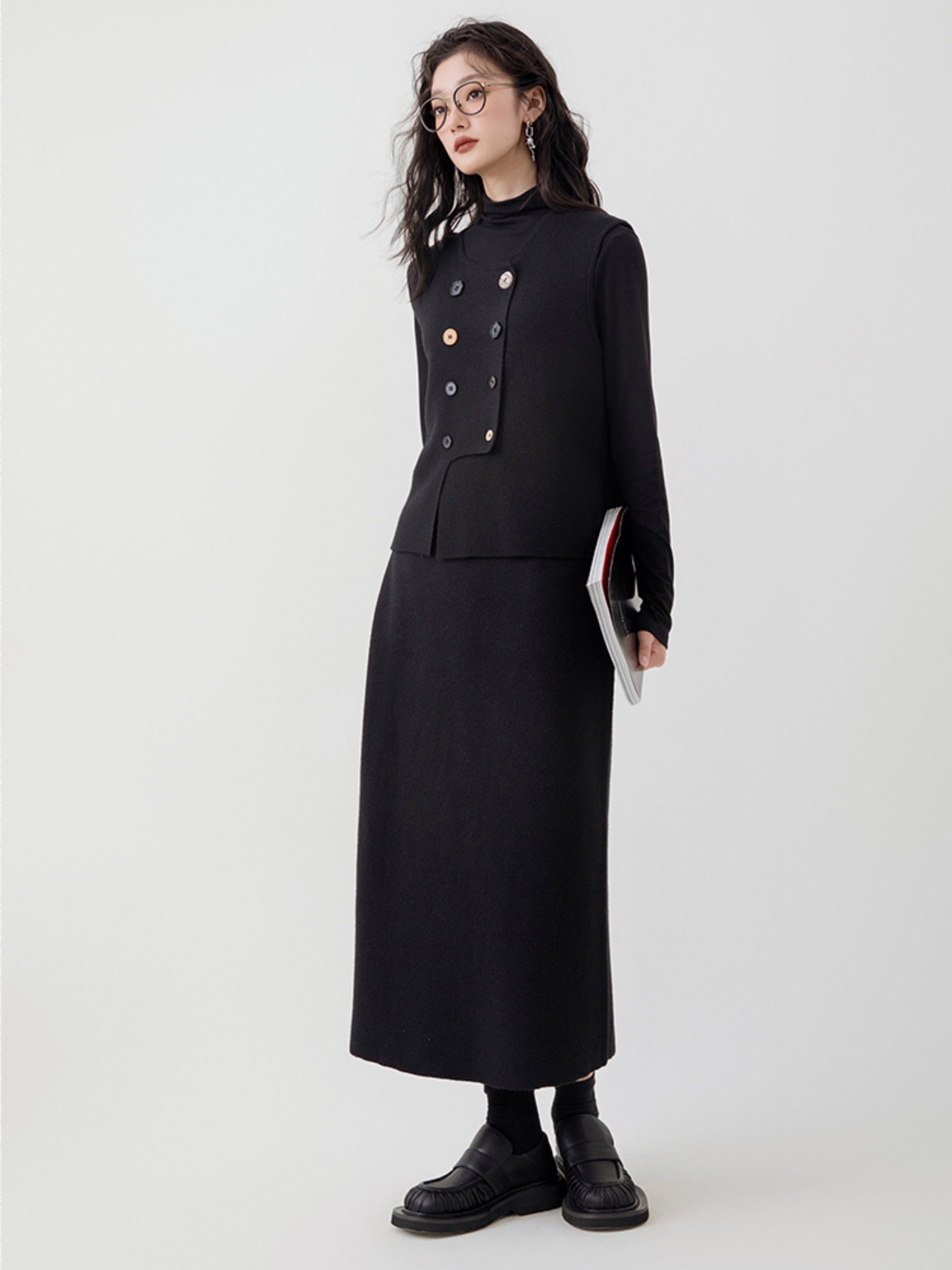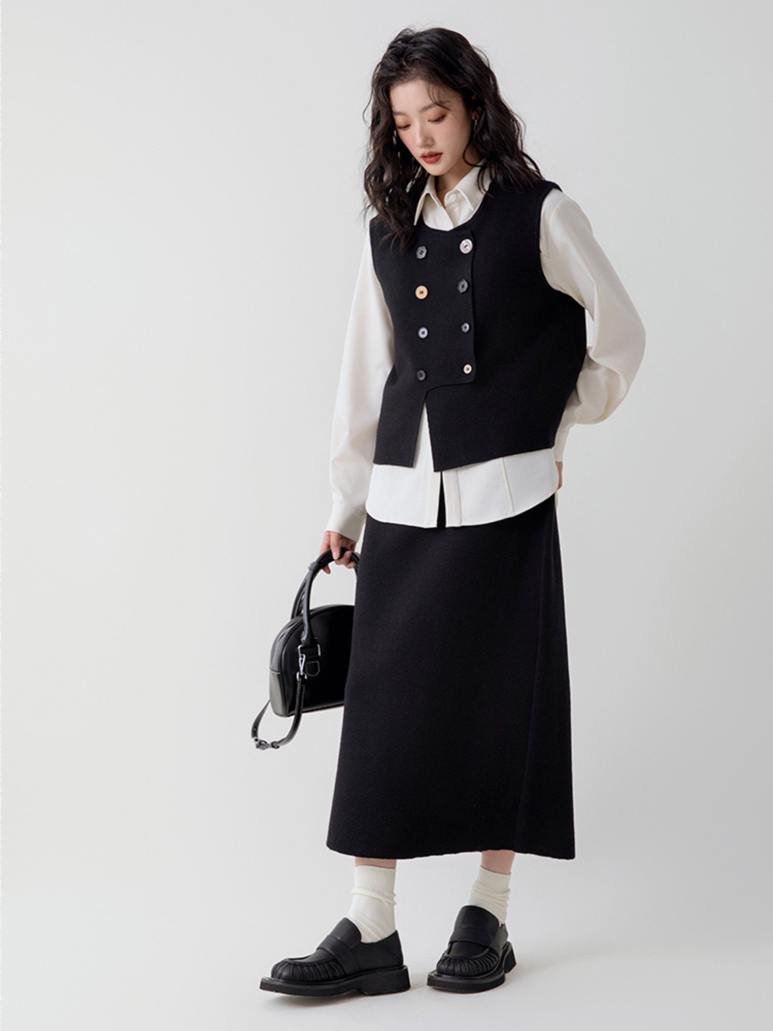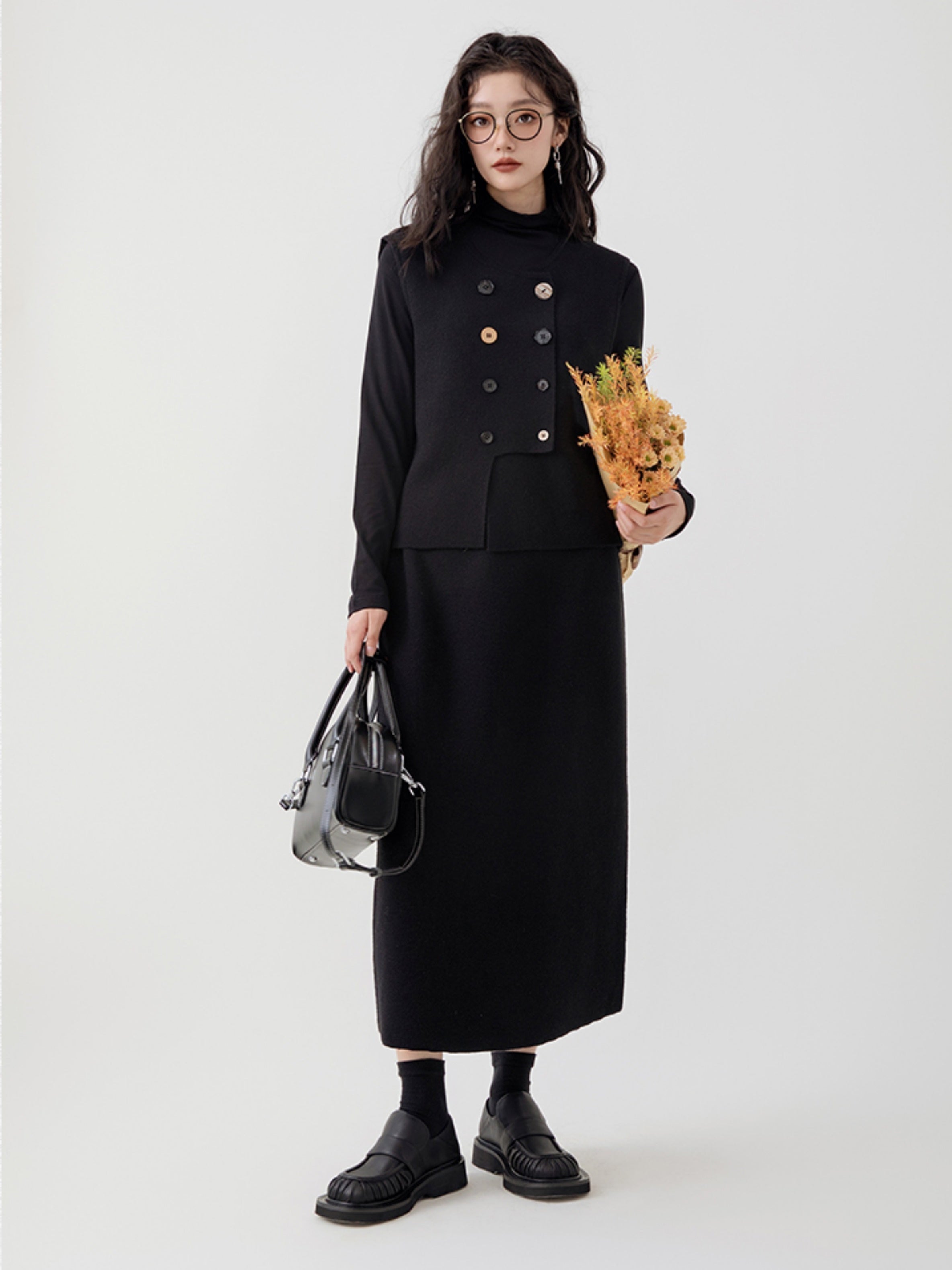 Irregular Design Vest & Skirt & Half-High Neck Shirt