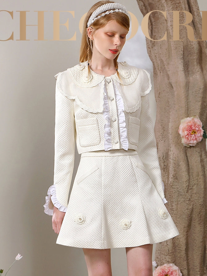 Jacket&Mini-Skirt Unevenness Frill Flower Lace Cute Set-Up