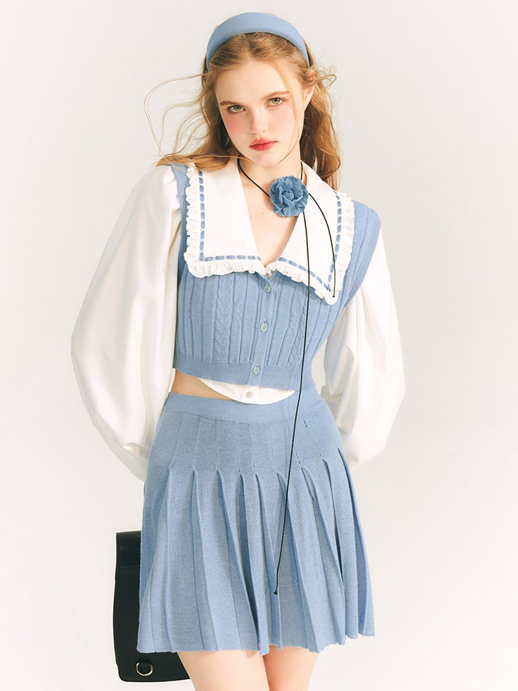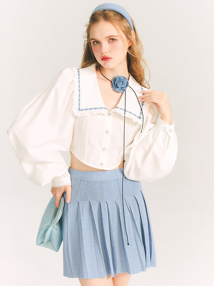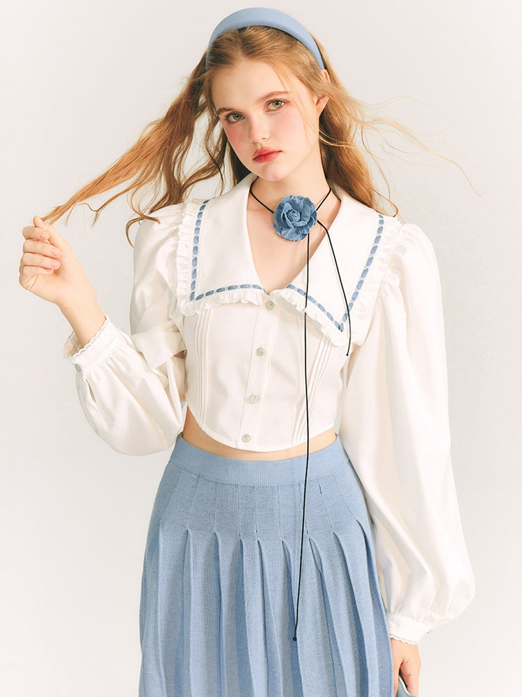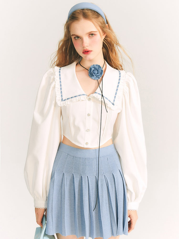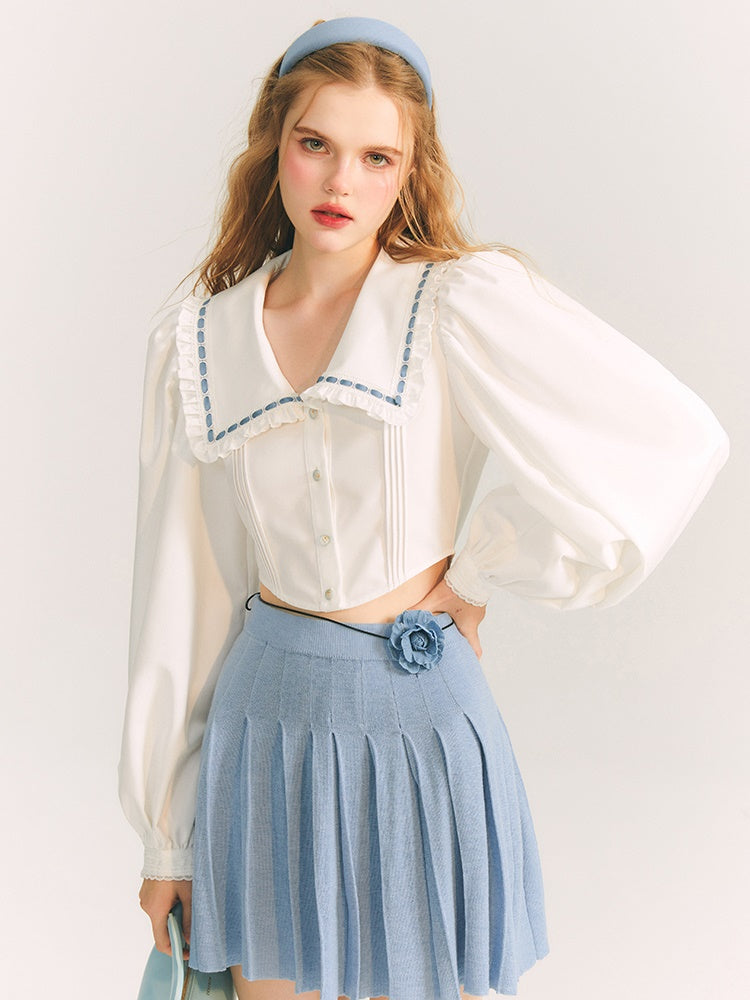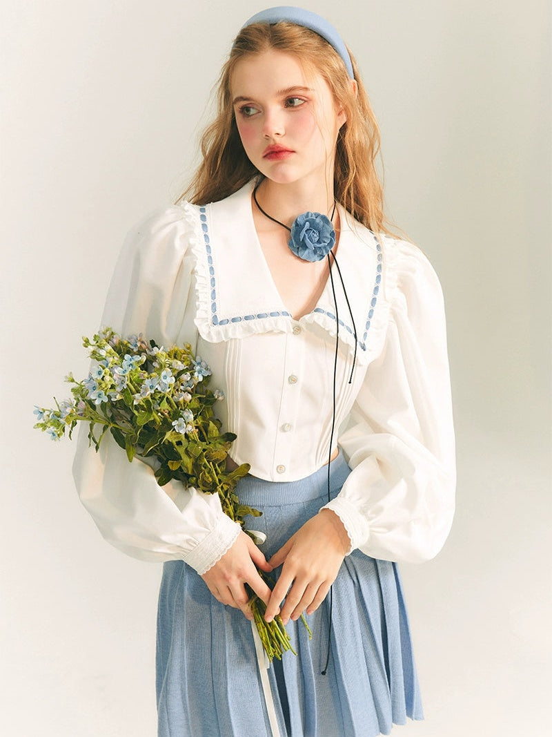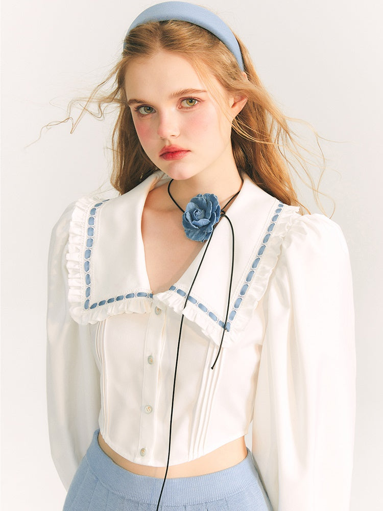 Lace Doll Collar Short Balloon Sleeve Shirt