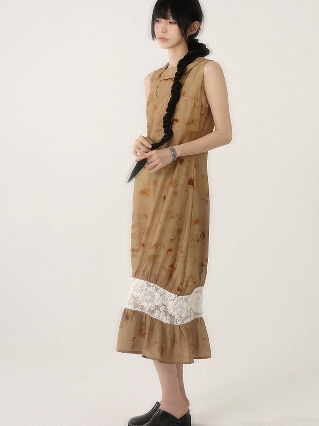 Lace Mermaid Panel-Skirt Retro Flower Asymmetry Long One-Piece
