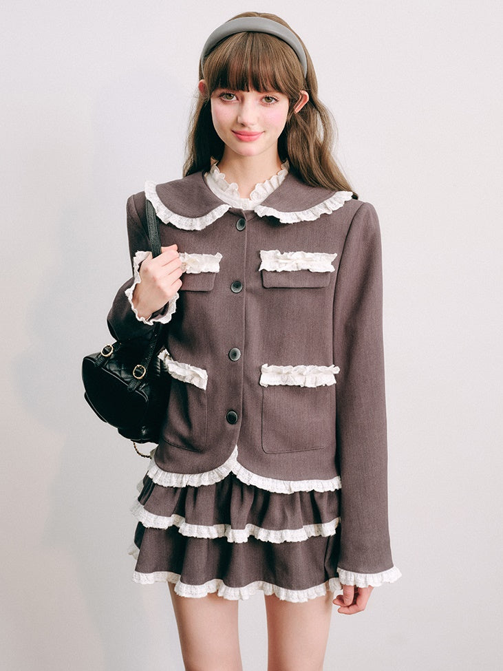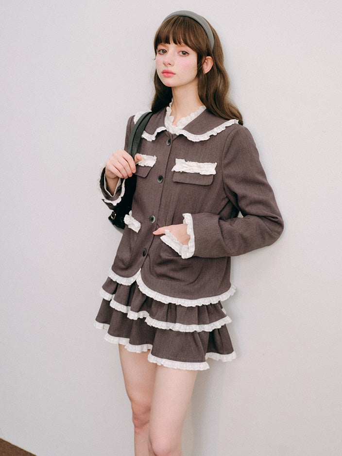 Lace Stitch College Taste Jacket & Puffy Skirt