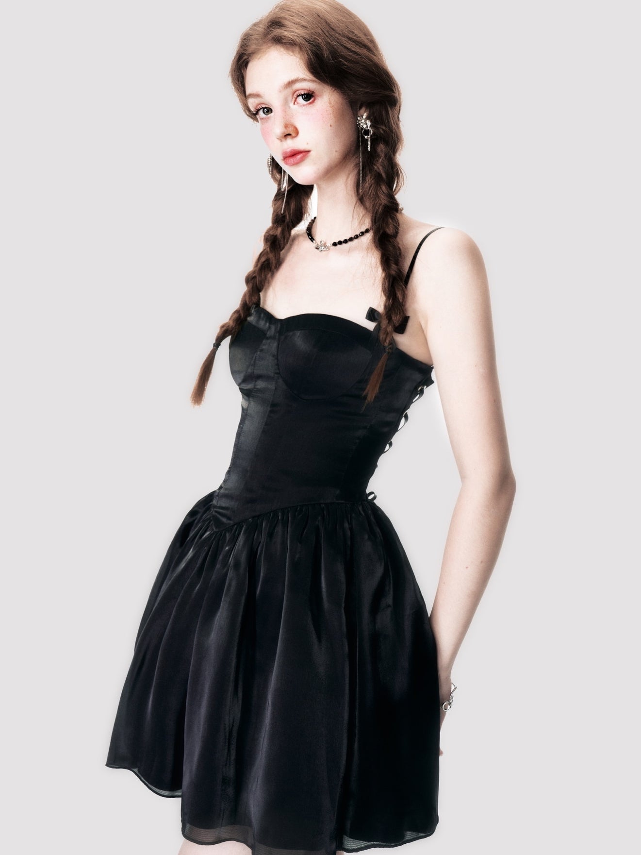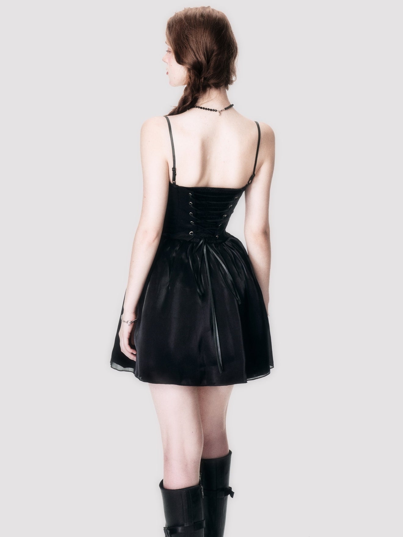 Lace-Up Fluffily Glossy Ribbon One-Piece