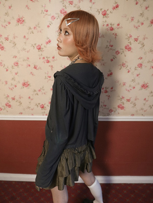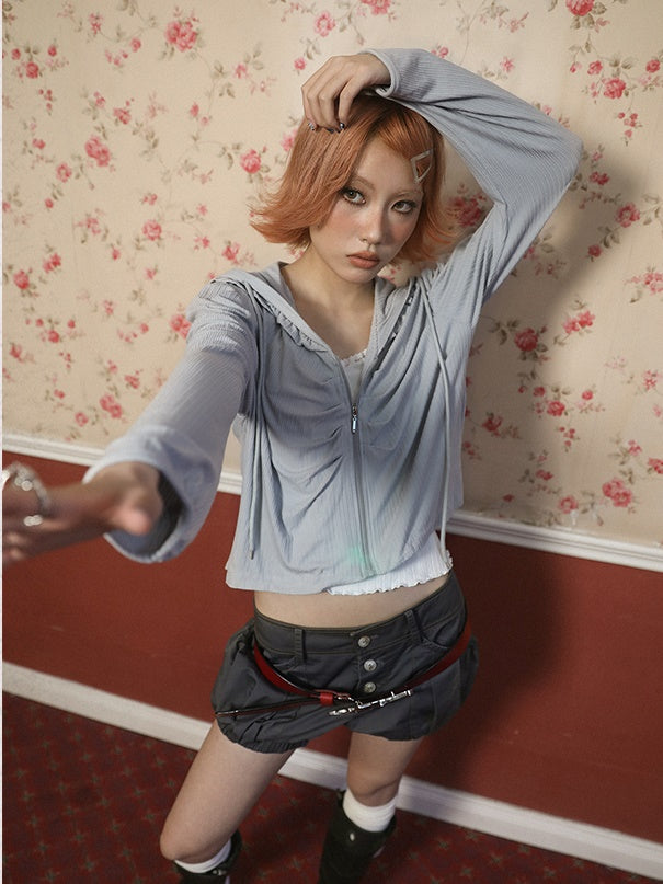 Long Sleeve Hooded Lightweight Zipper Cardigan