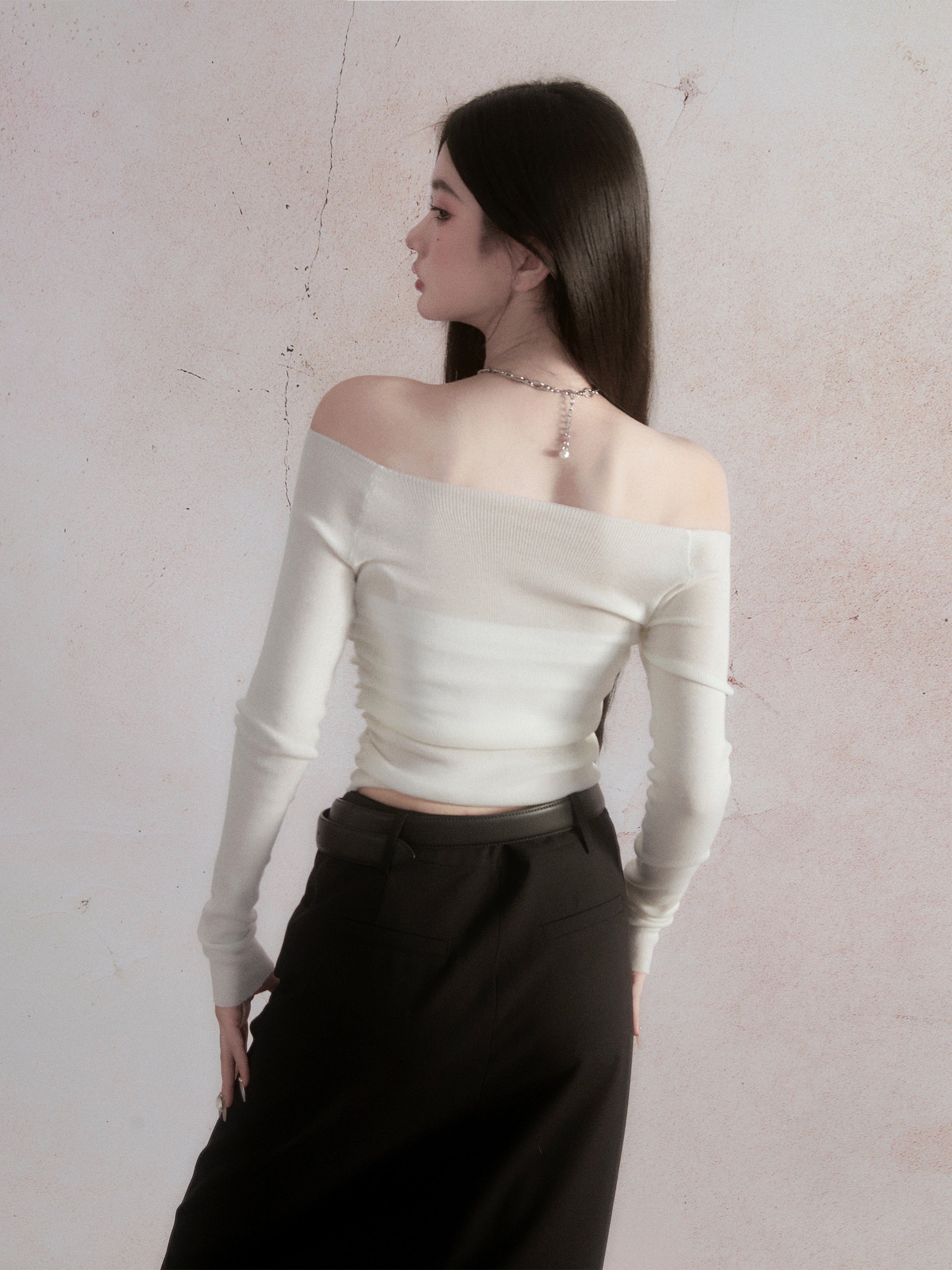 Off-shoulder Knitted Bottoming T-shirt