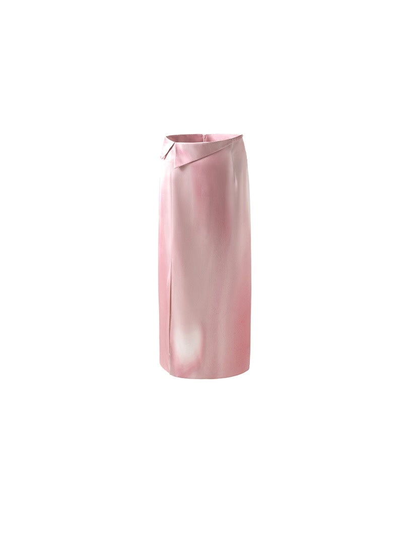 Ombre-print Cuffed Slit Skirt