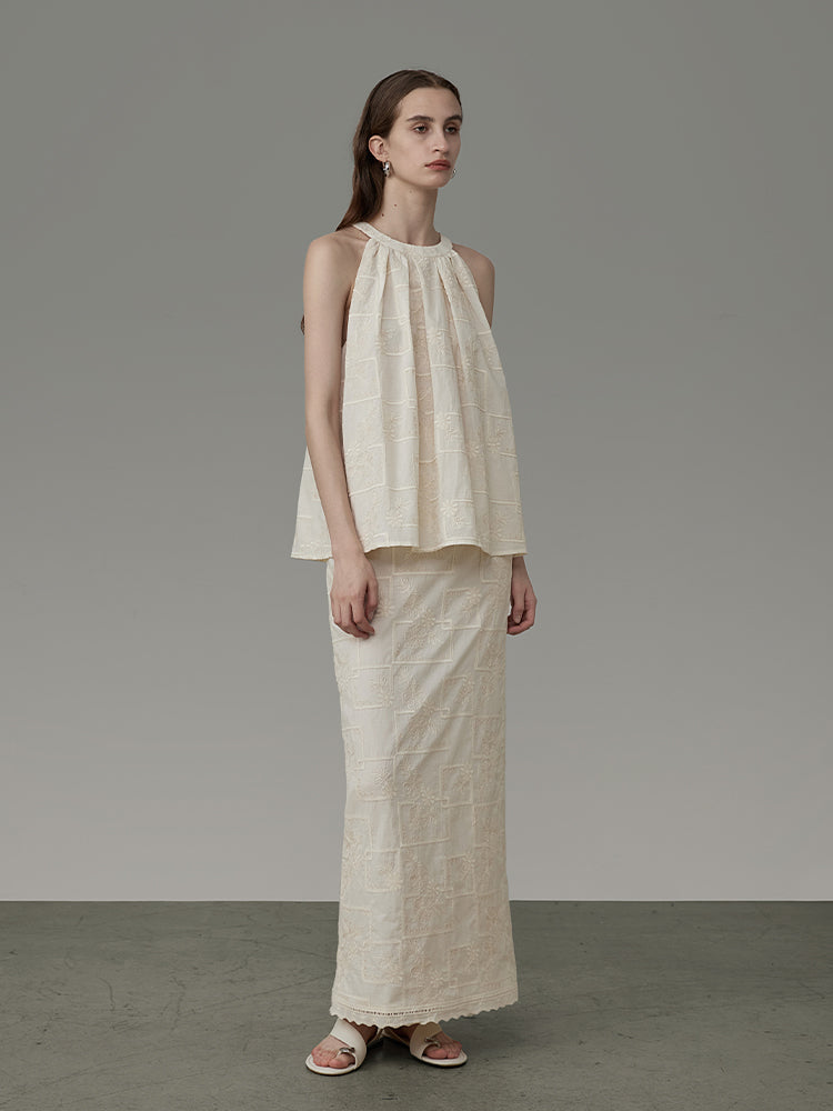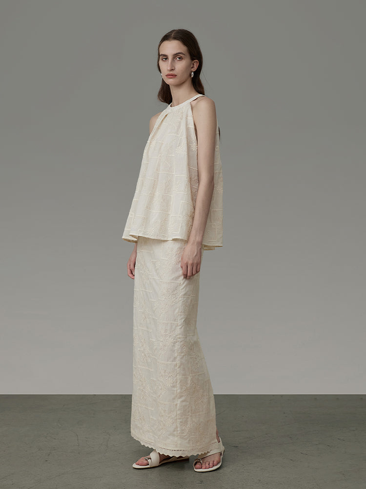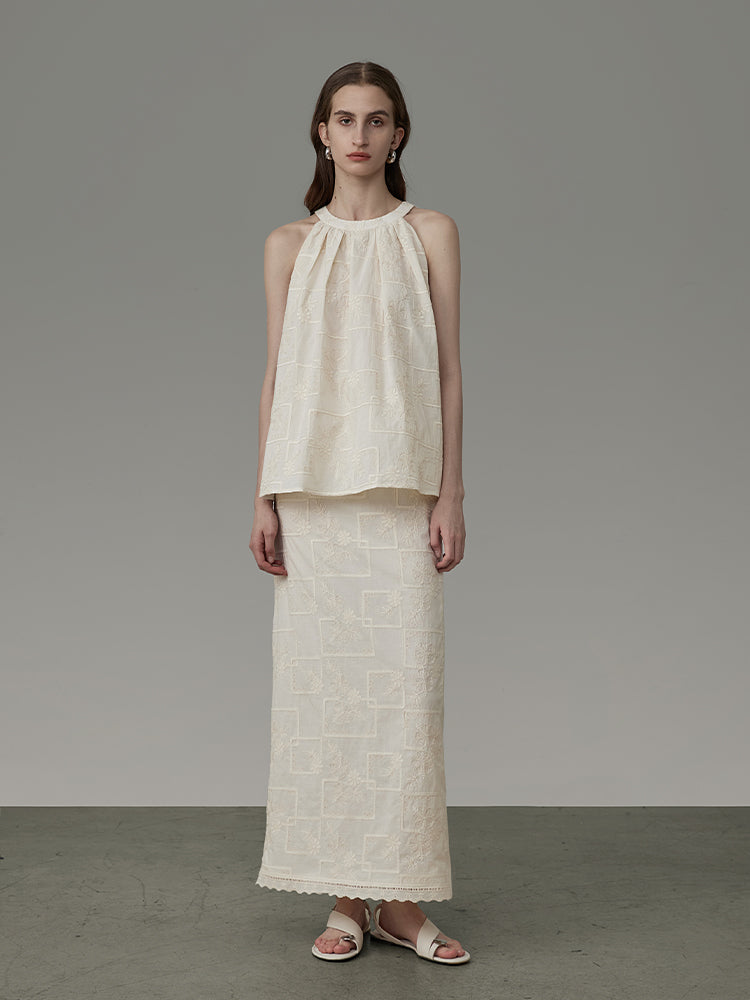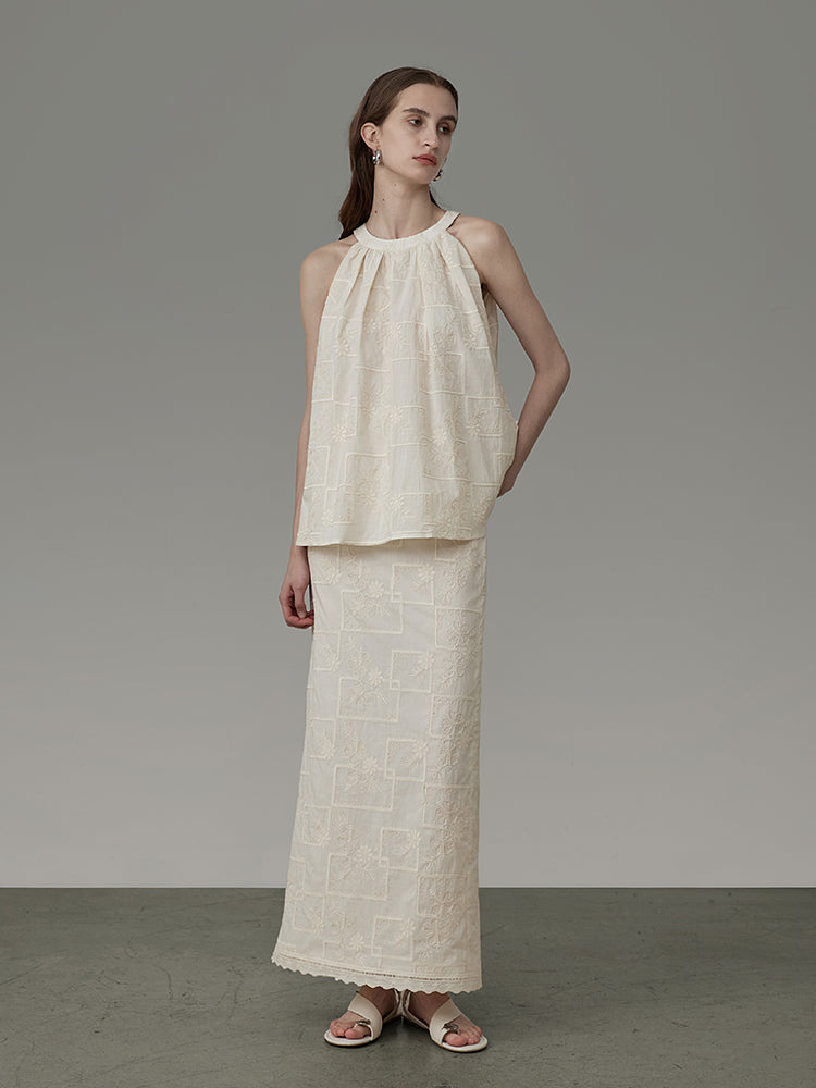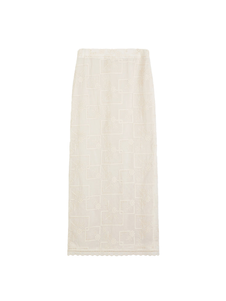 Pencil Lace Flower Embroidery Classy Long-Skirt