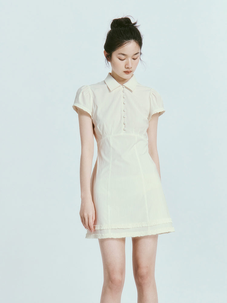 Polo-Neck Stripe Casual Frill Mini-One-Piece