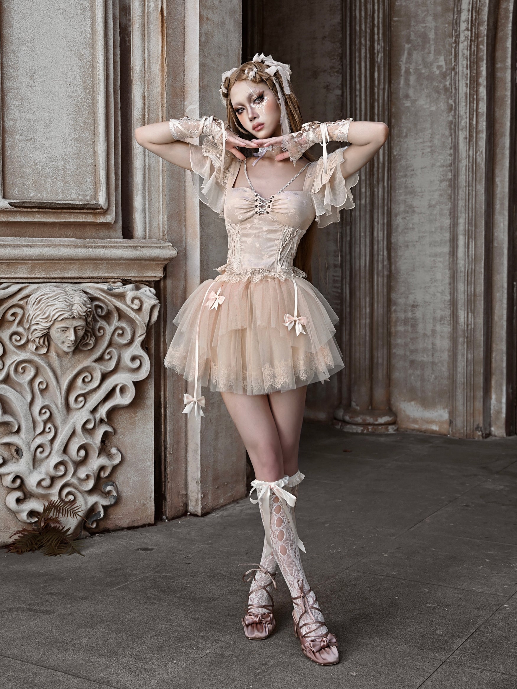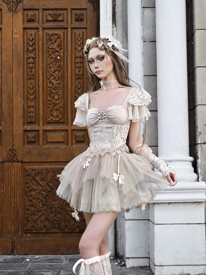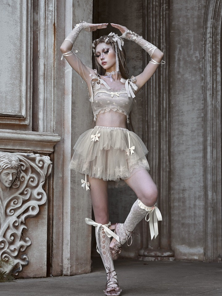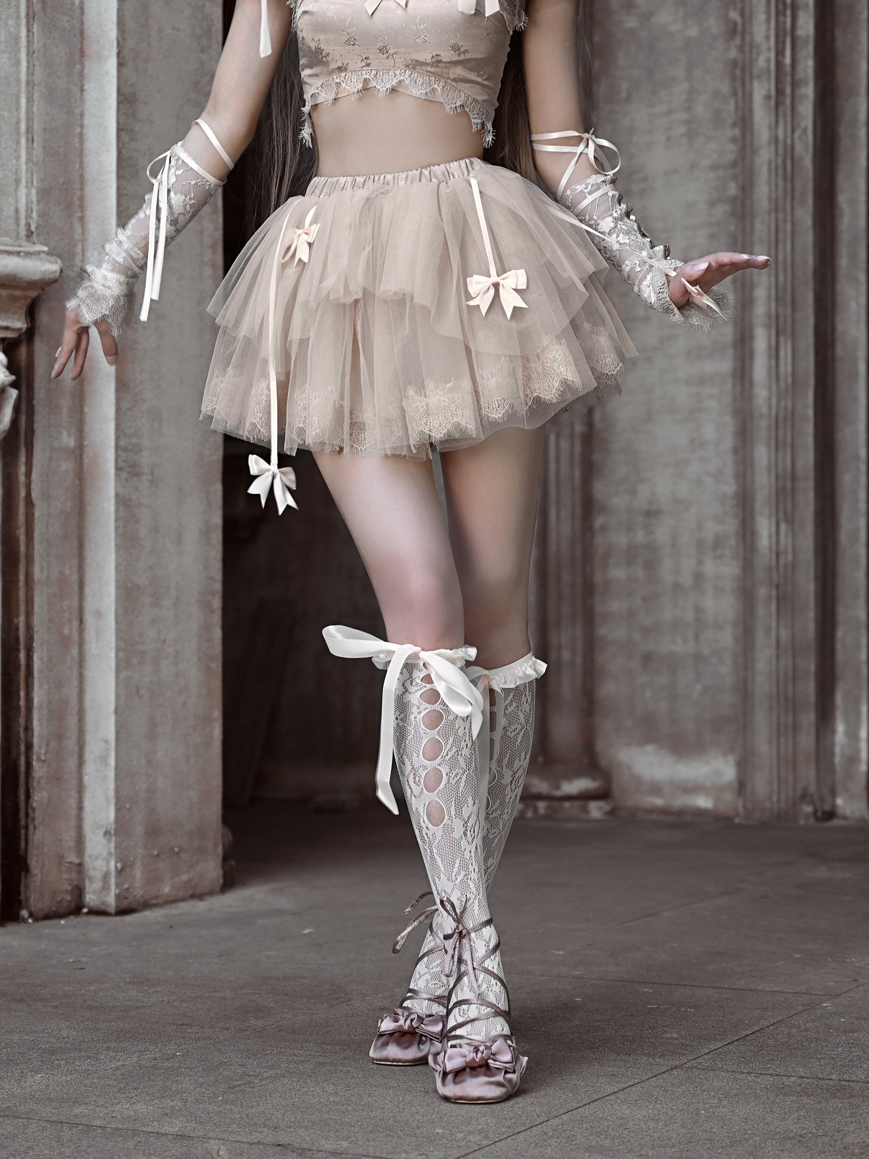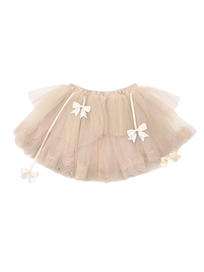 Ribbon Tulle Lace Tiered Fluffily Mini-Skirt