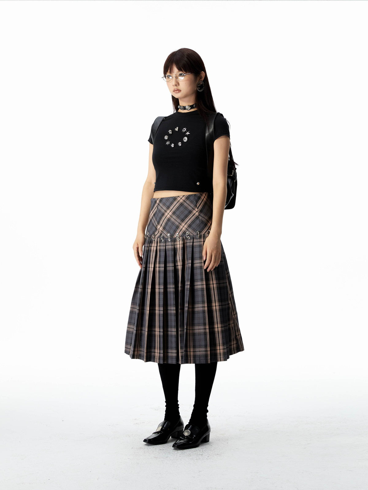 Ring Nichi Checked Pleats Girly Flare Skirt