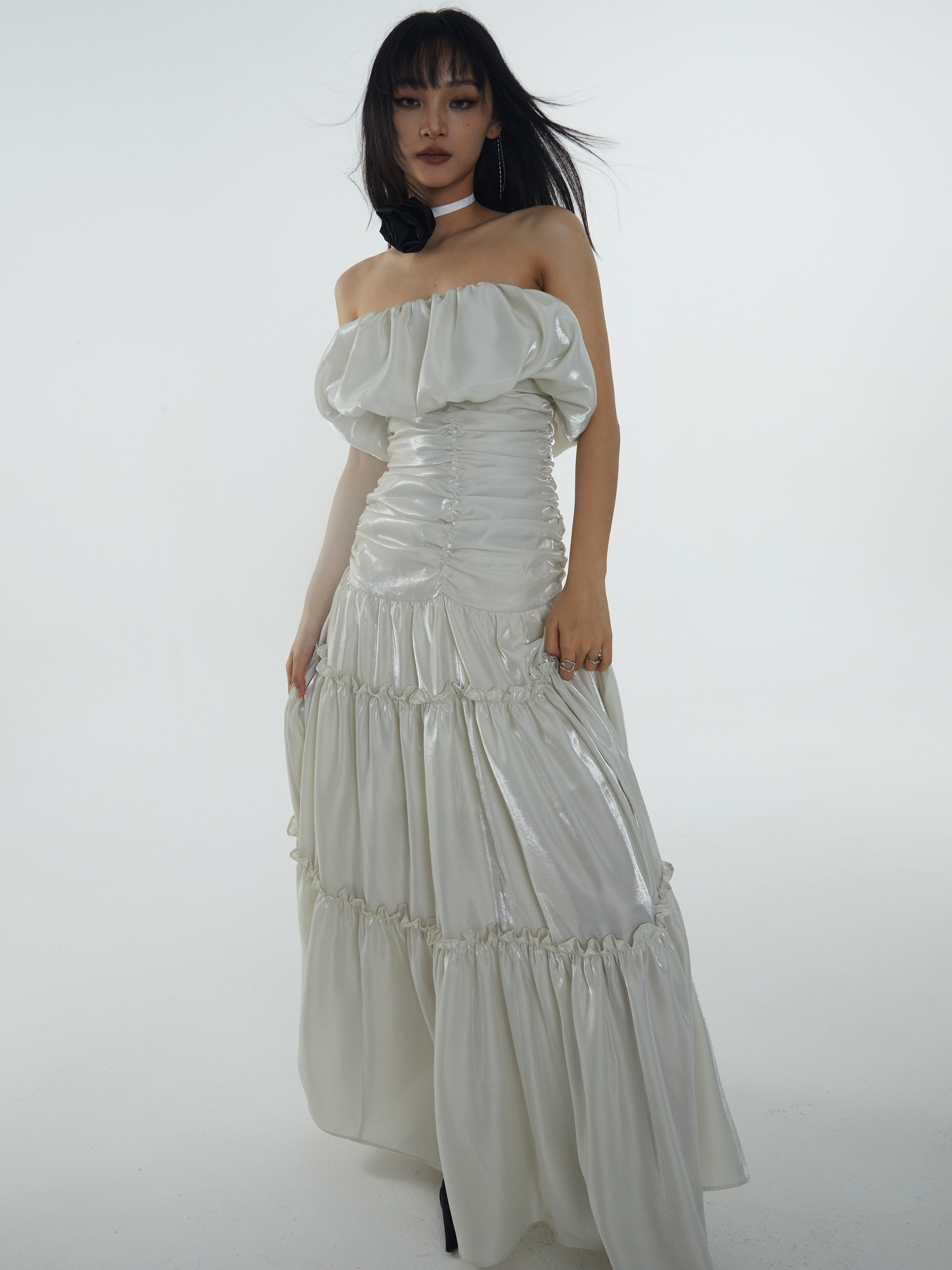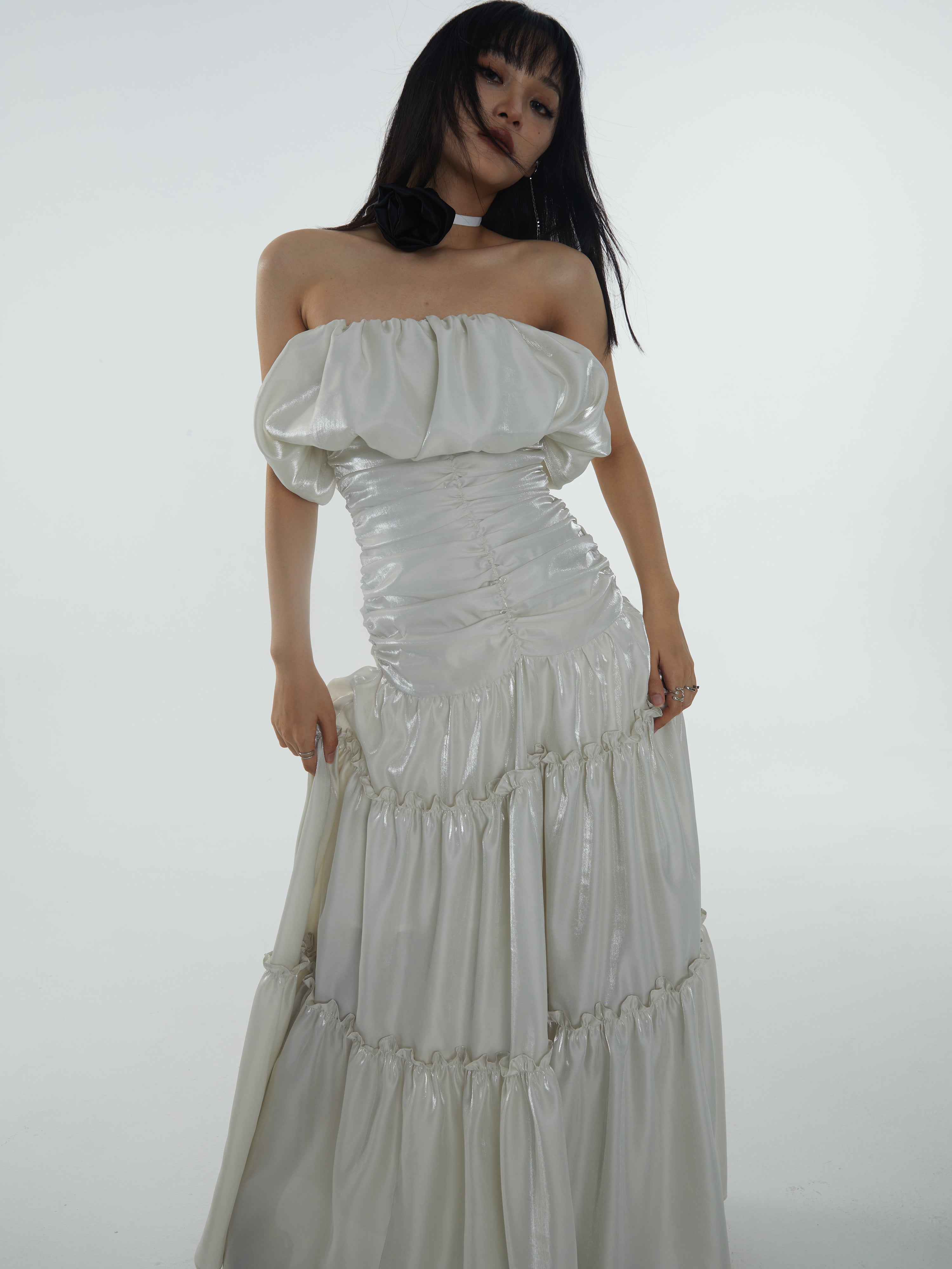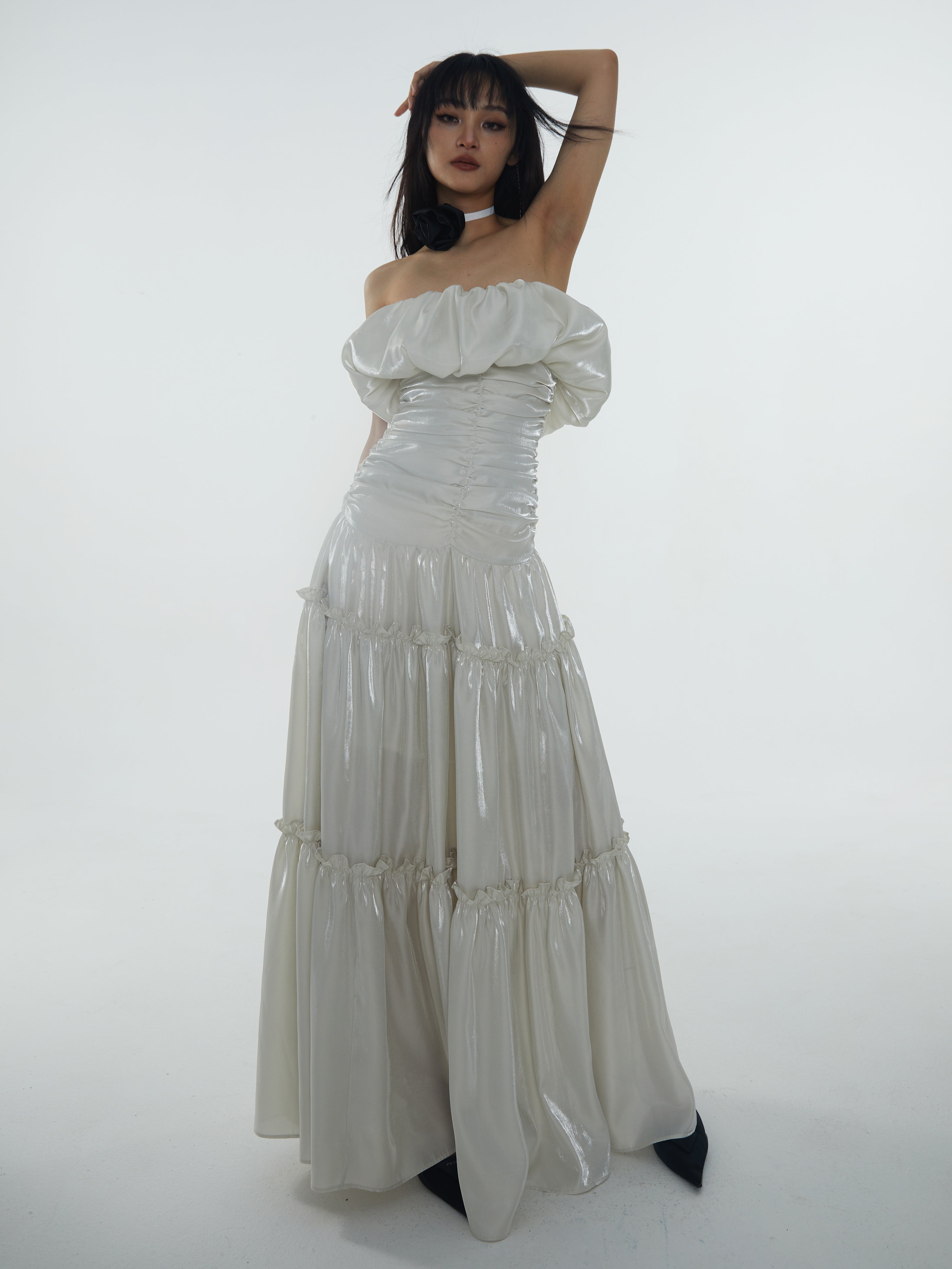 Ruffles Big Swing Super Long Fairy Off-Shoulder Dress