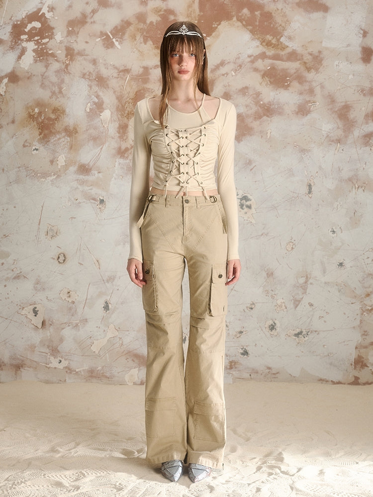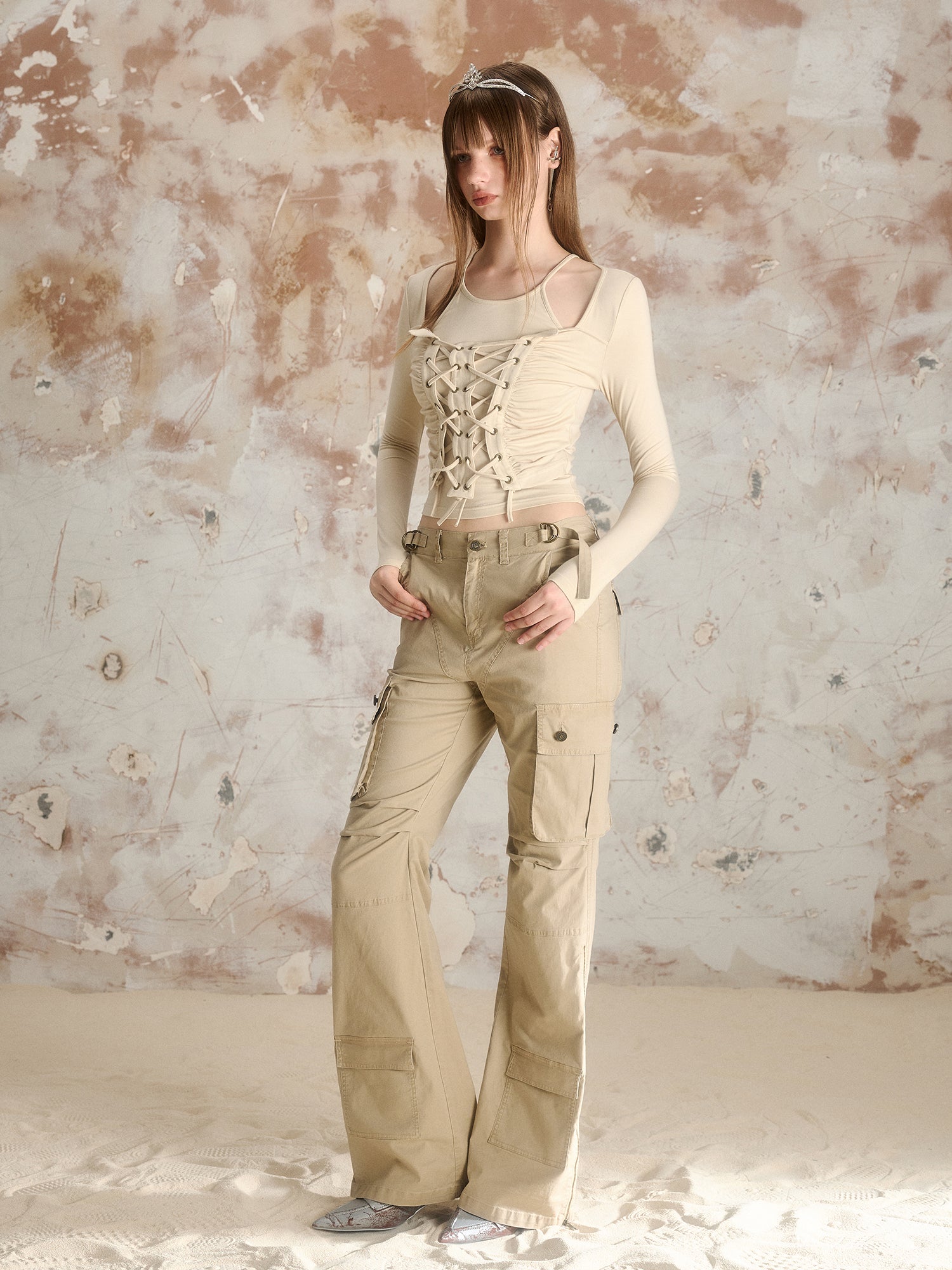 Side-Pocket Casual Work-Pants Smil Flare-Pants