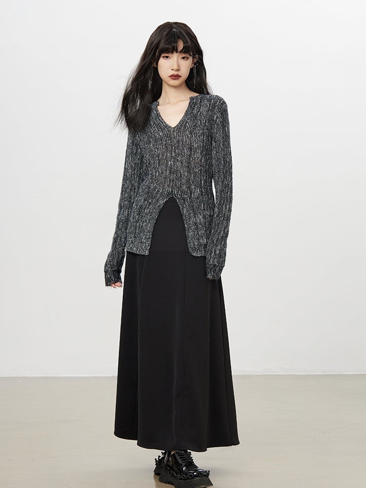 Slit V-Neck Retro Long-Knit