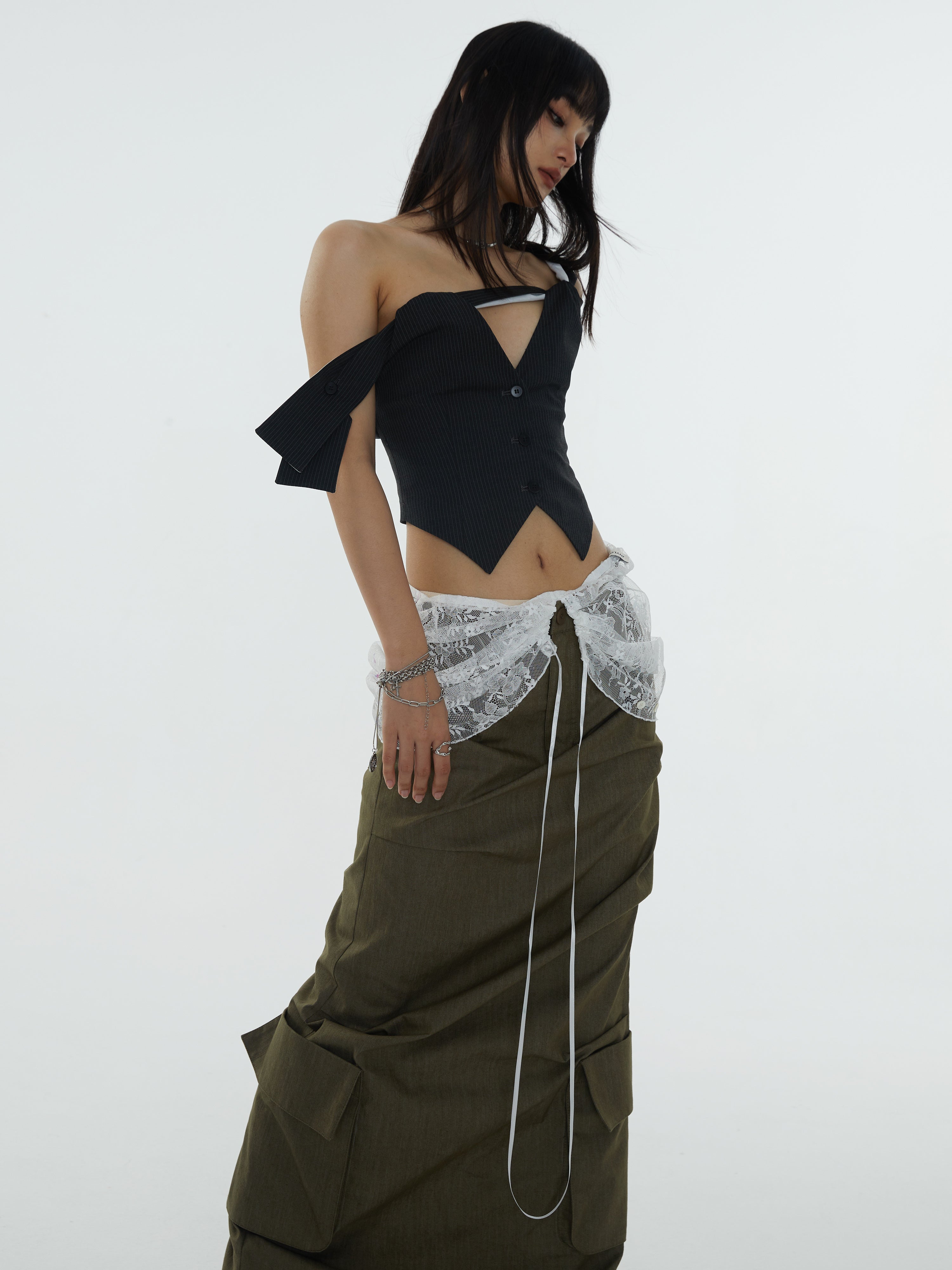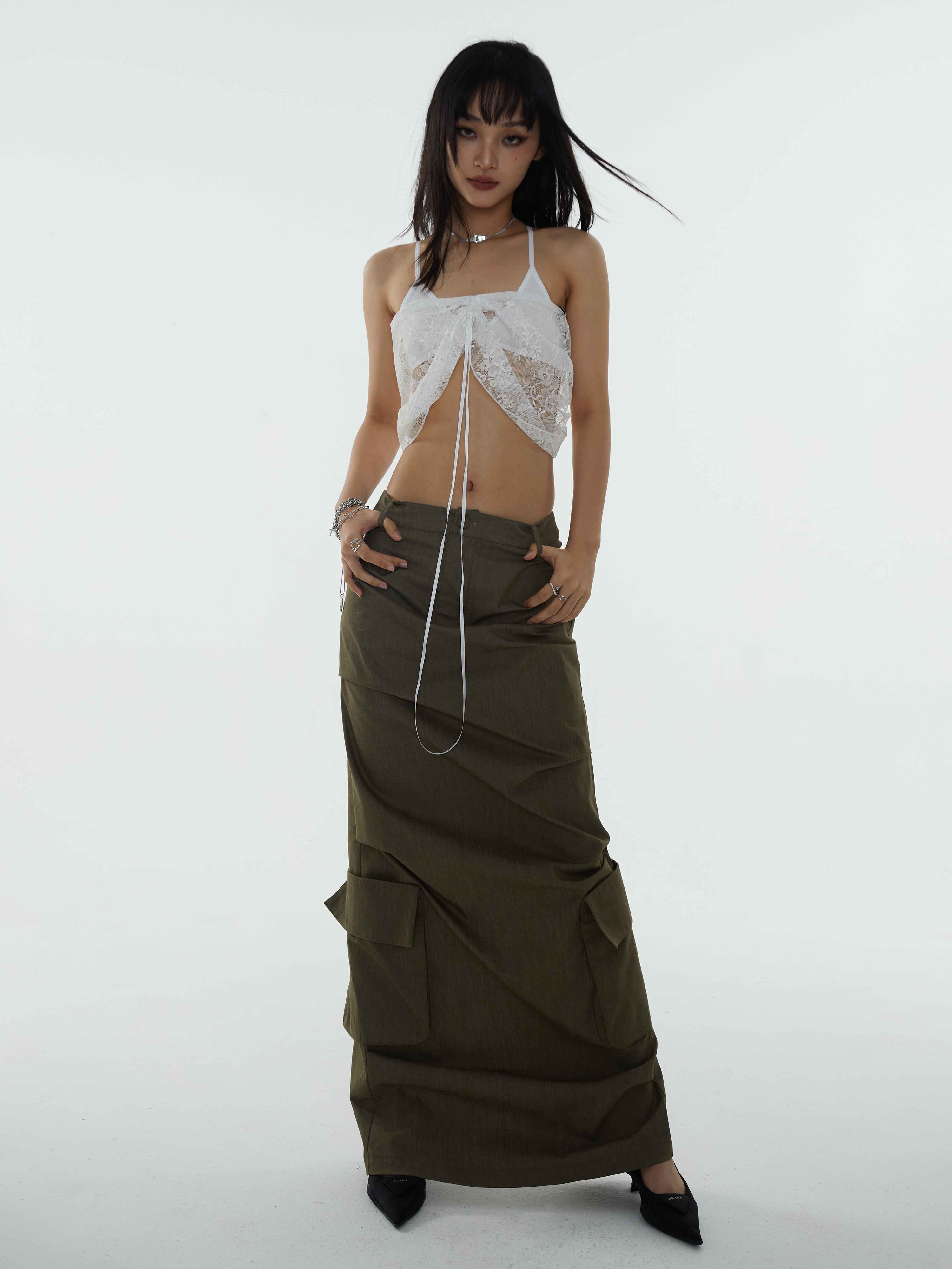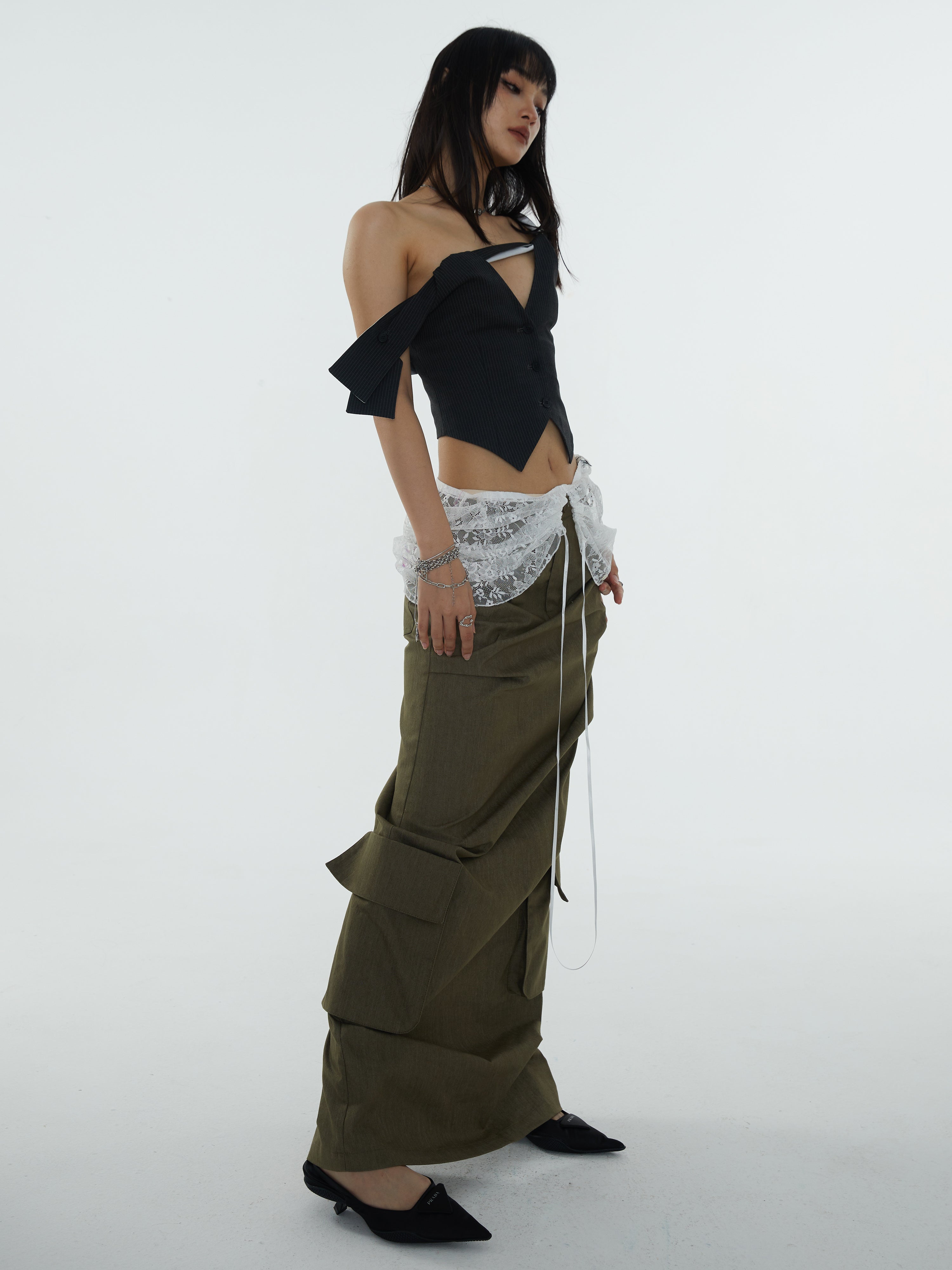 Straps Lace Decoration Tooling Style Pocket Skirt