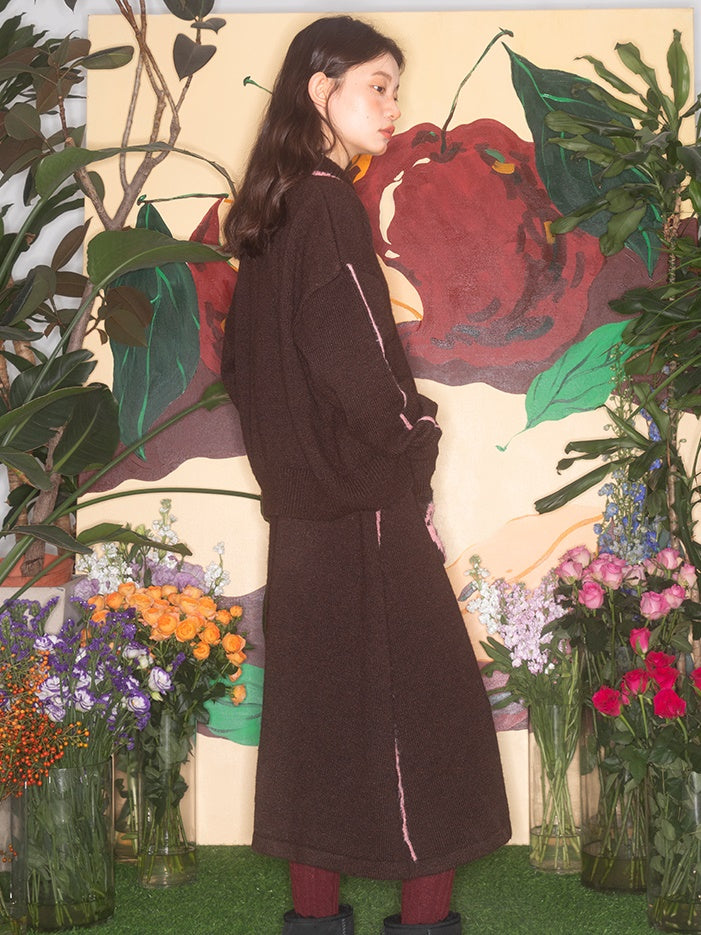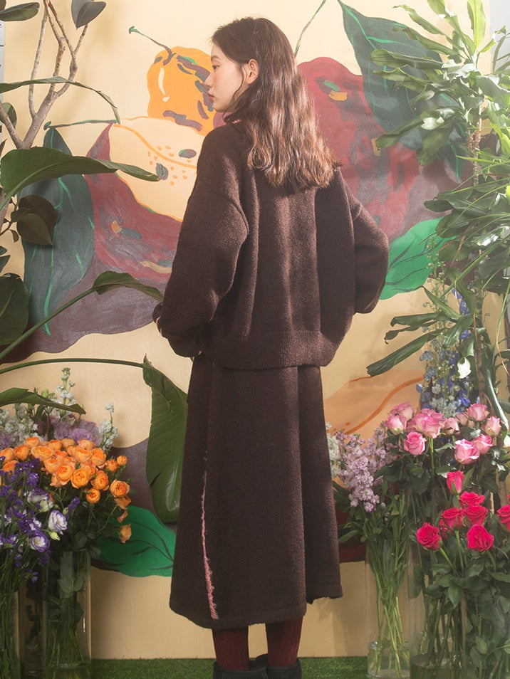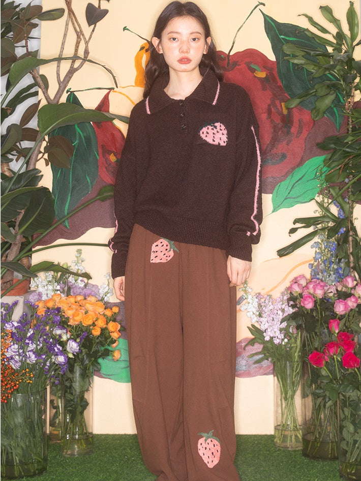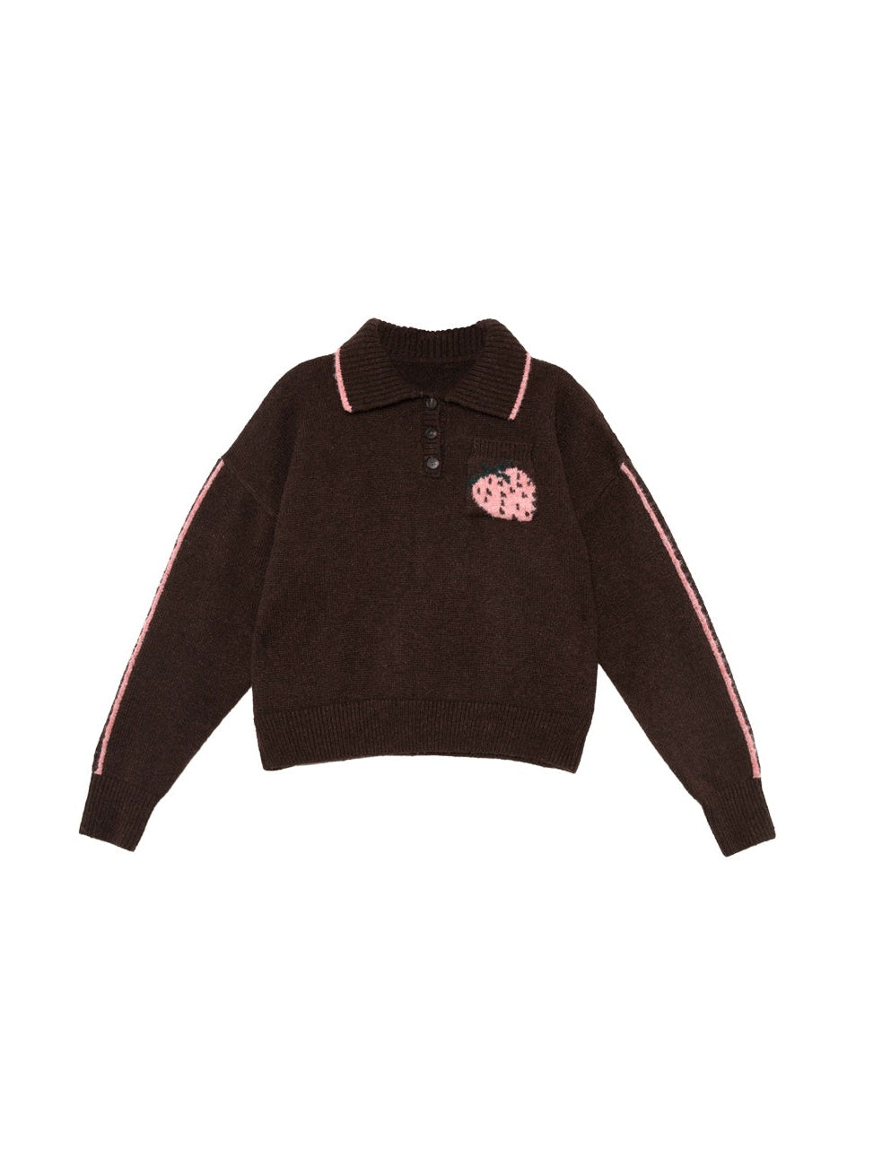 Strawberry Jacquard Half-open Collar Sweater & Mid-length Knitted Skirt