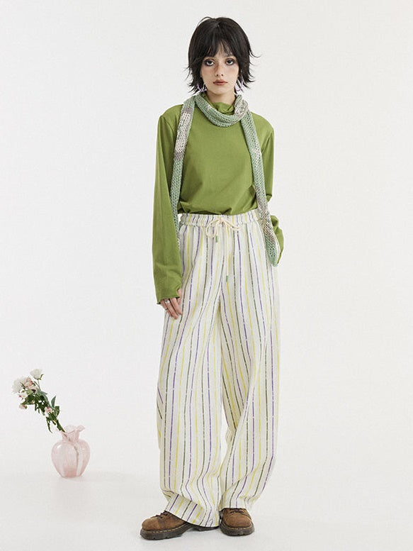 Striped Fat-leg Pants