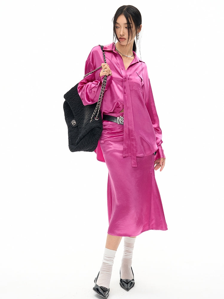 Vivid Satin Nichi Set-Up Shirt & Long-Skirt