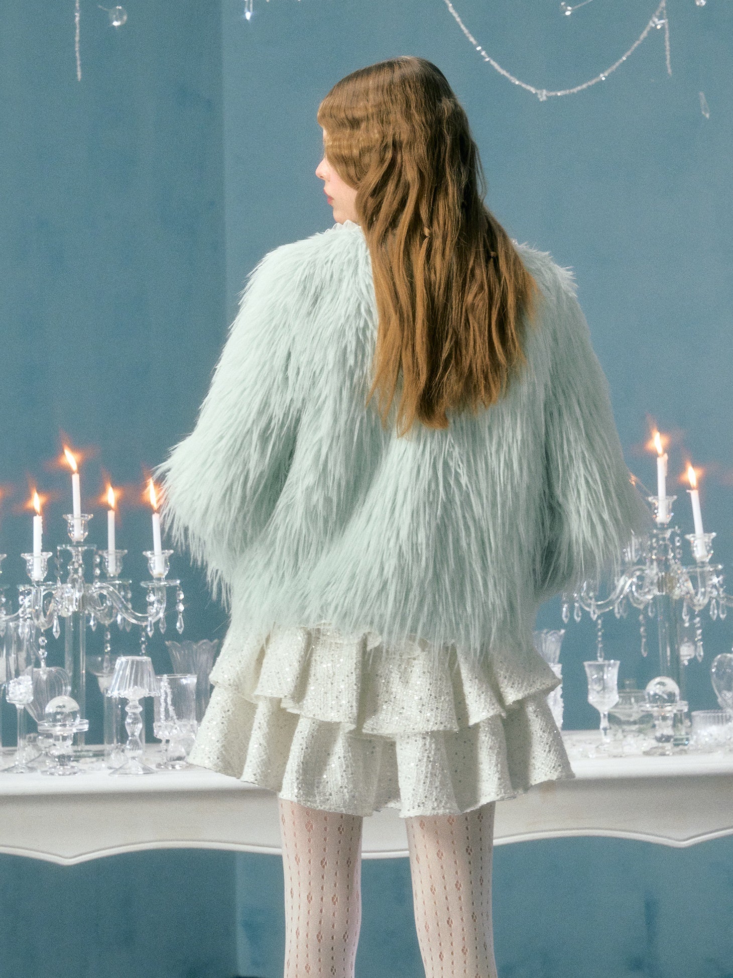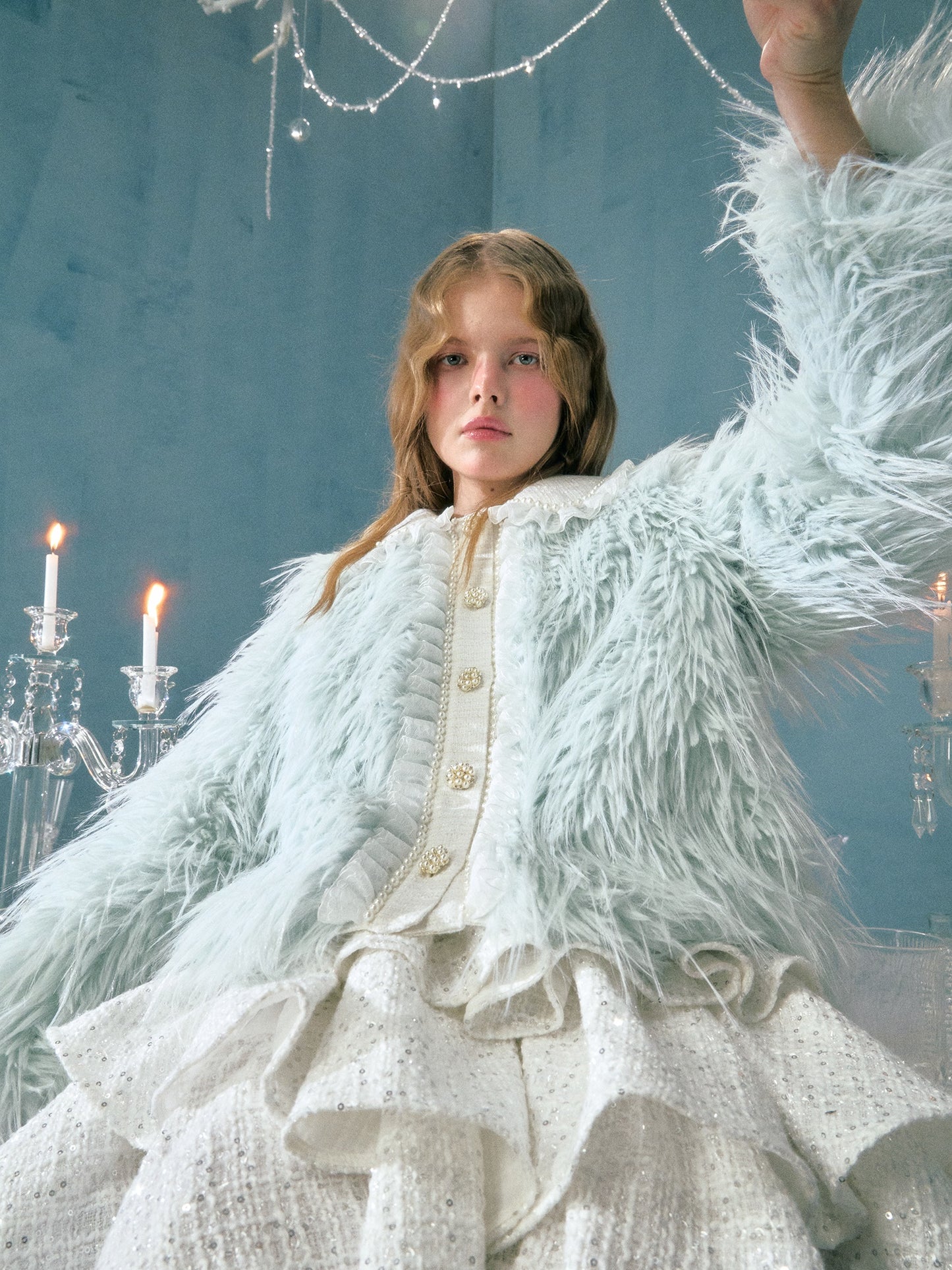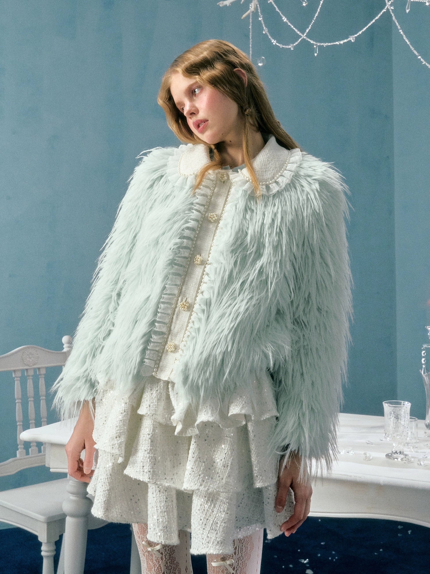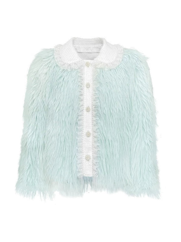 Pearl Lace Decoration Short Imitation Fur Coat